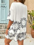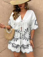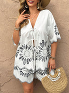 Breezaya 2pcs Plus Size Women V-Neck Short Sleeve Apricot Print Loose Drawstring Casual Top And Print