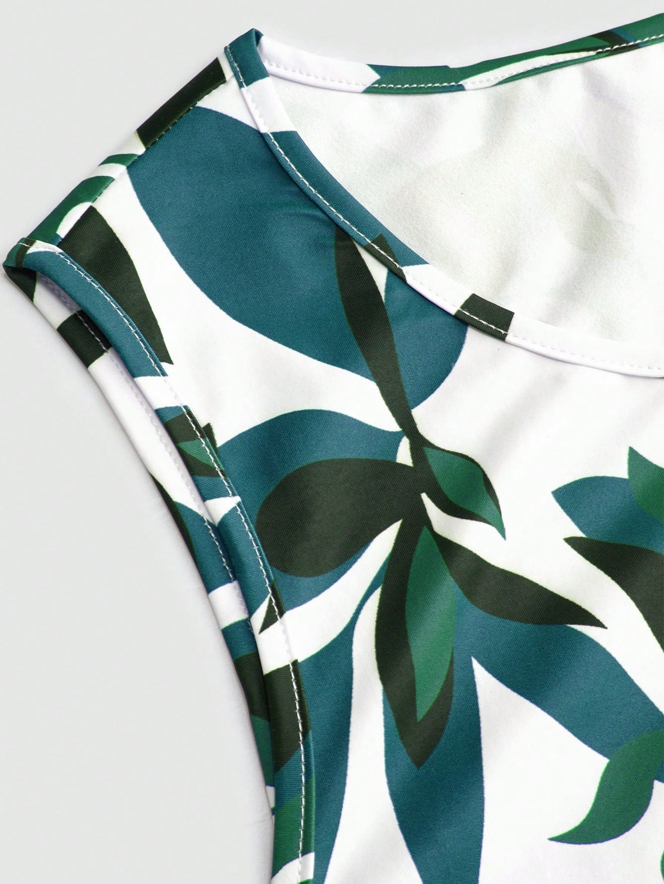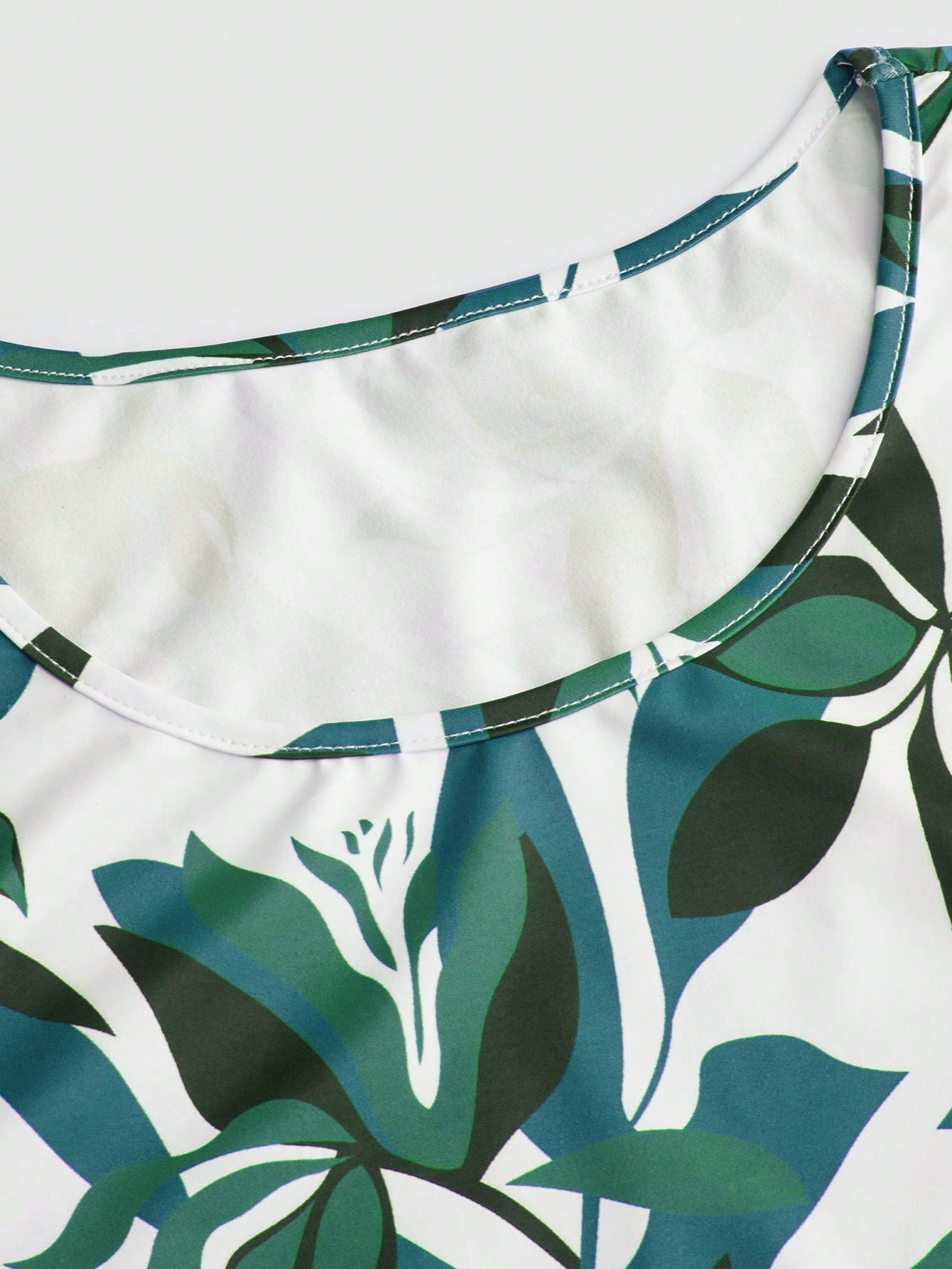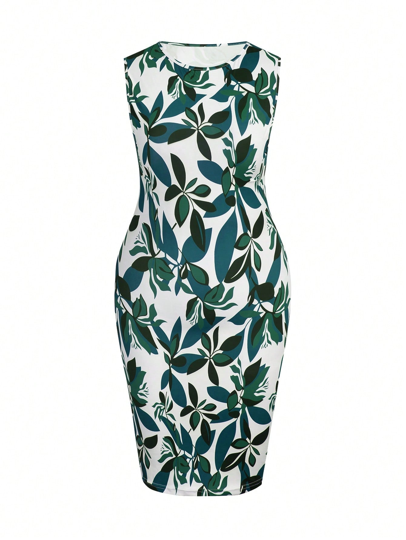 Clasi Plus Size Women 2pcs Set: Solid Long Sleeve Open Front Jacket & Floral Print Round Neck Sleeveless