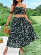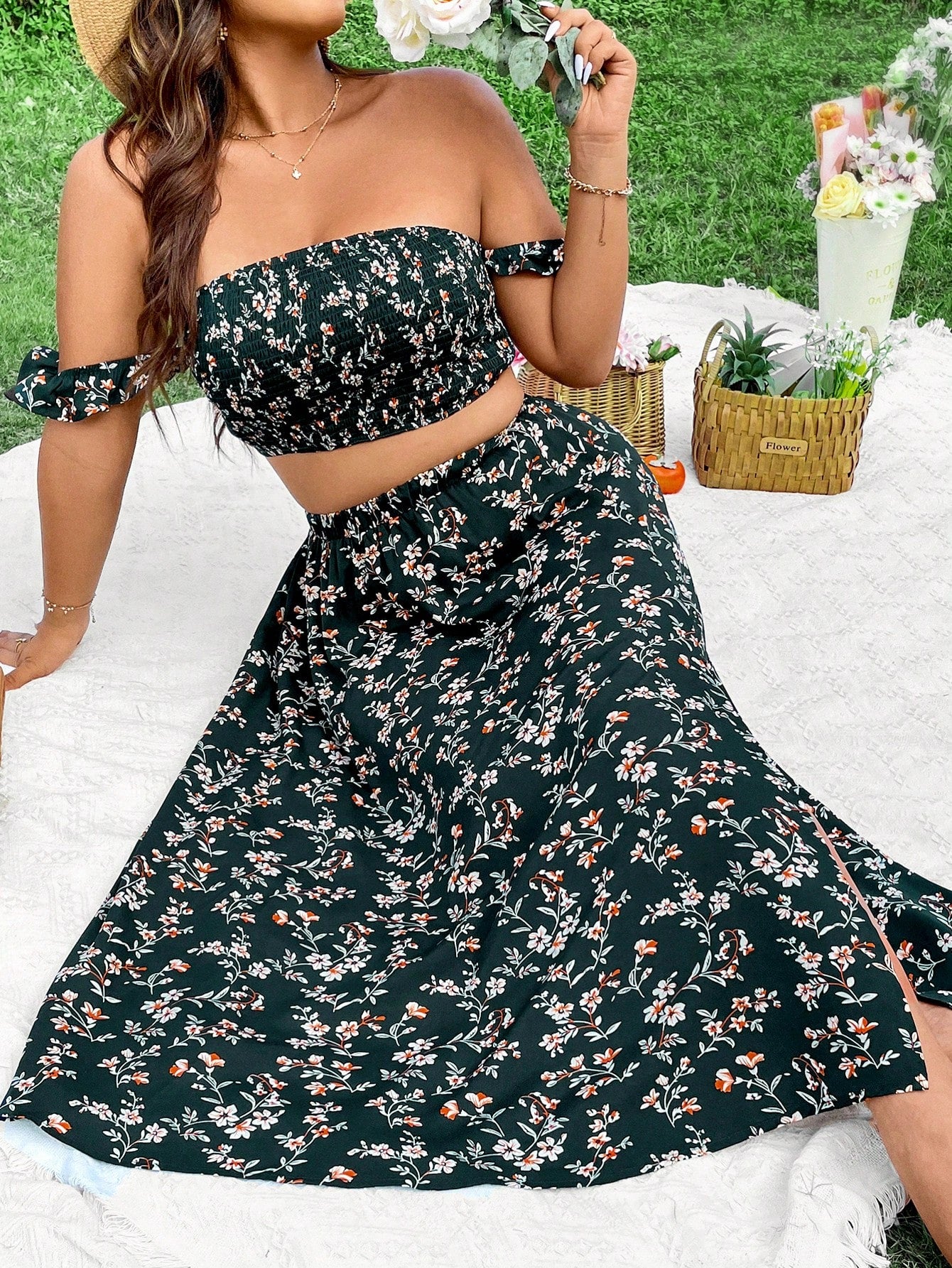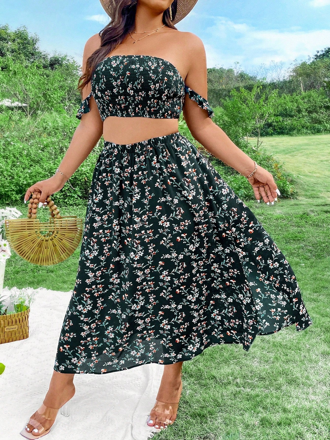 Flirla Plus Size Two Piece Set With Ditsy Floral Print