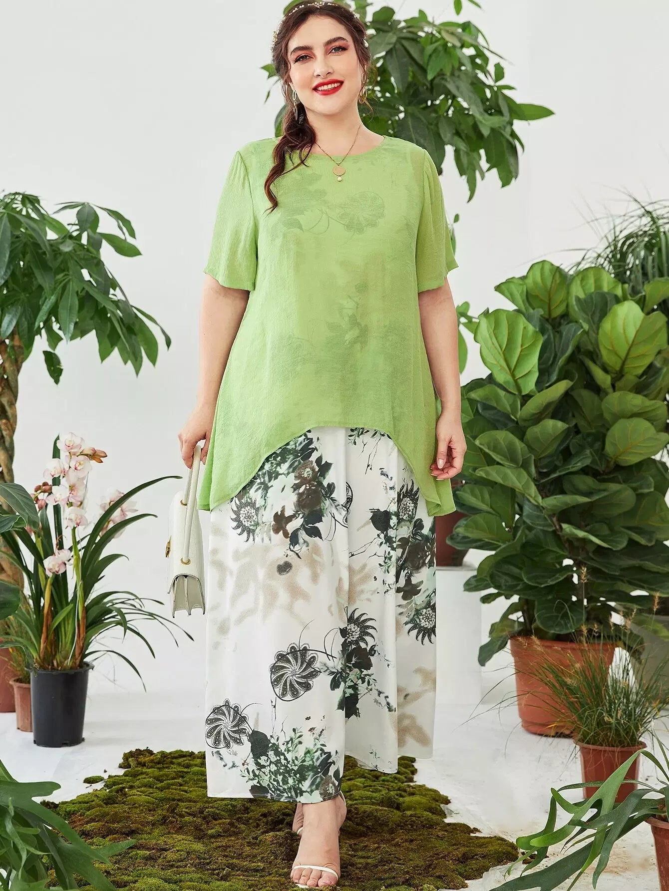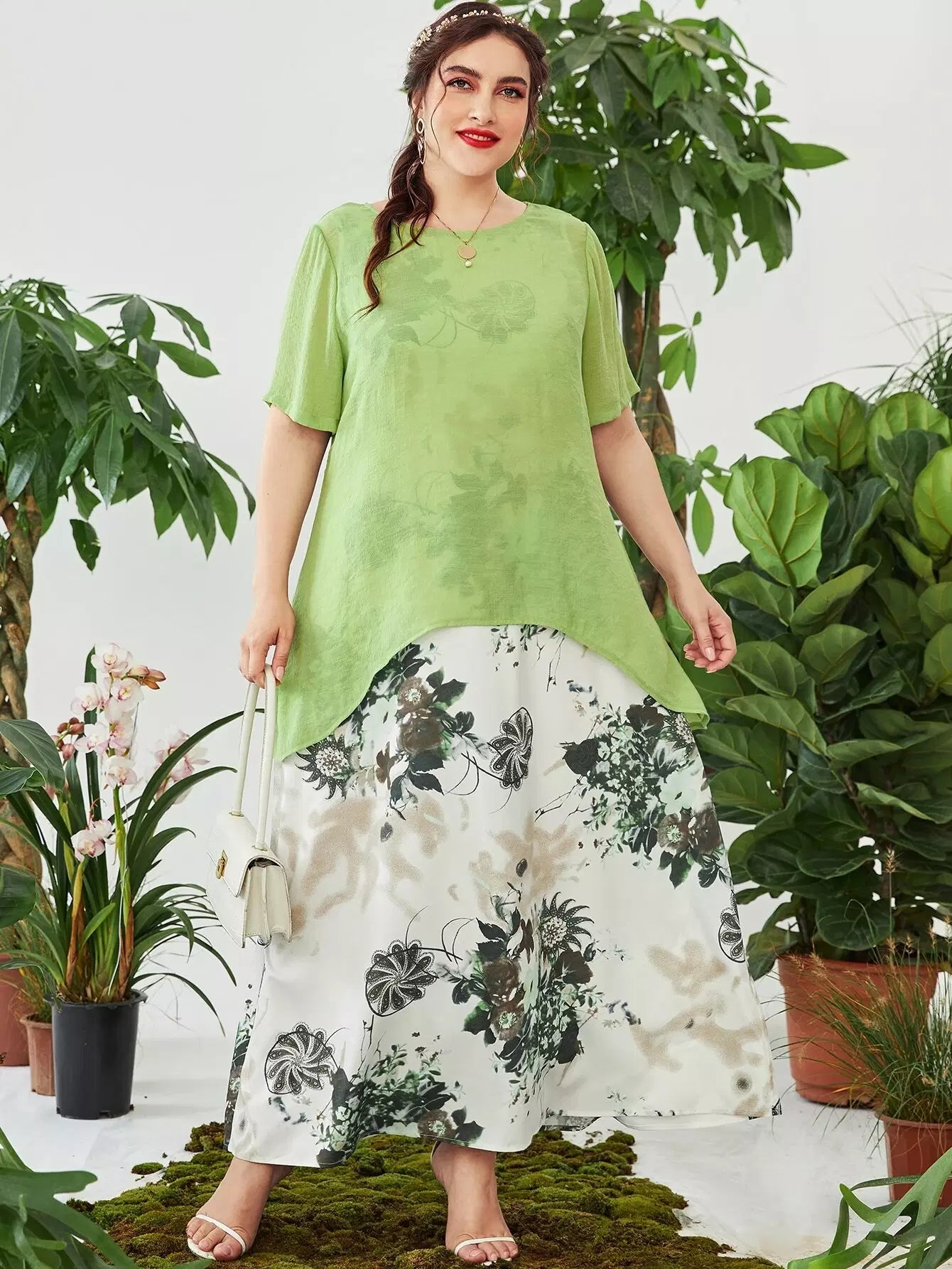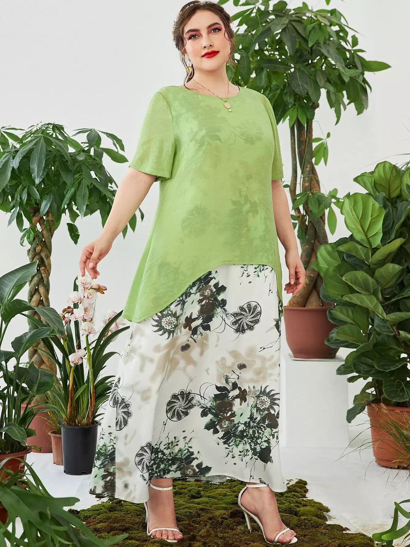 Plus Asymmetrical Hem Top & Floral & Paisley Print Dress