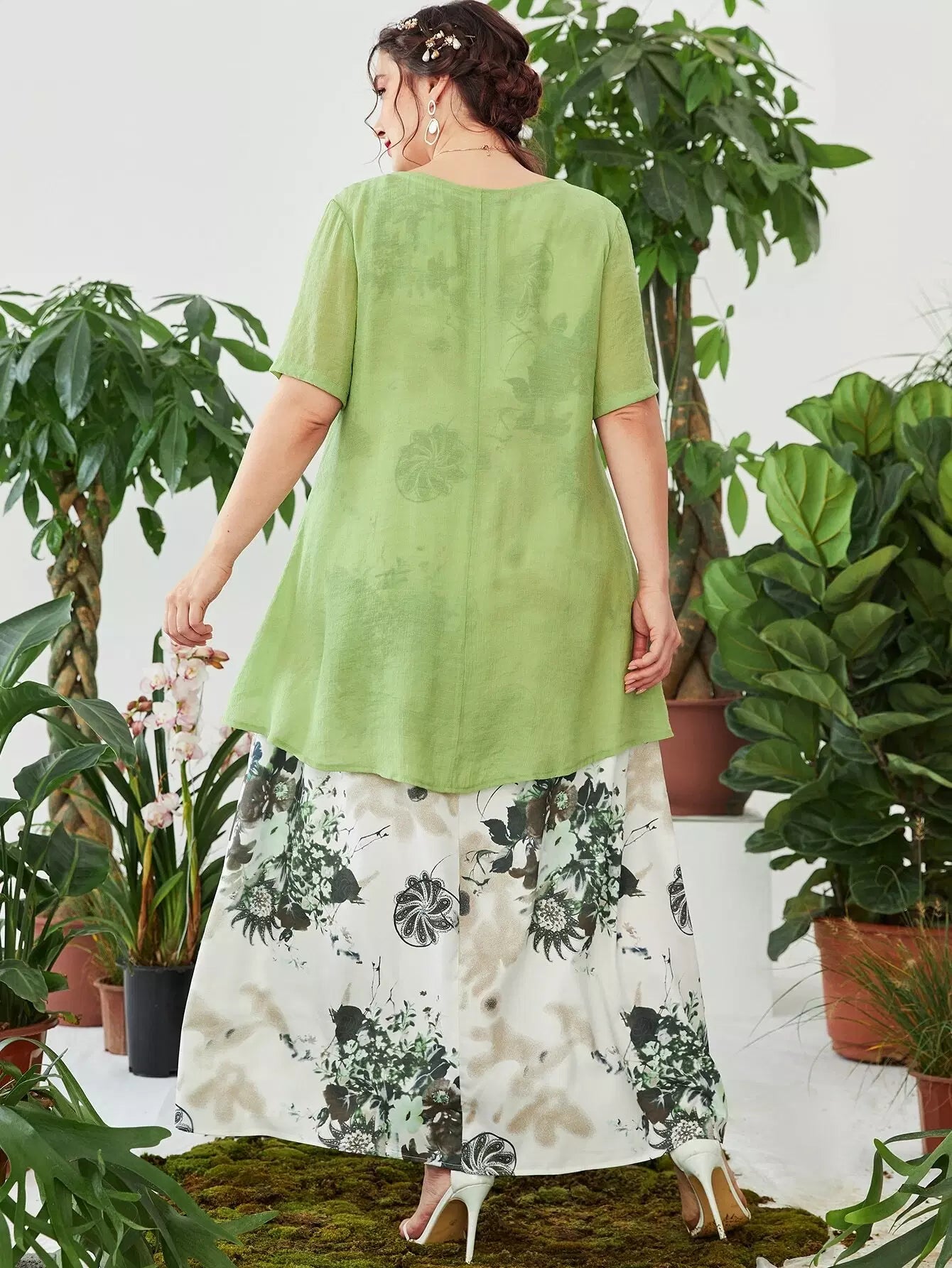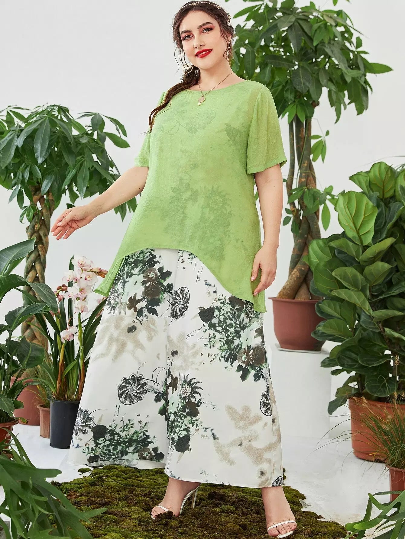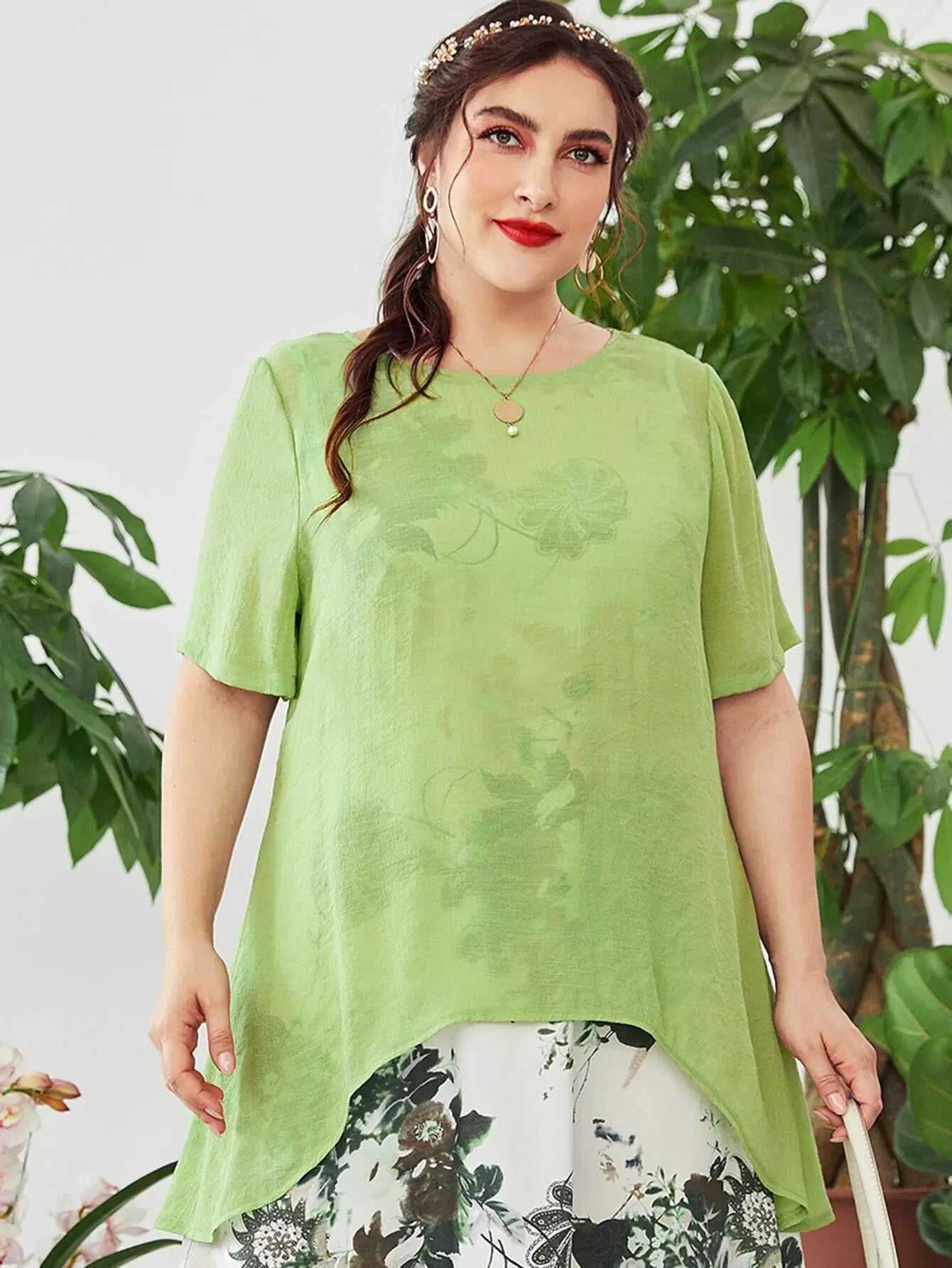Plus Asymmetrical Hem Top & Floral & Paisley Print Dress