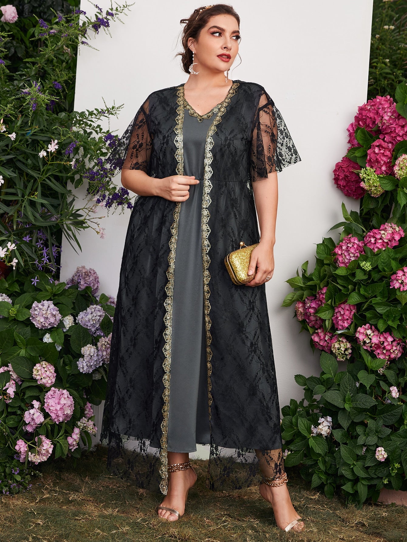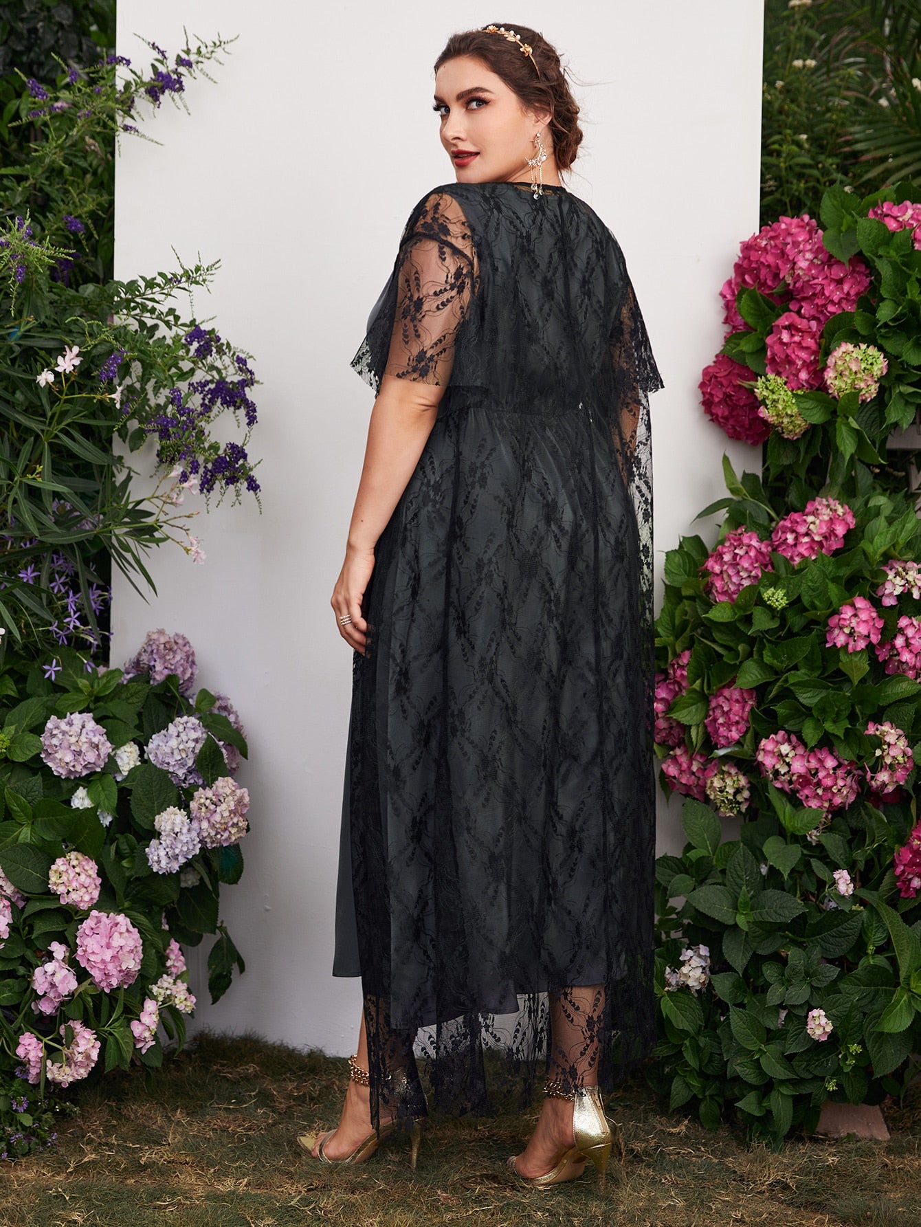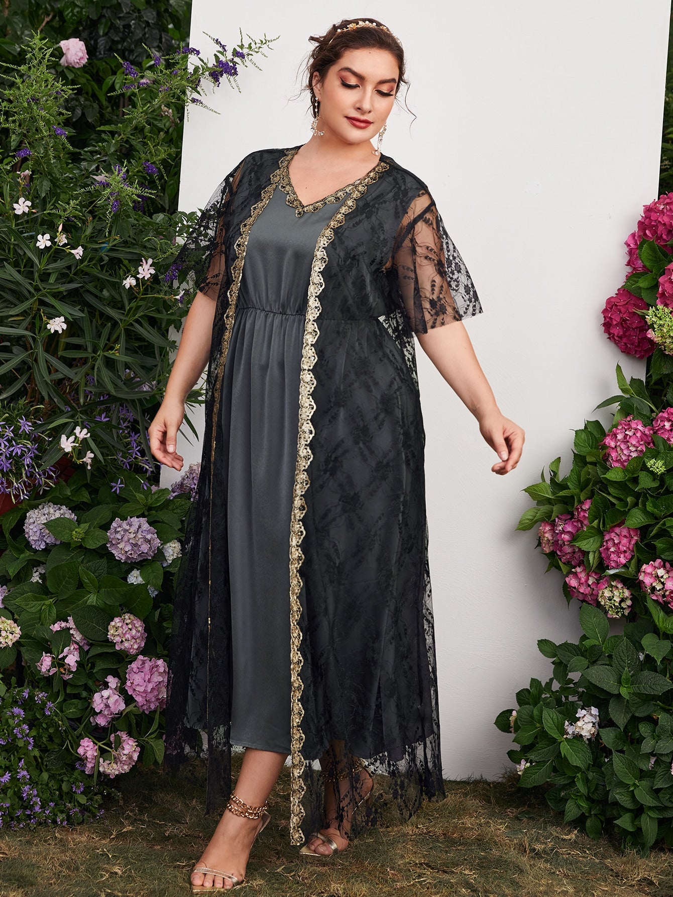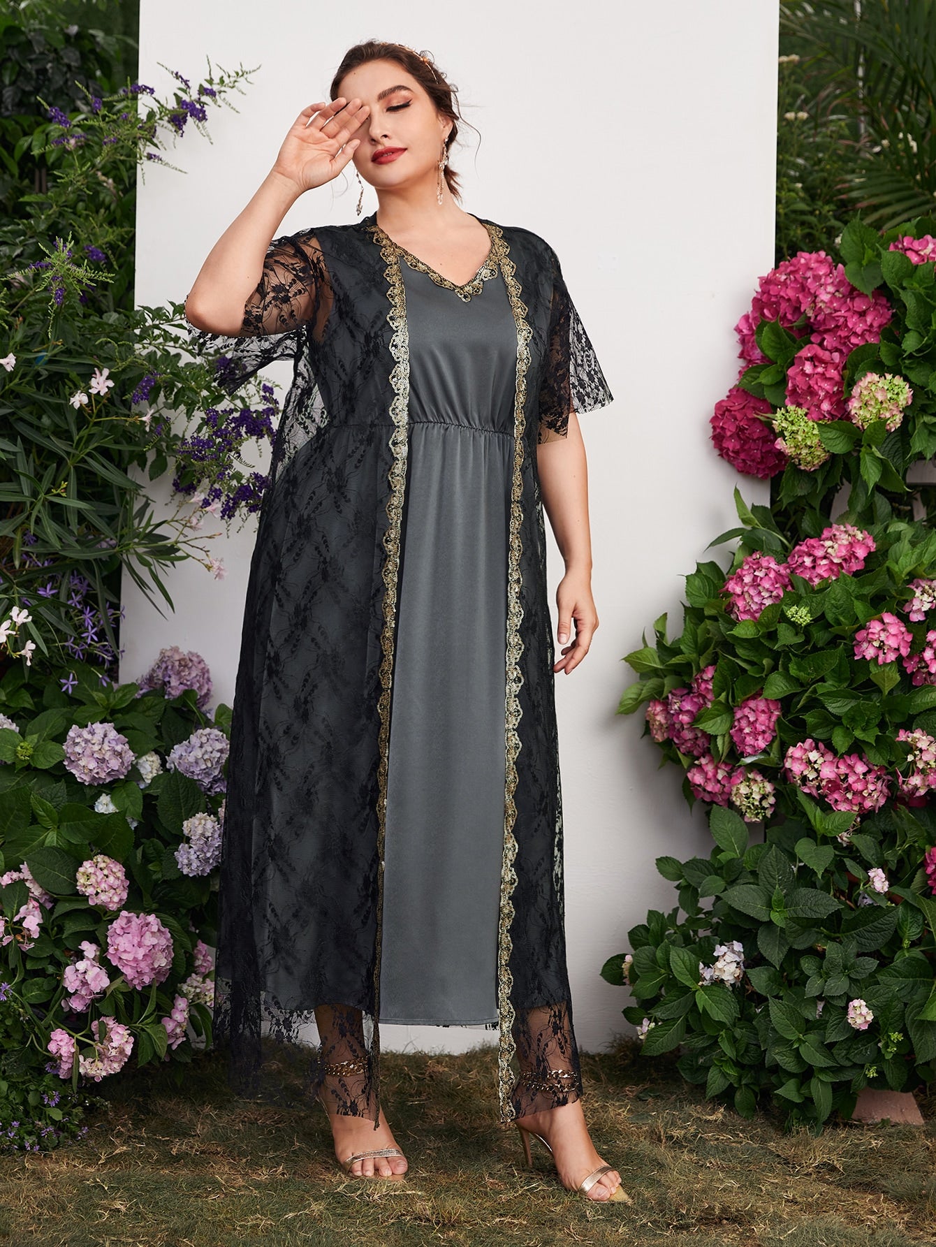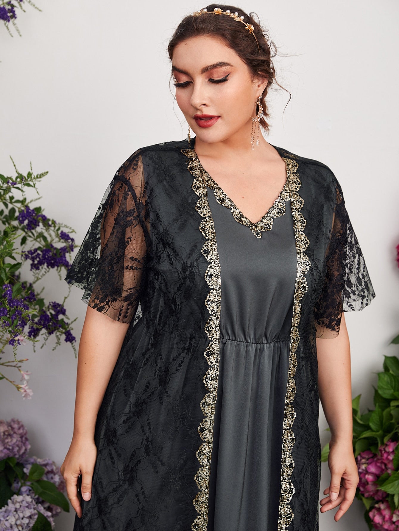 Plus Contrast Sequin Sleeveless A-line Dress With Lace Top