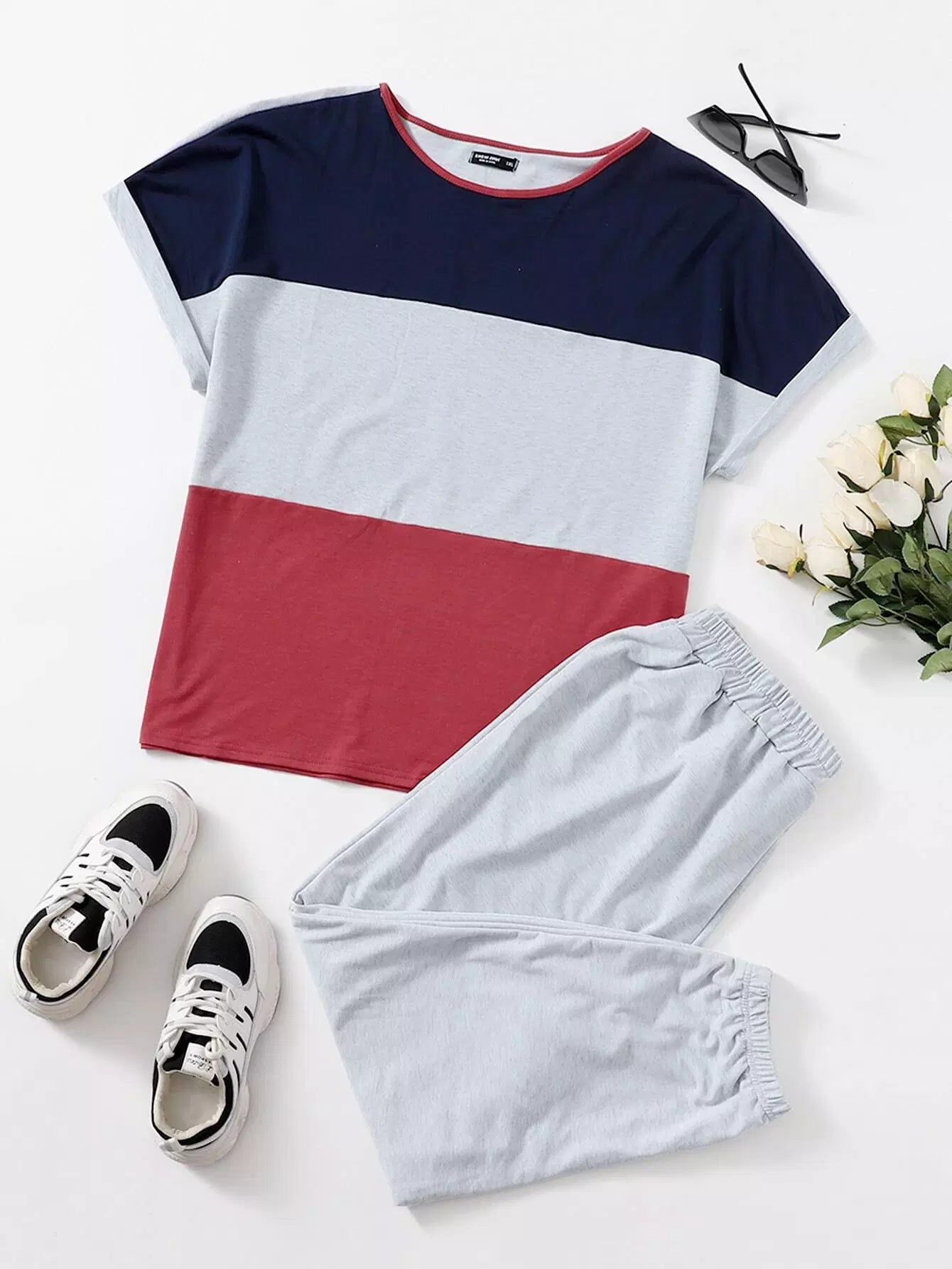 Plus Cut And Sew Tee With Sweatpants