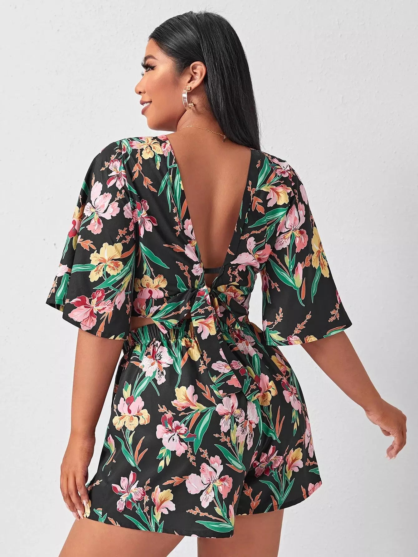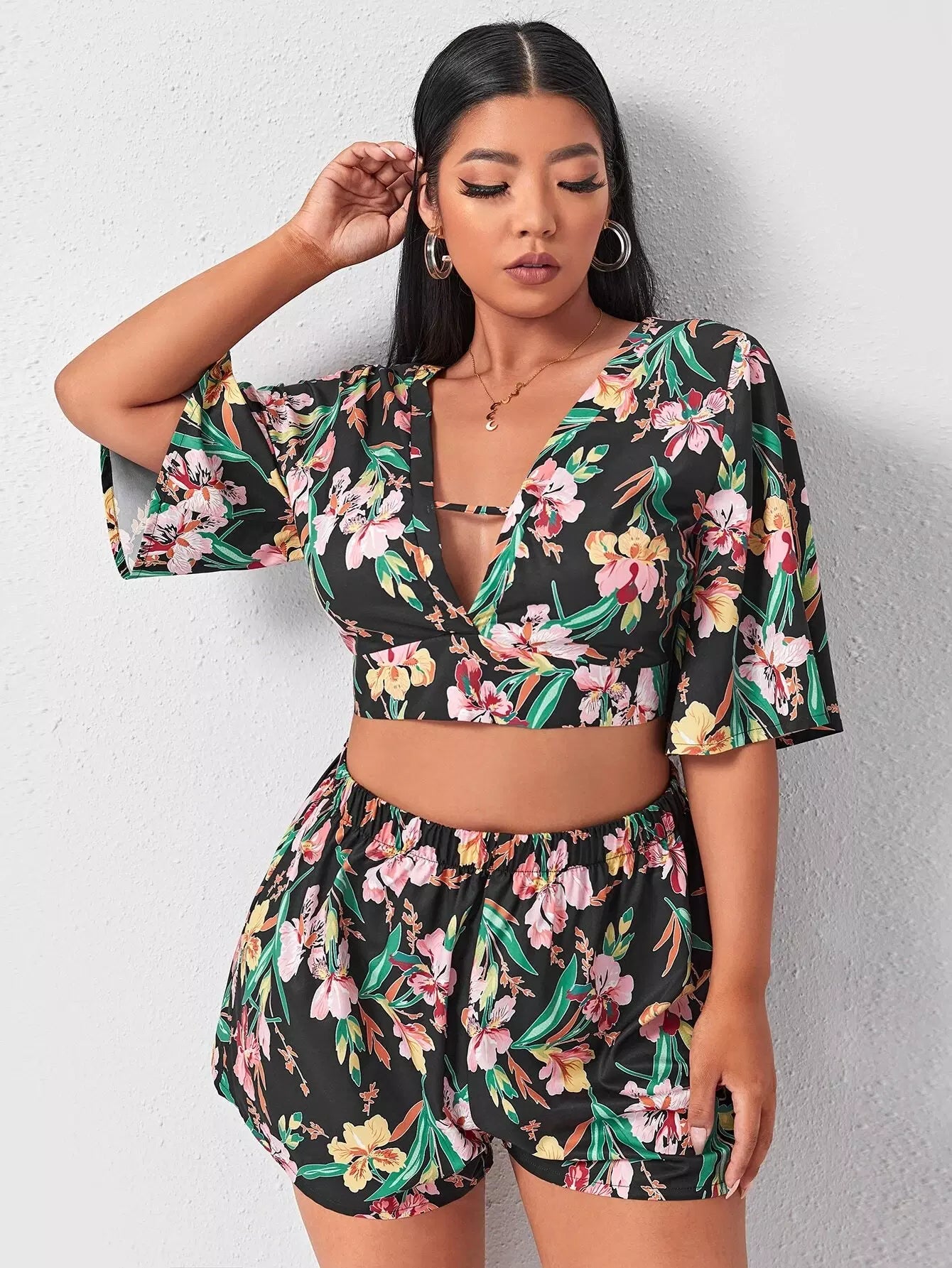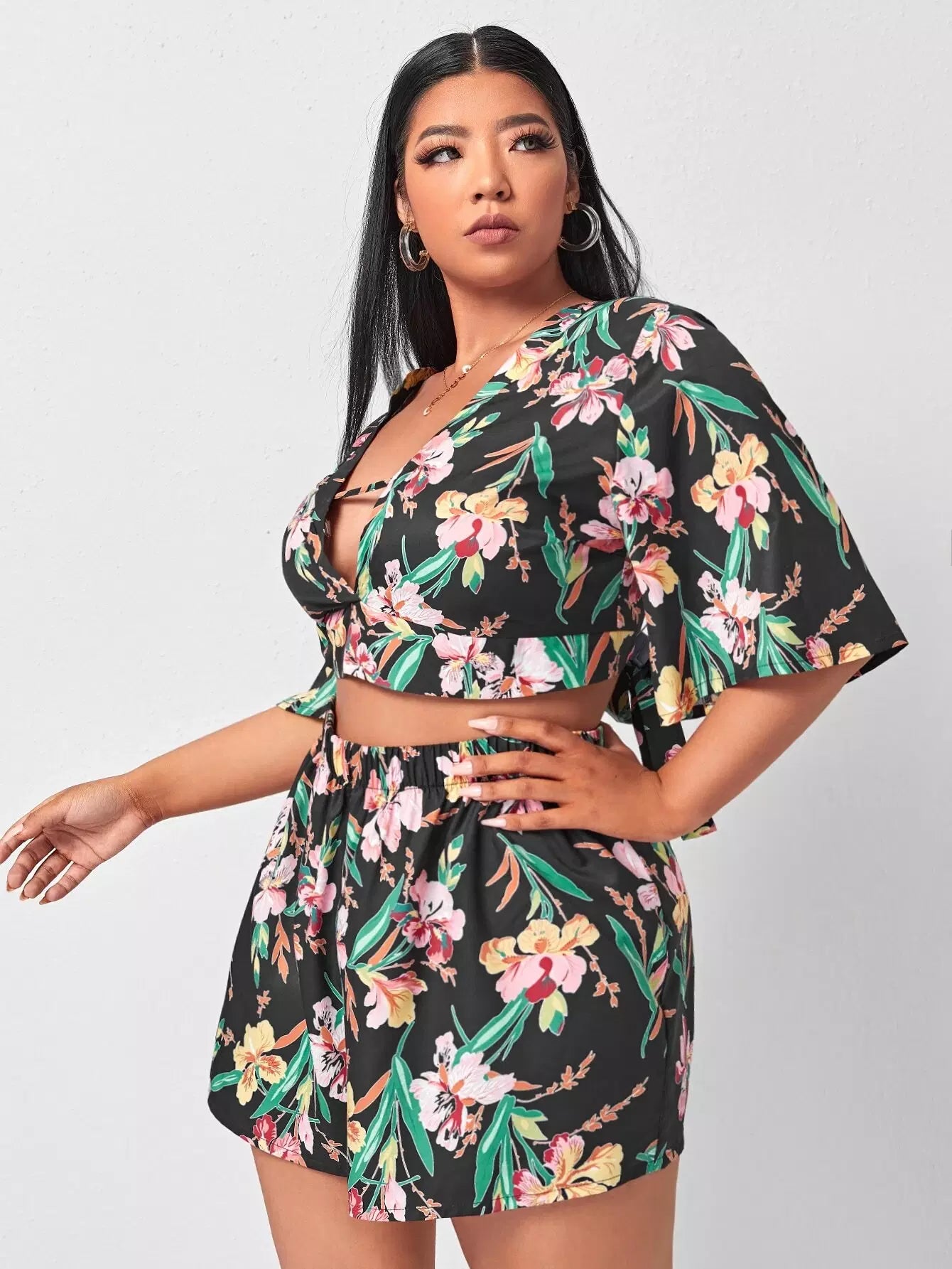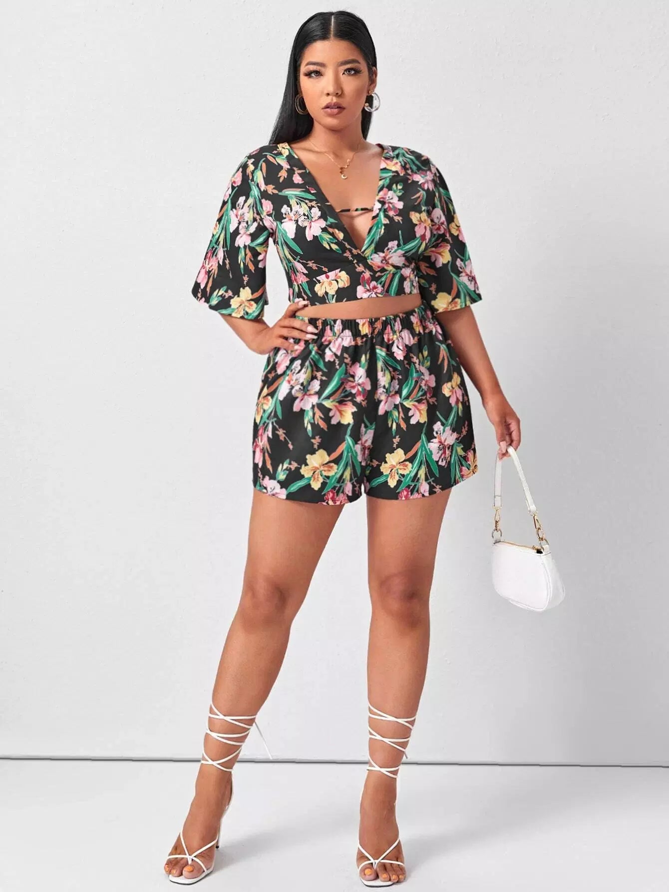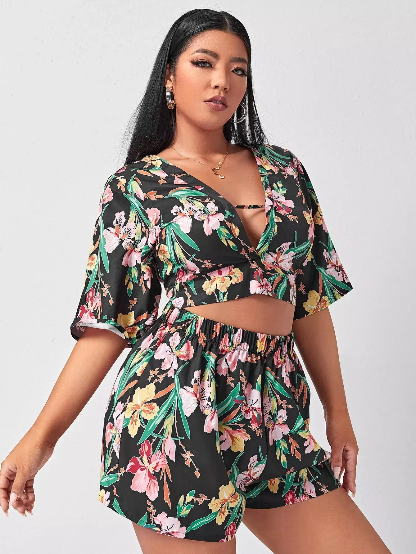 Plus Cut Out Tropical Print Top & Shorts