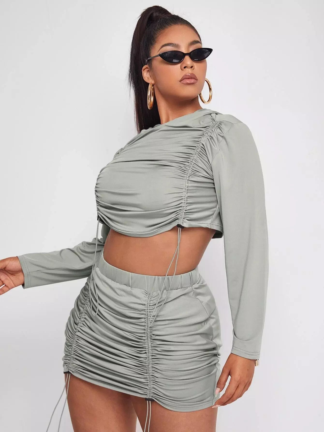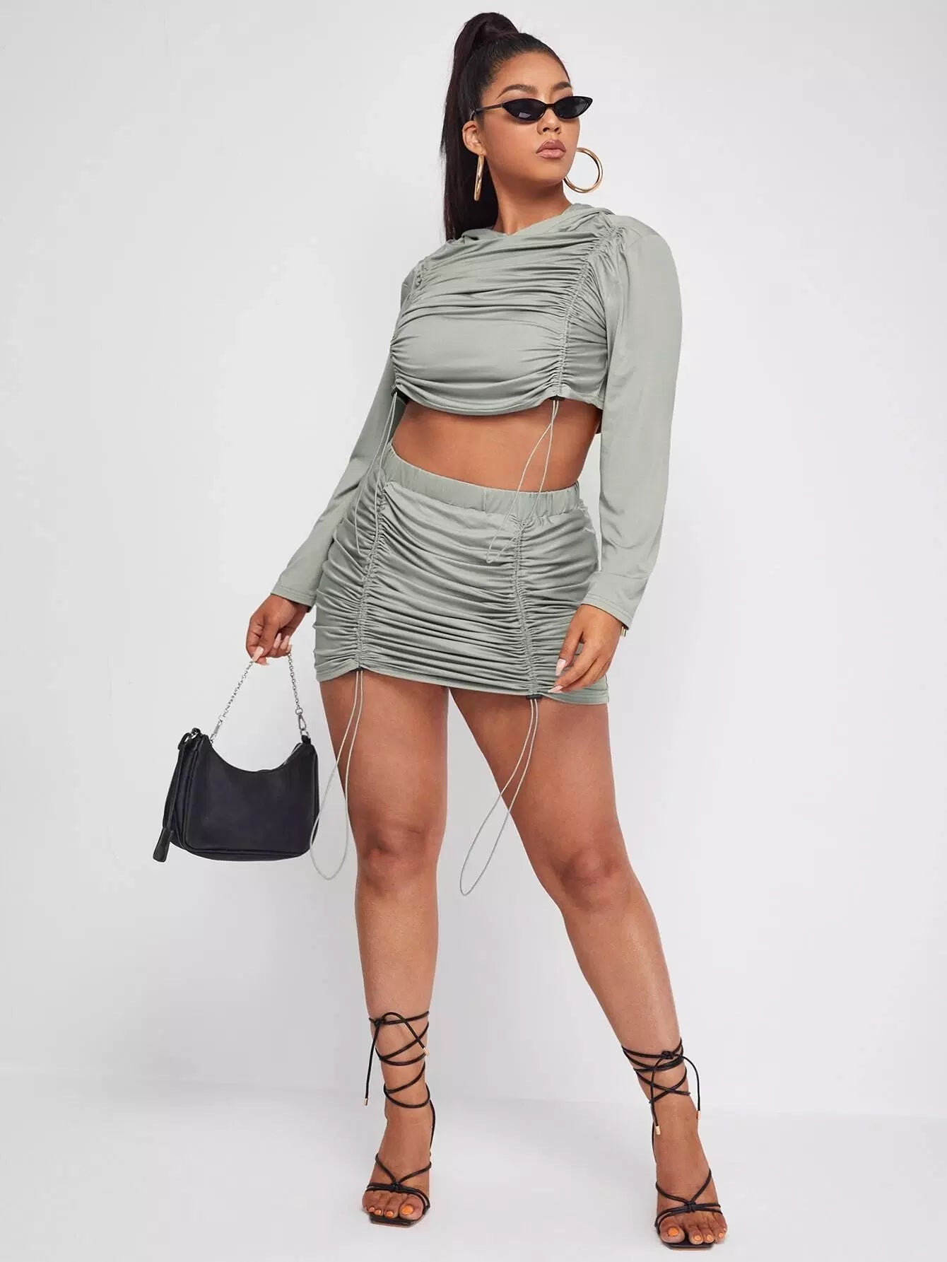 Plus Drawstring Ruched Hoodie & Skirt