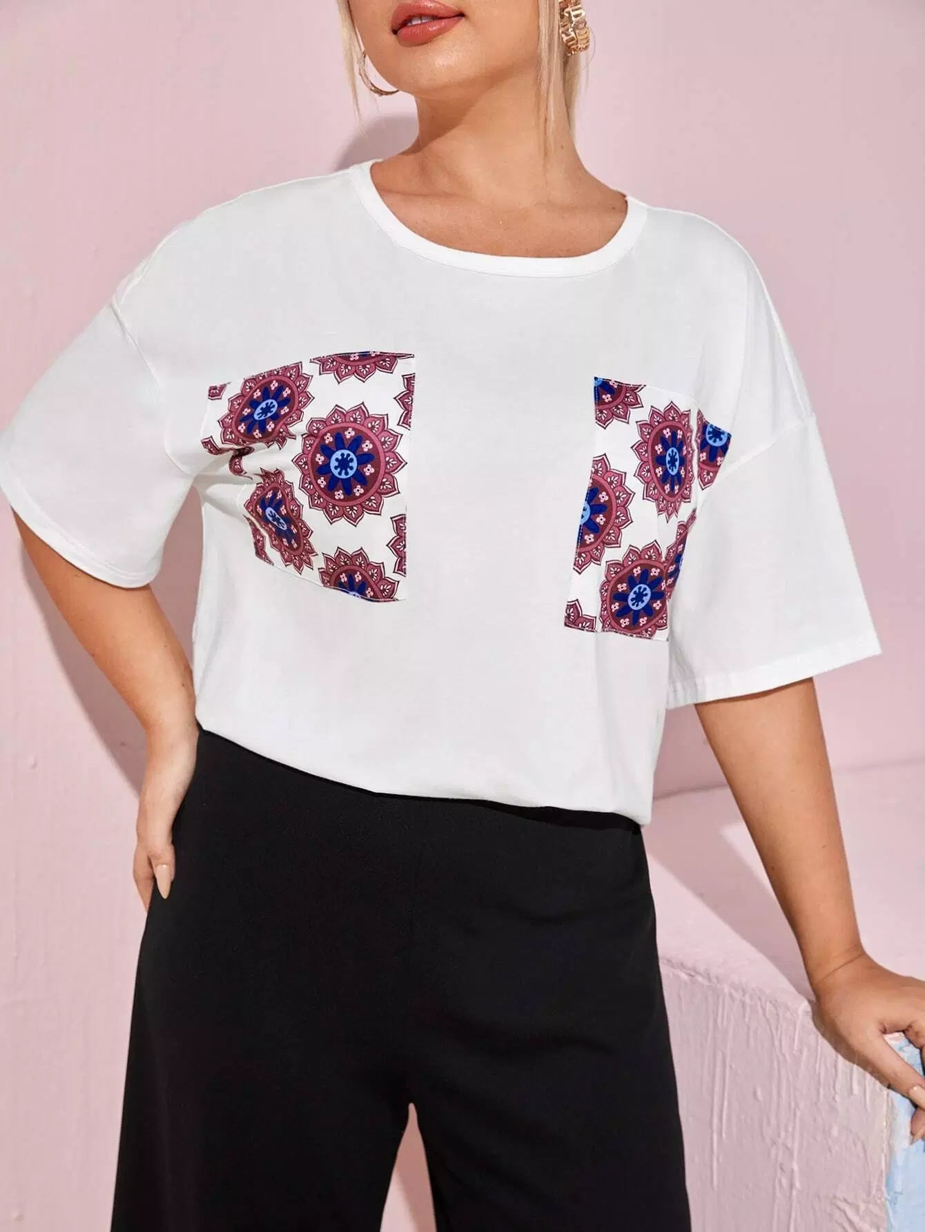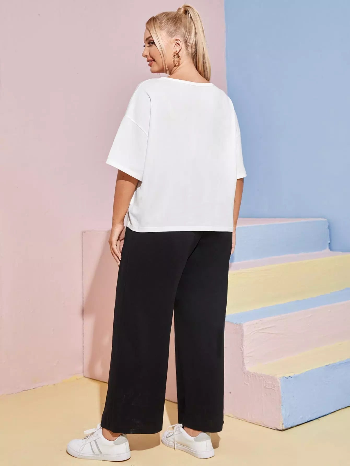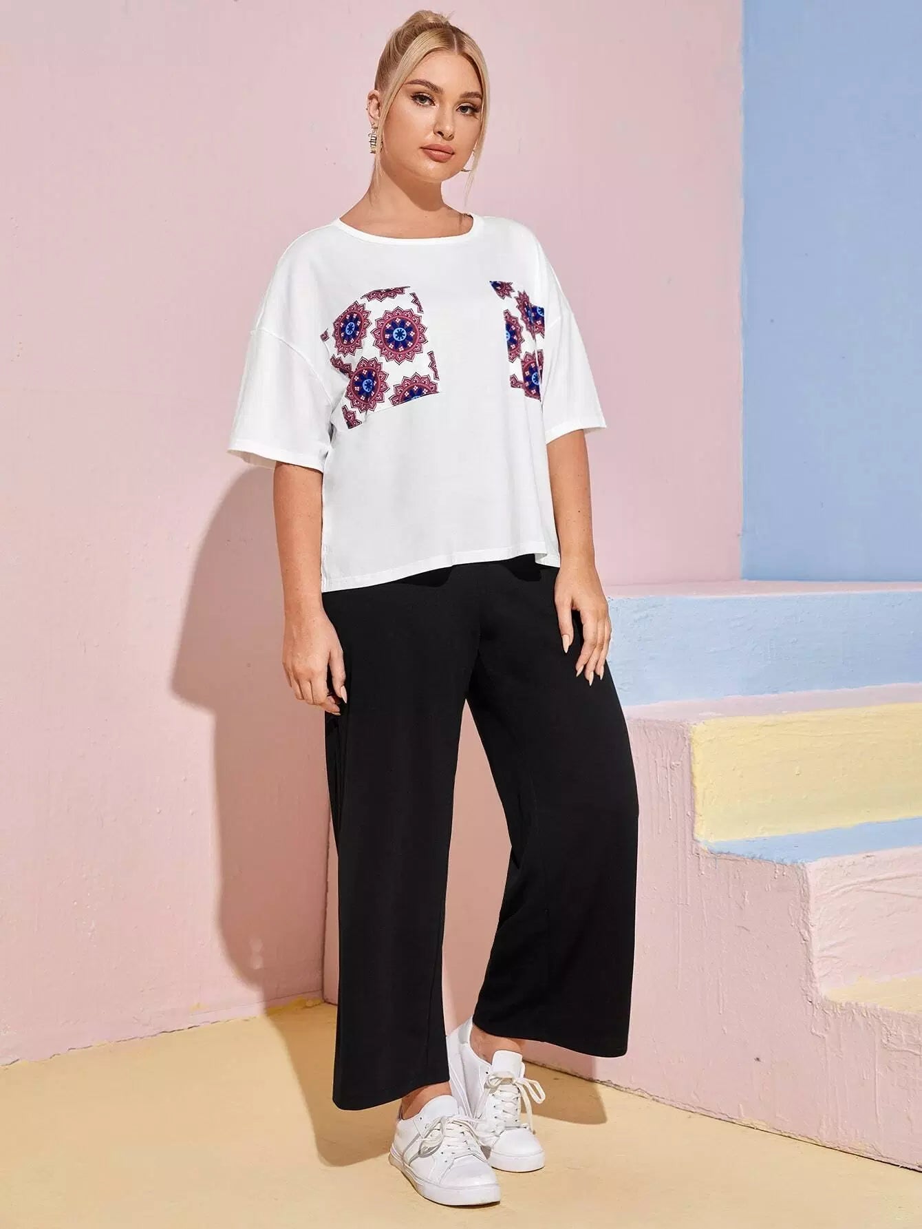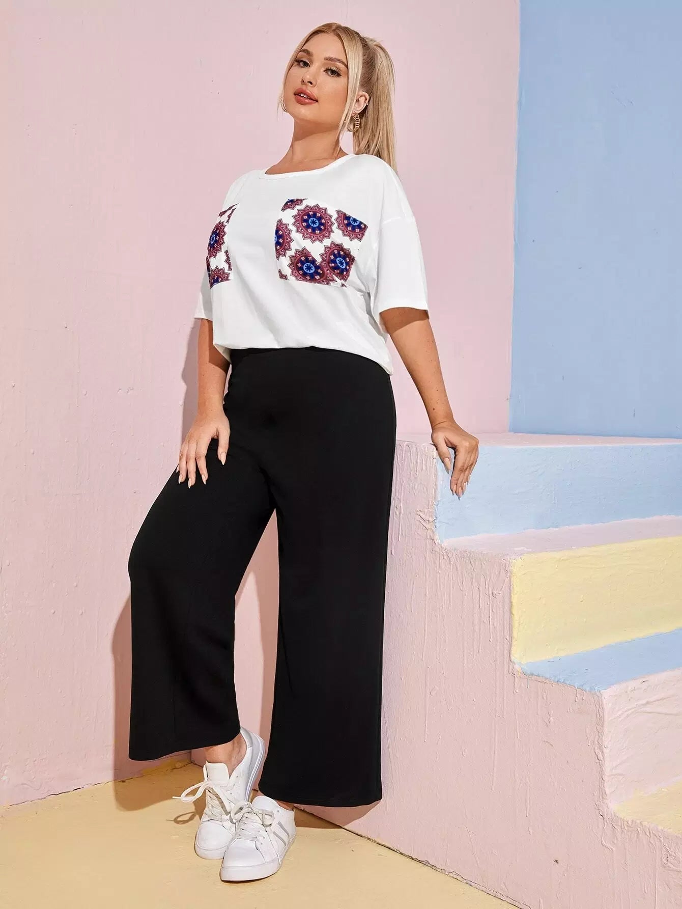 Plus Drop Shoulder Floral Patched Detail Top & Palazzo Pants Set