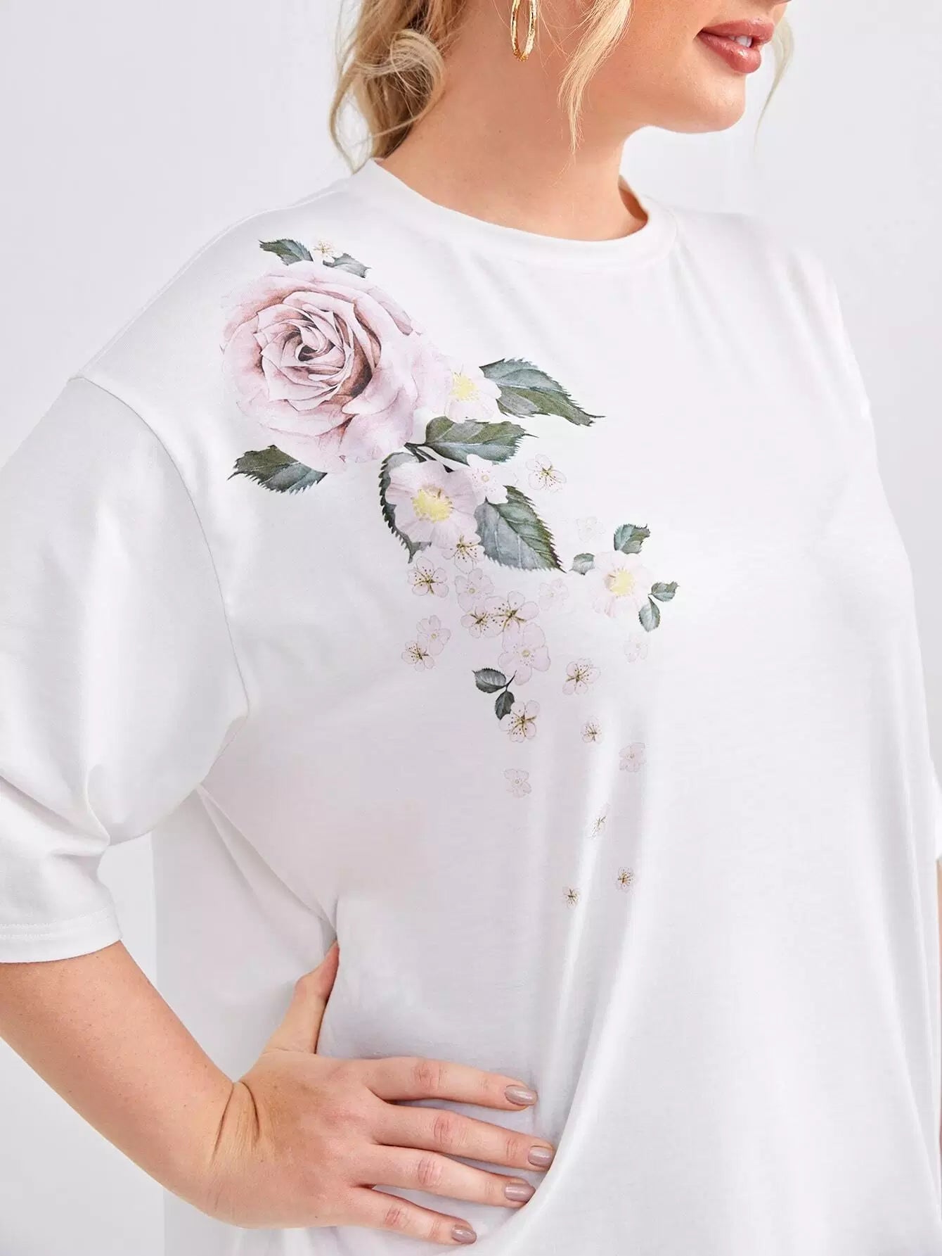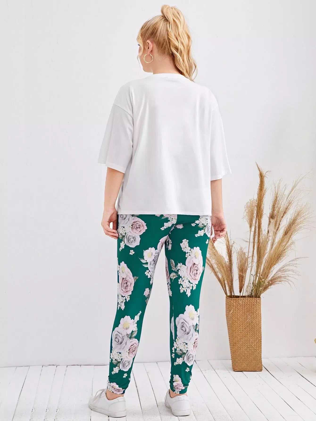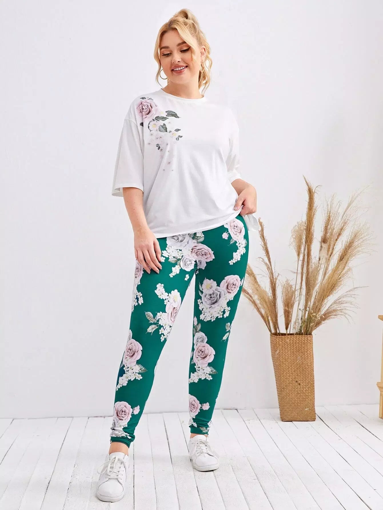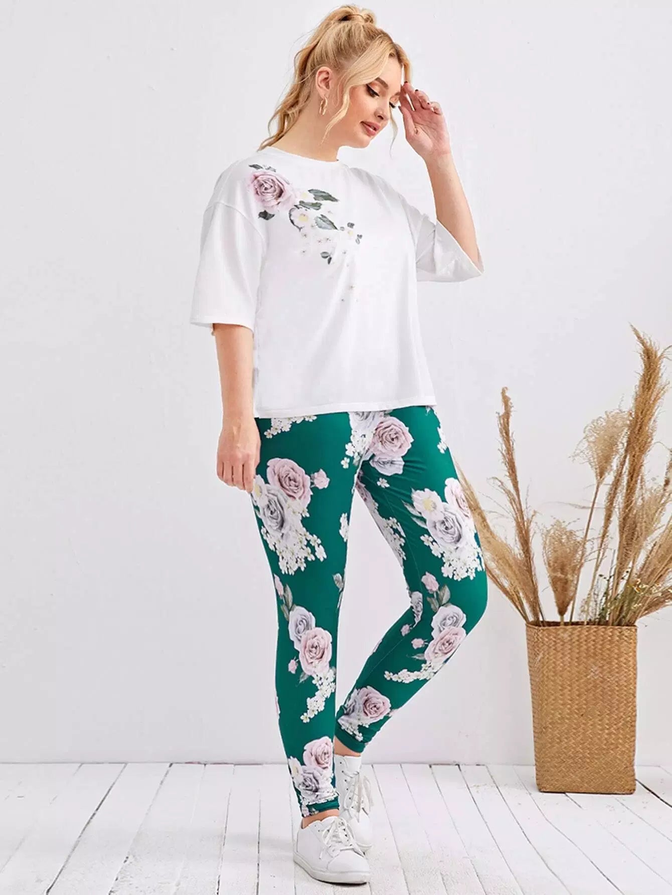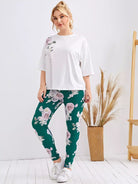 Plus Drop Shoulder Floral Print Top & Leggings Set