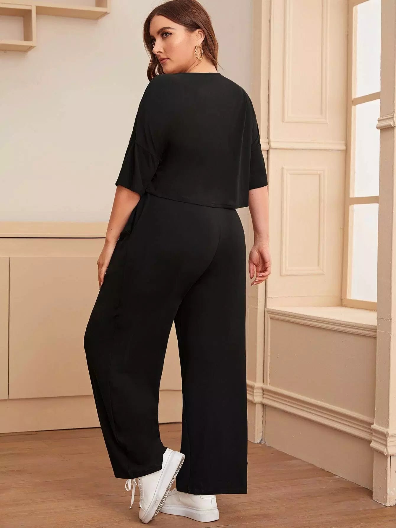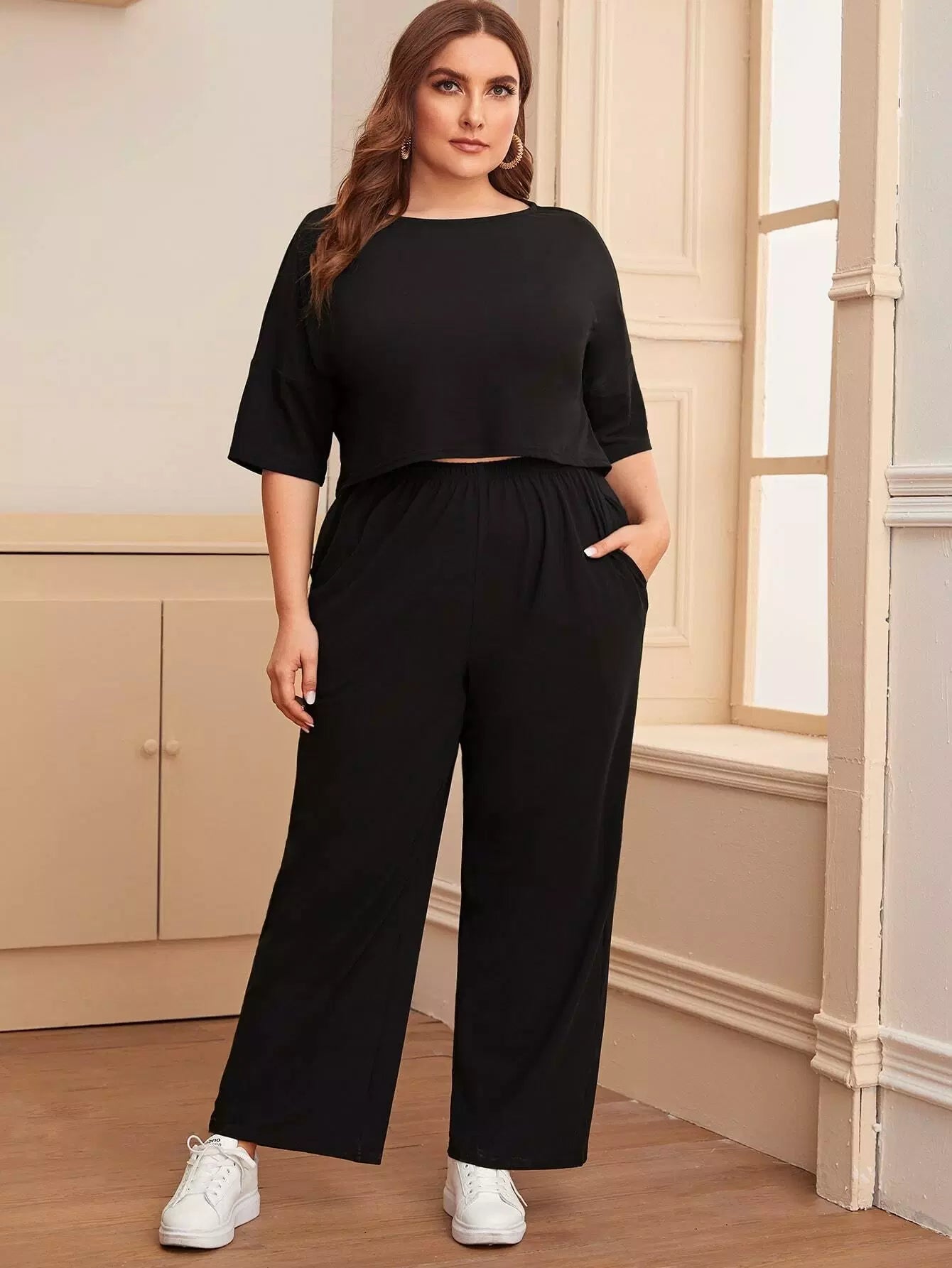 Plus Drop Shoulder Tee With Pocket Side Pants