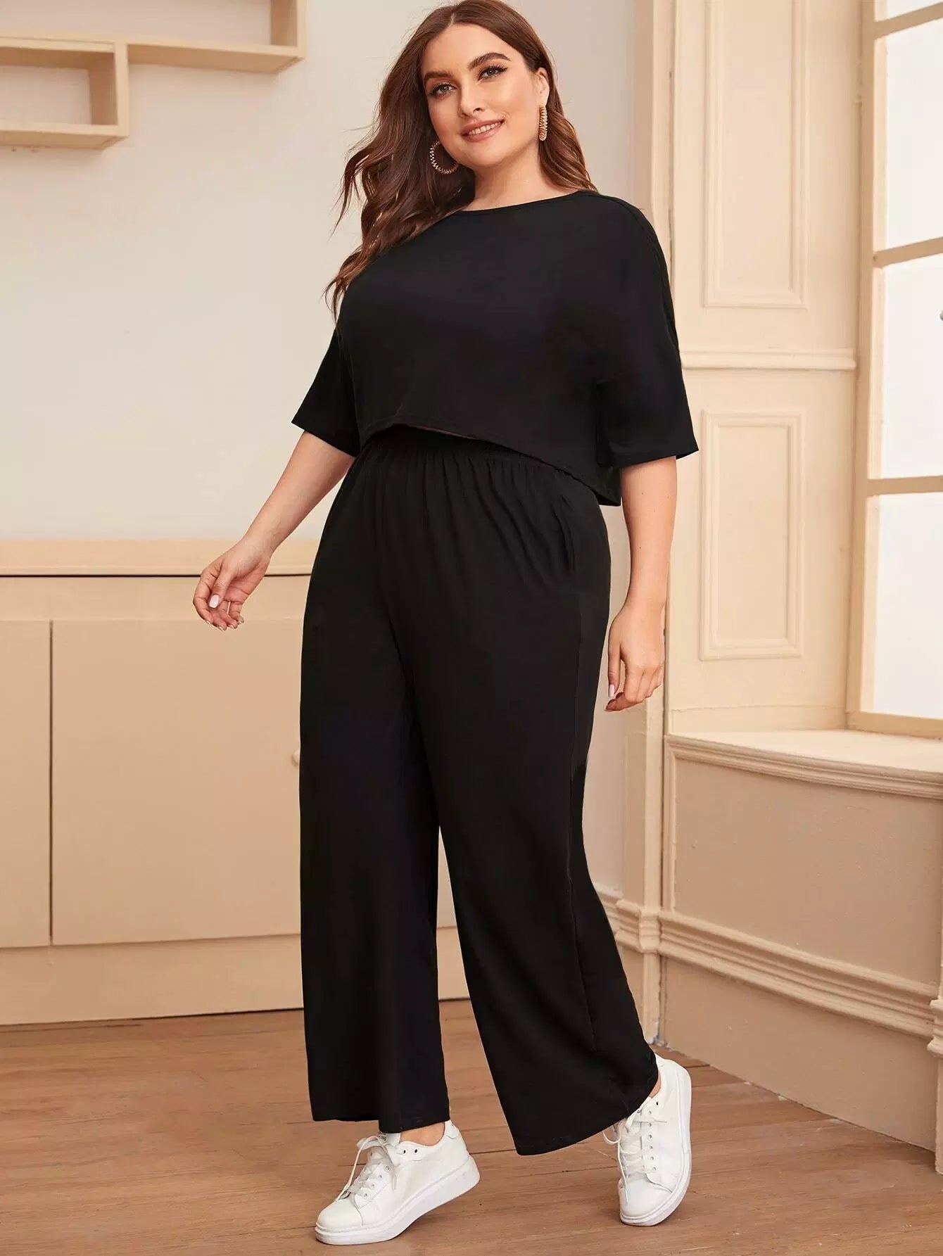 Women - Plus Drop Shoulder Tee With Pocket Side Pants