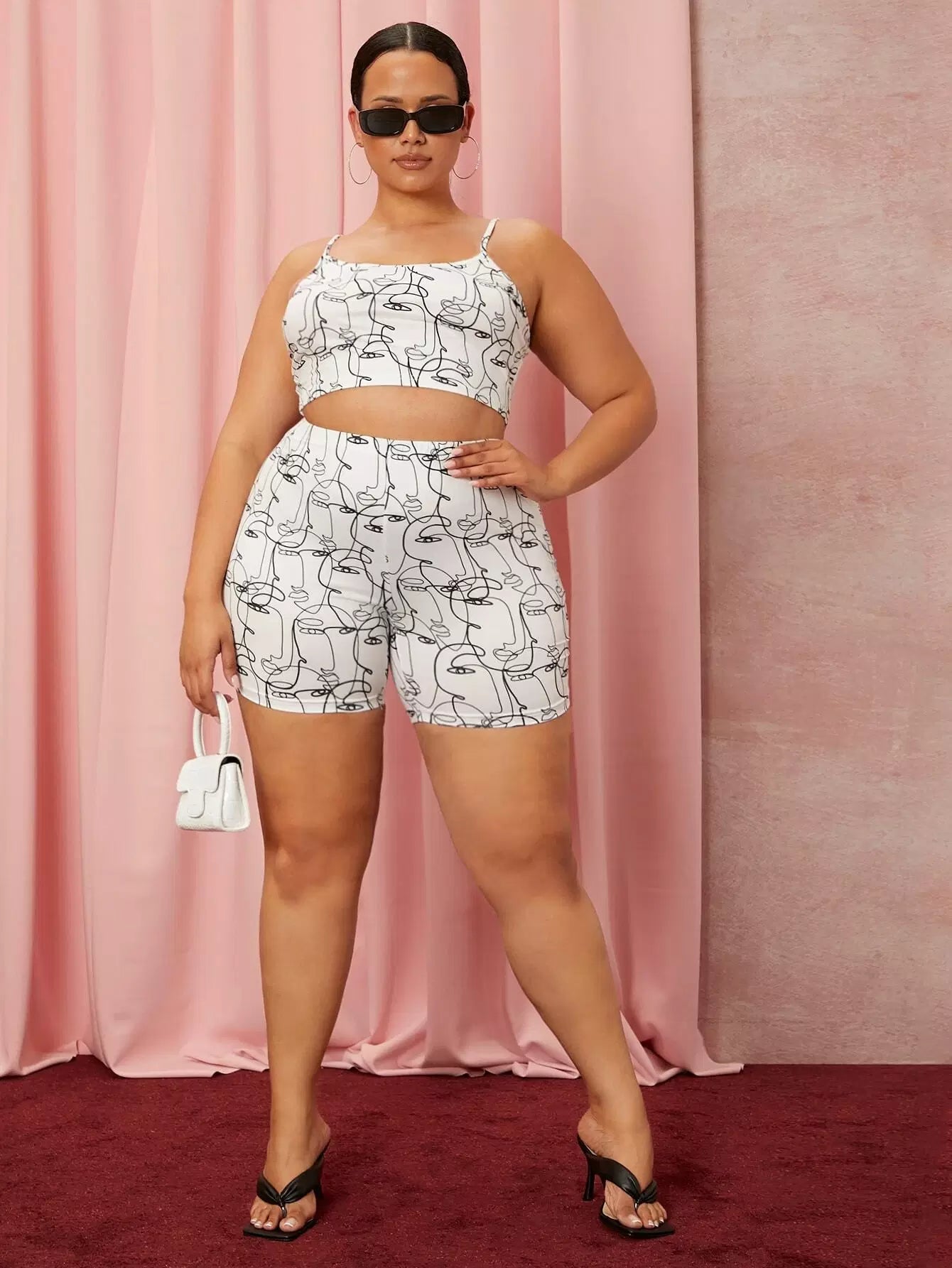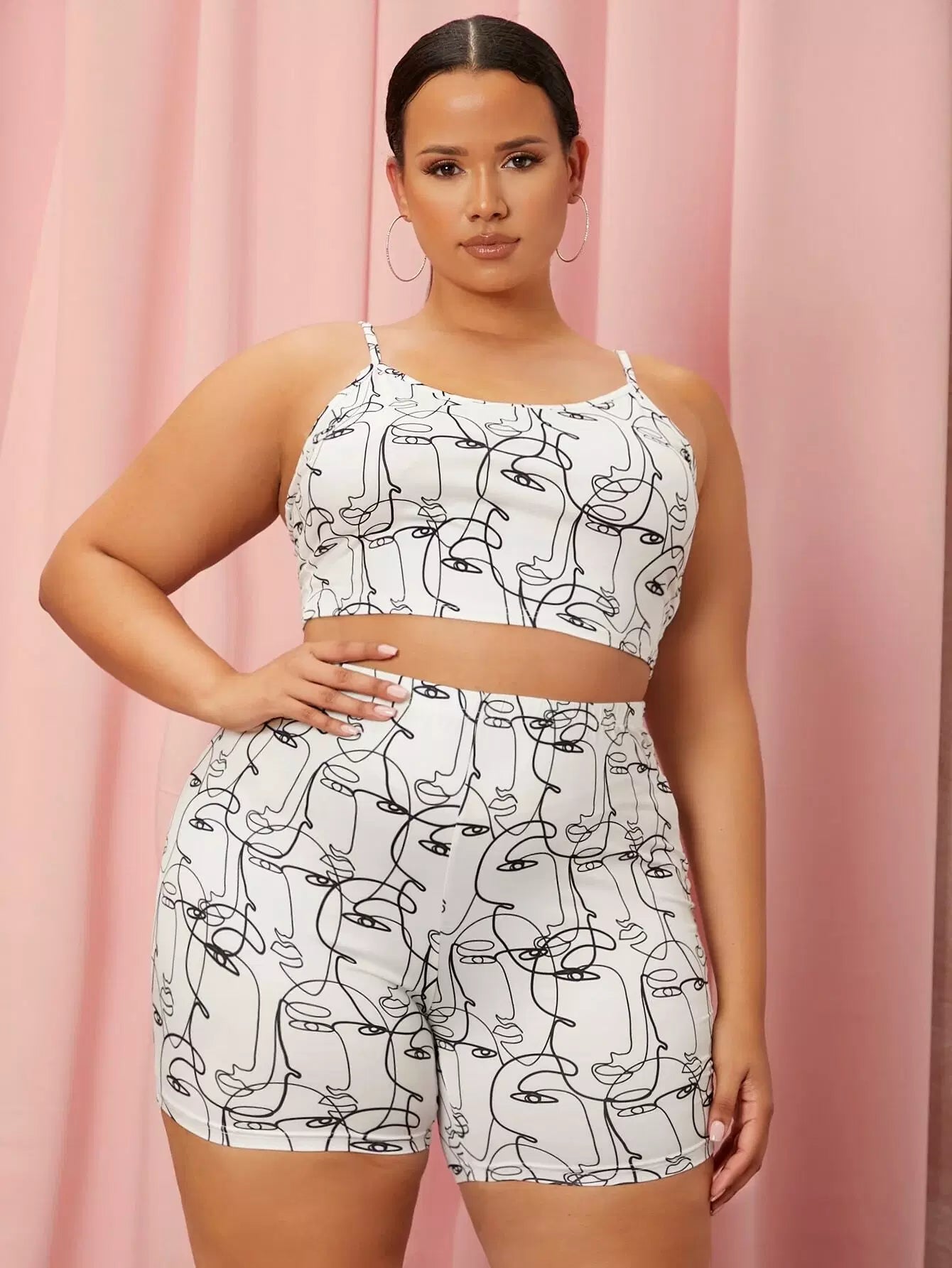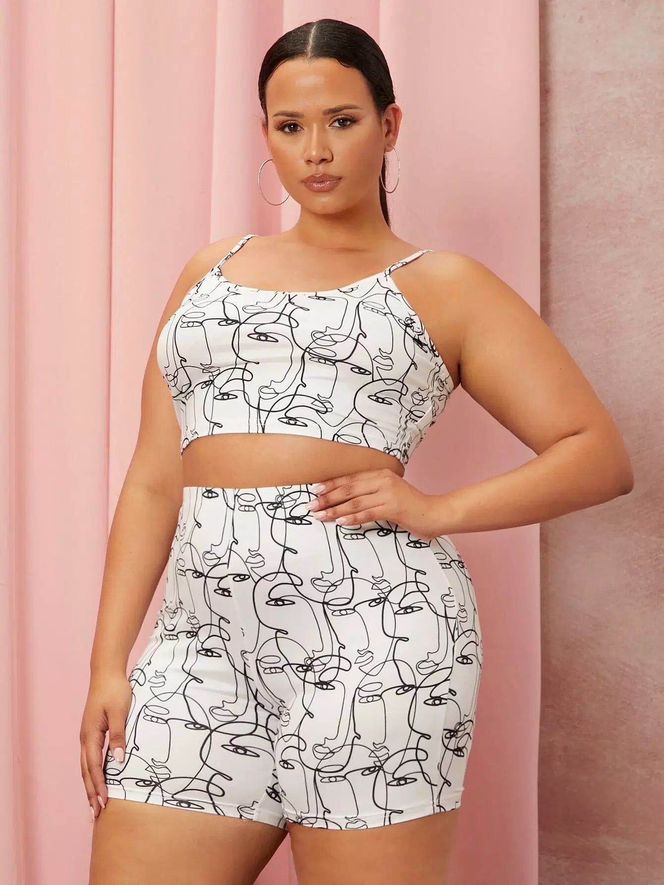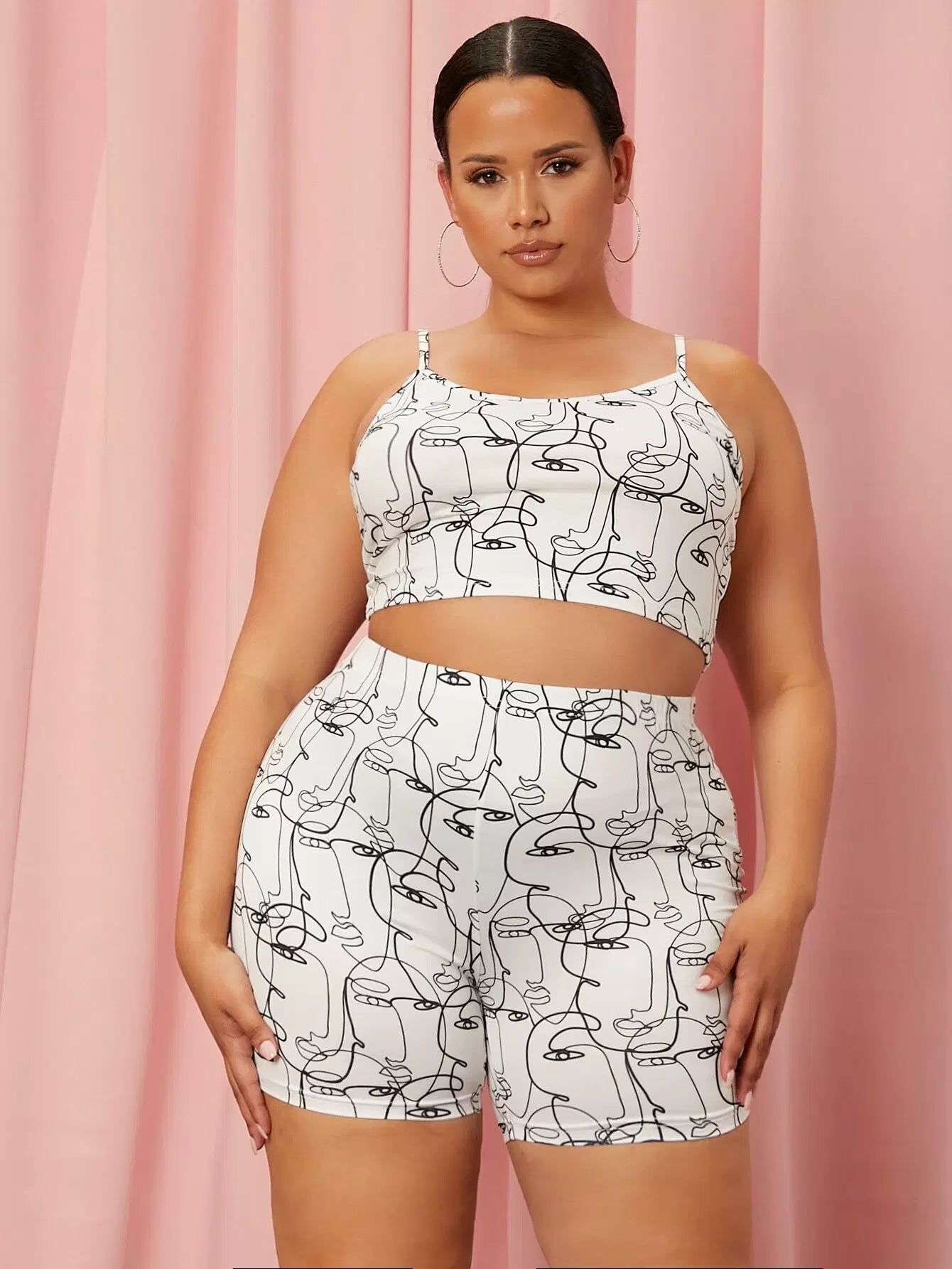 Plus Figure Graphic Cami Top And Biker Shorts Set
