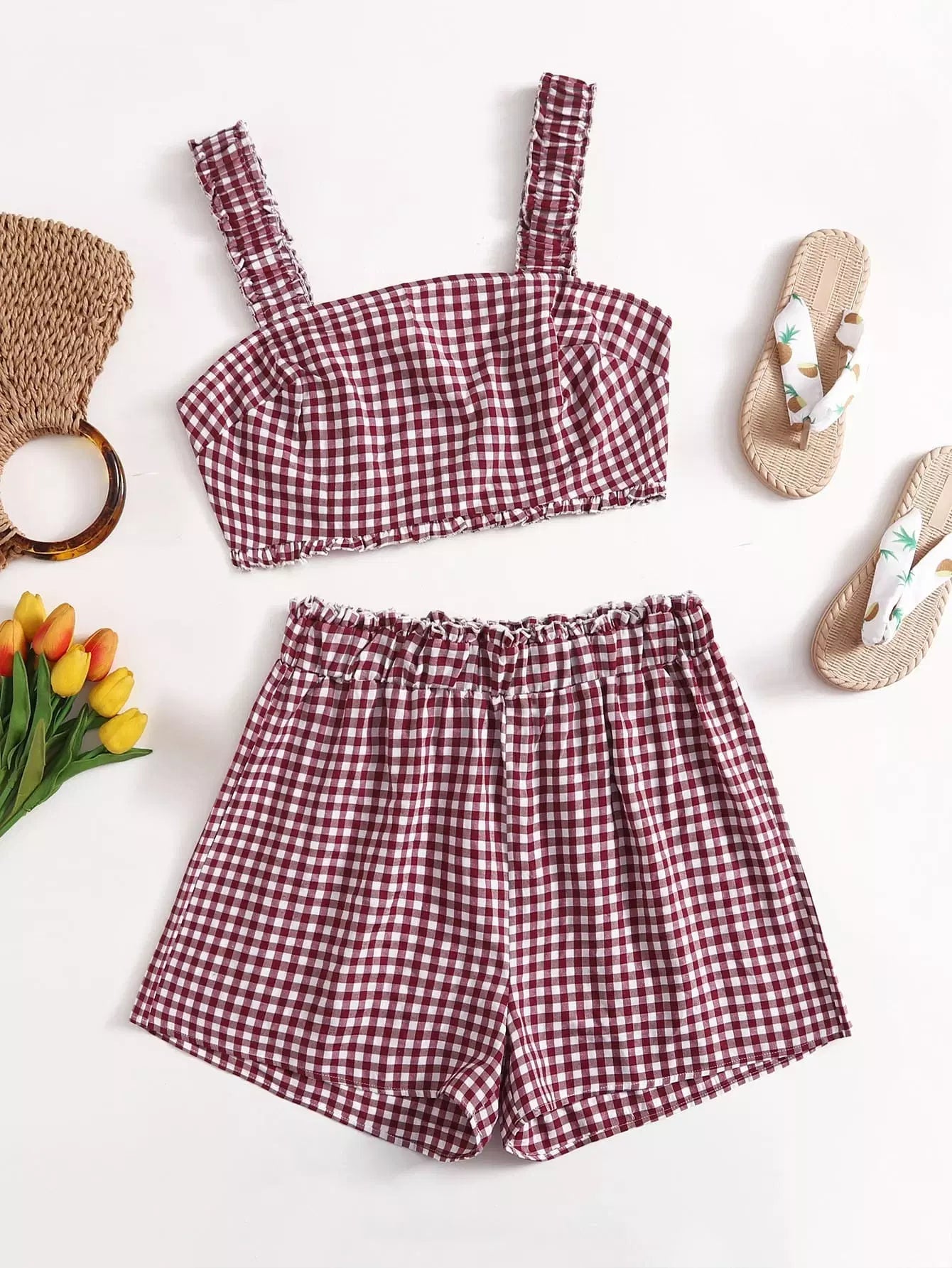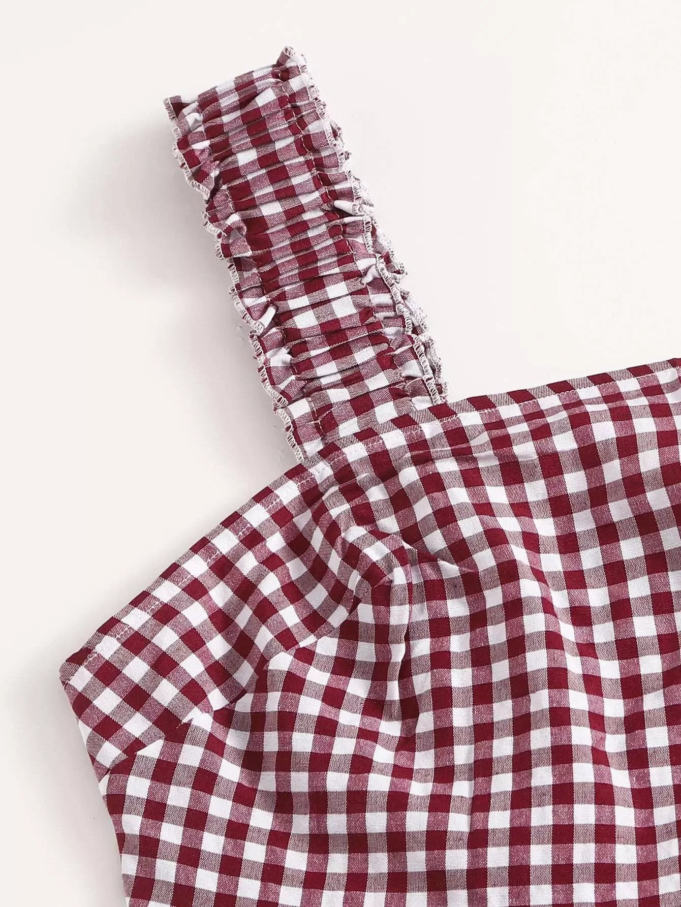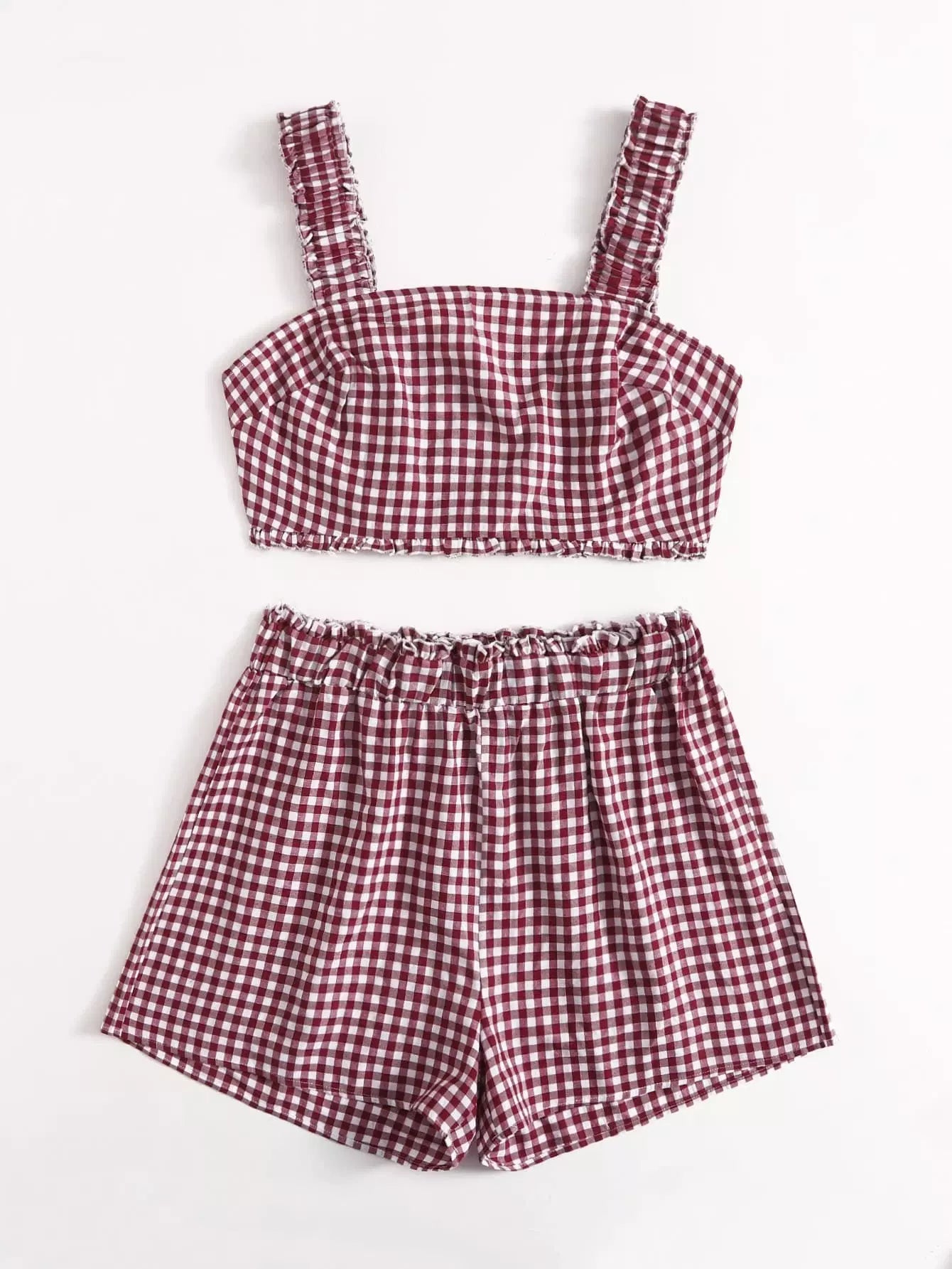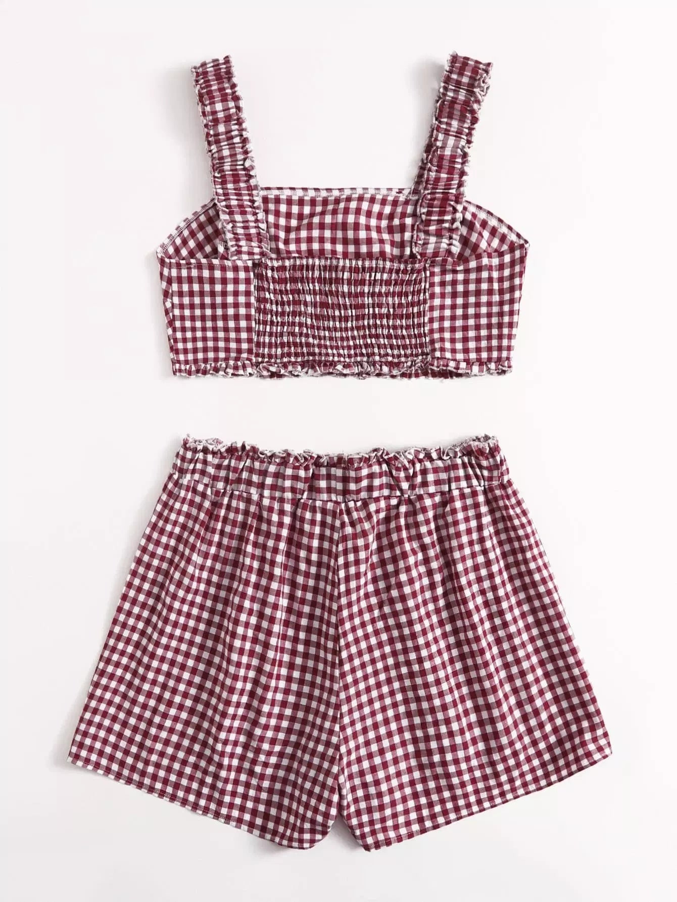 Plus Gingham Frill Trim Shirred Tank Top With Shorts