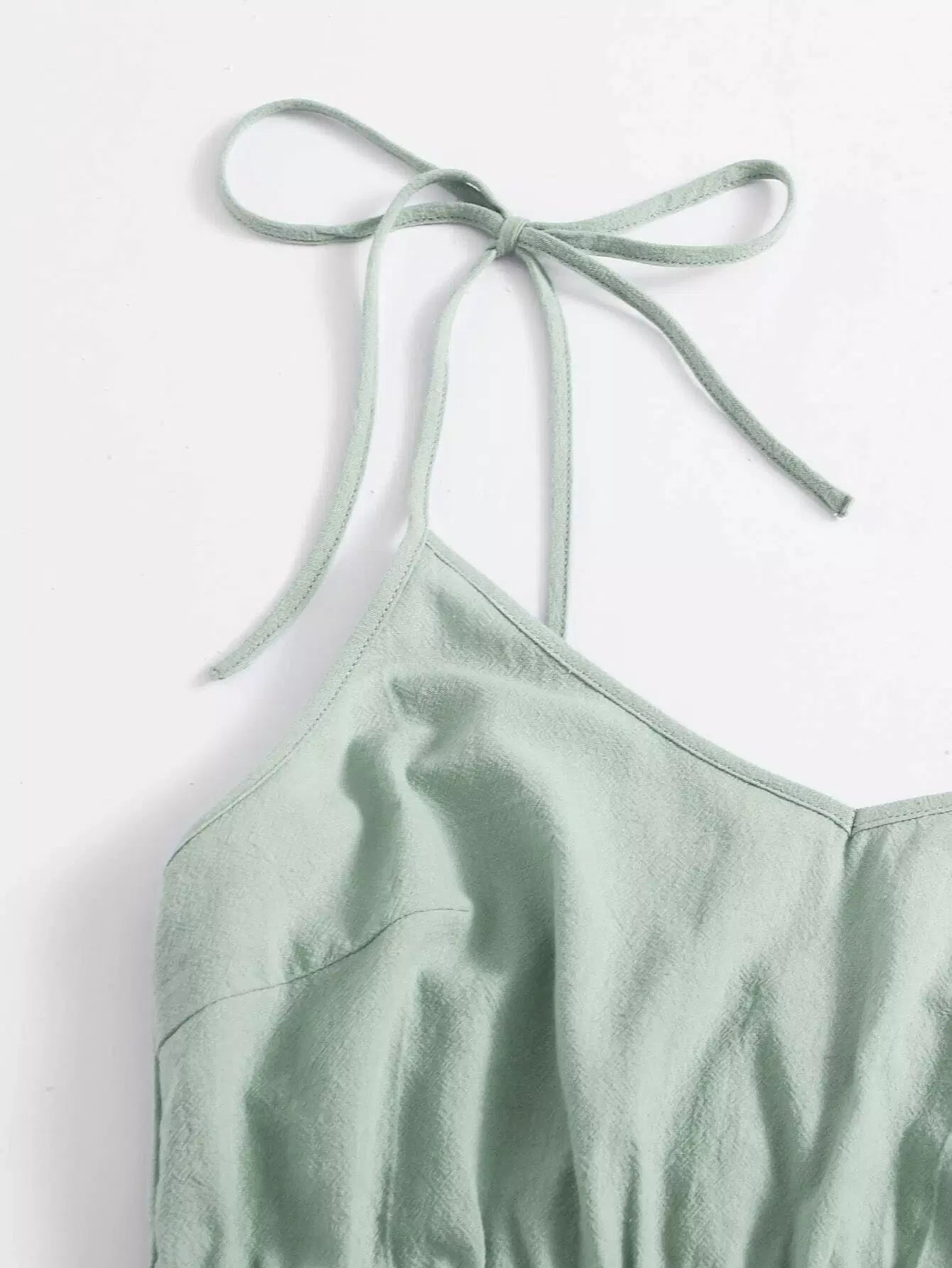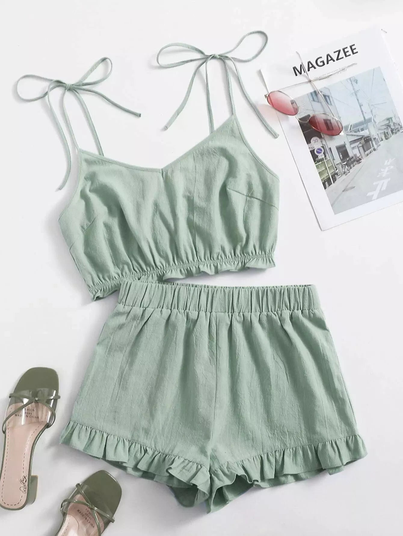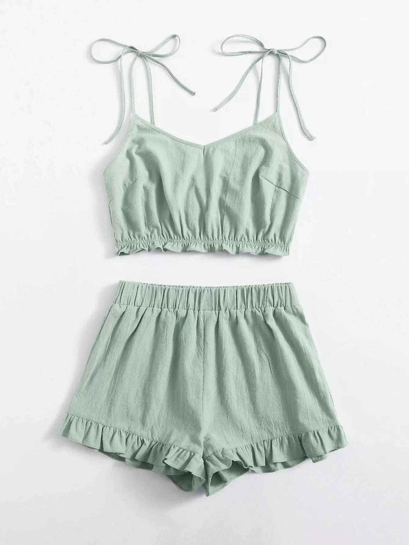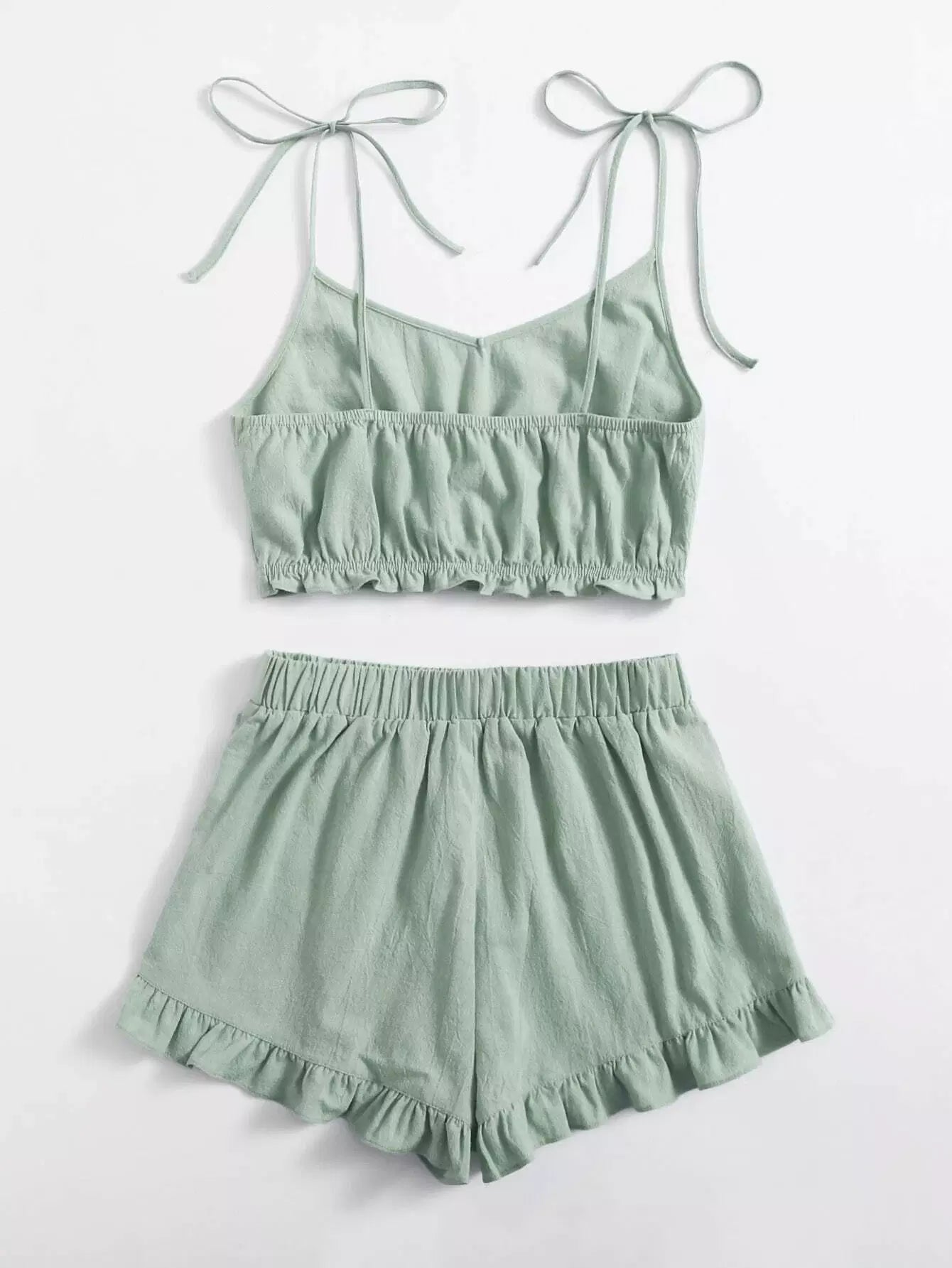 Plus Knot Straps Cami Crop Top & Ruffle Hem Shorts Set