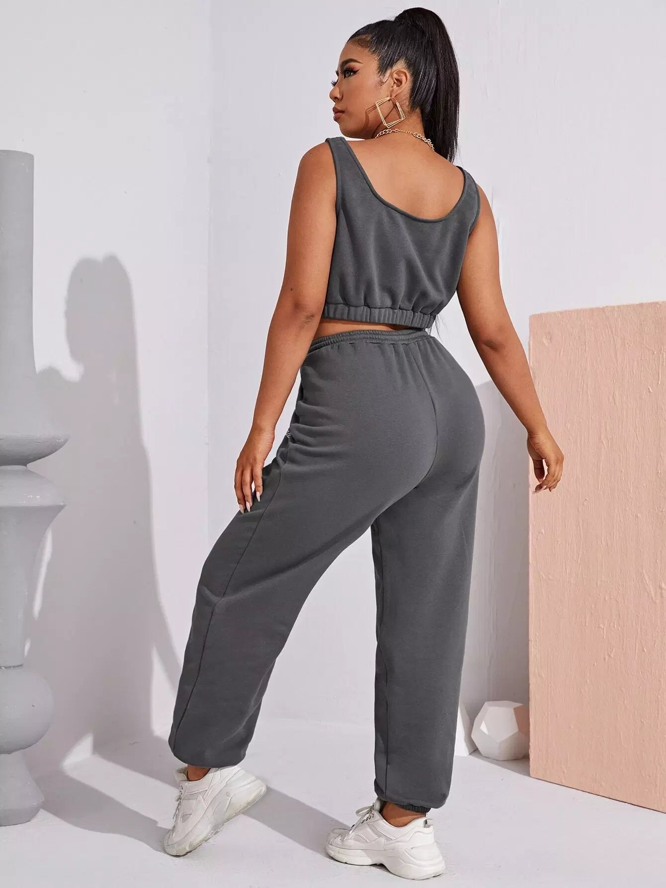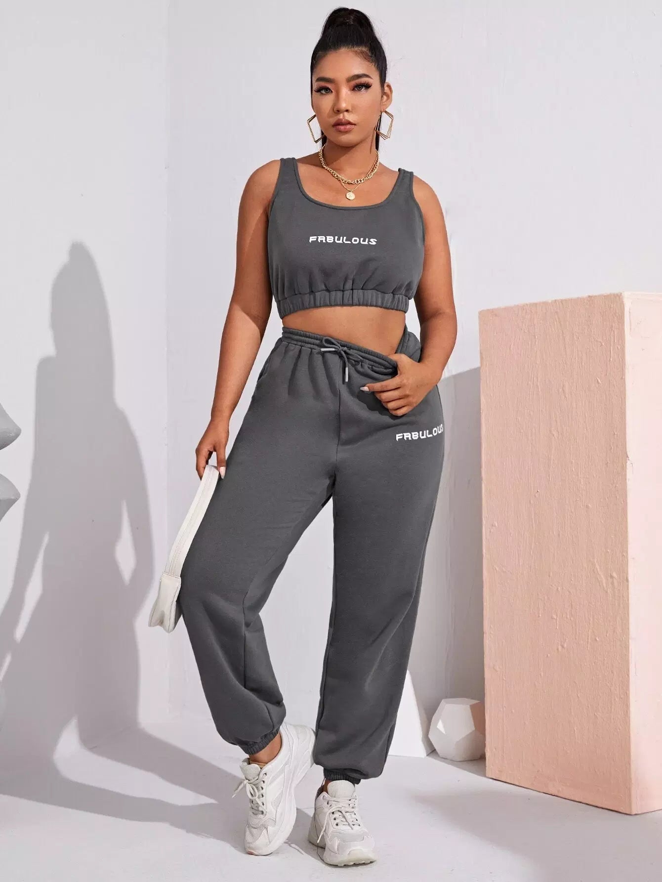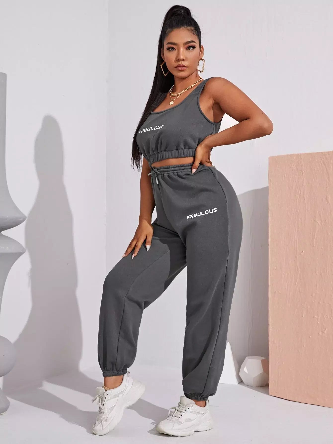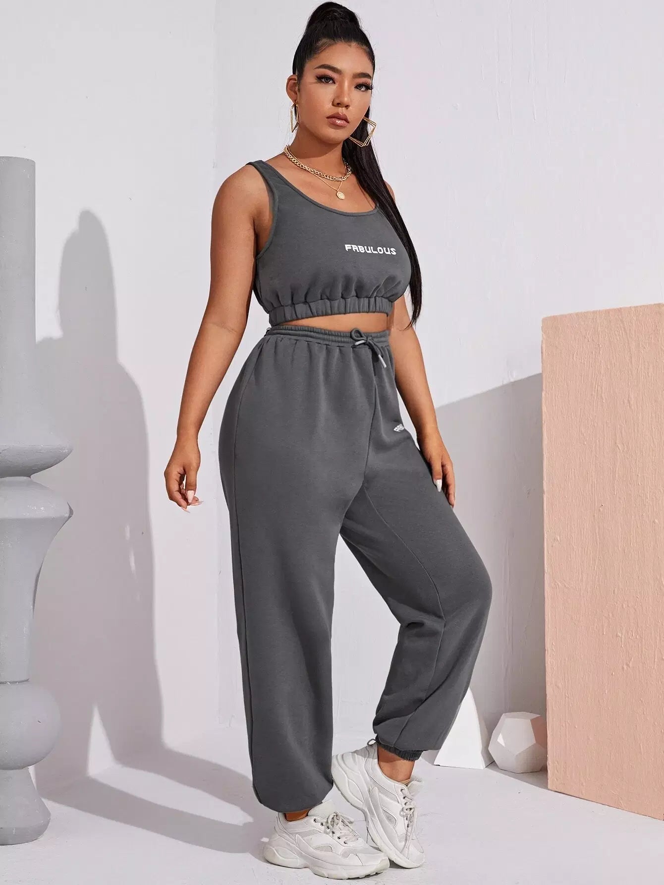 Plus Letter Graphic Tank Top & Sweatpants Set