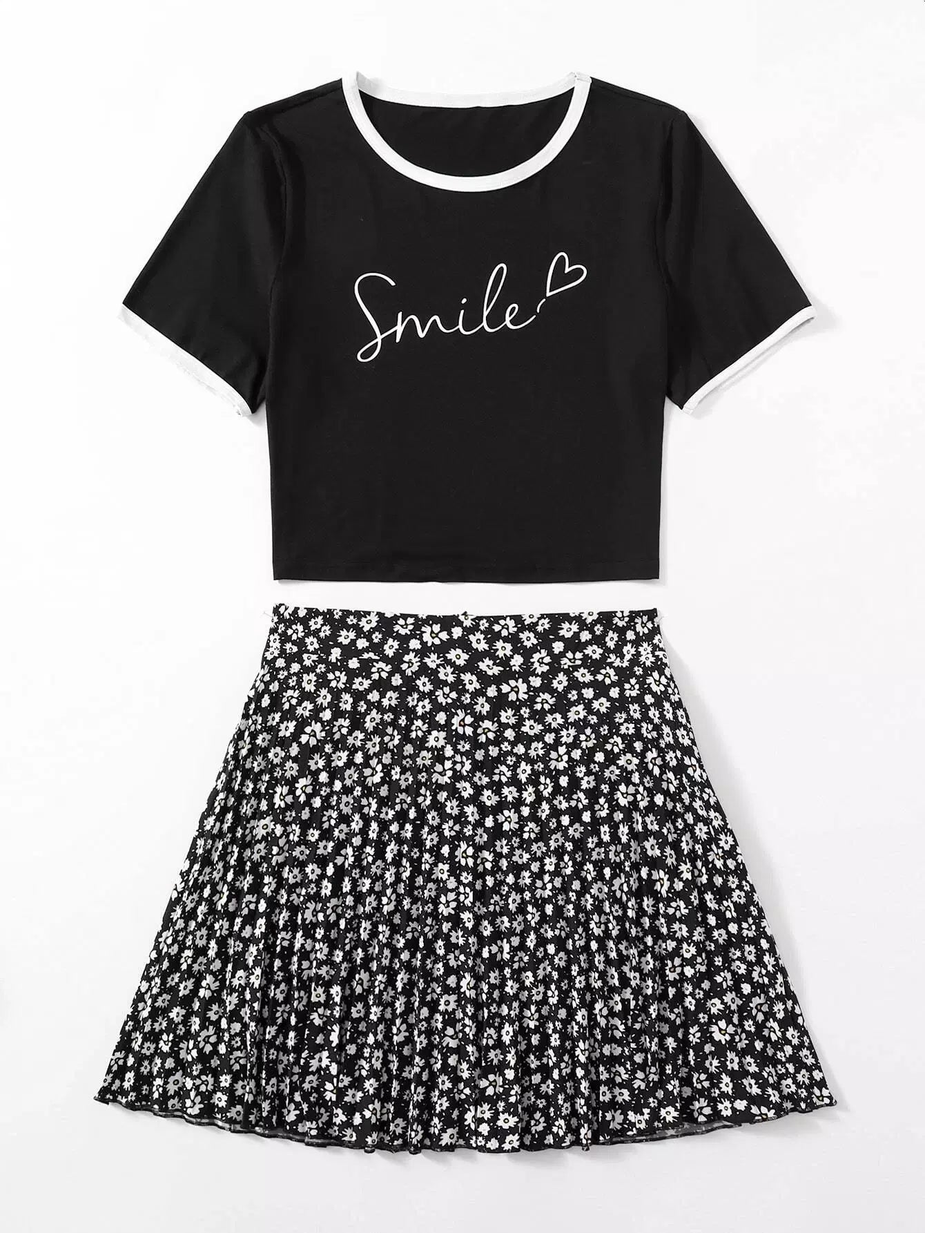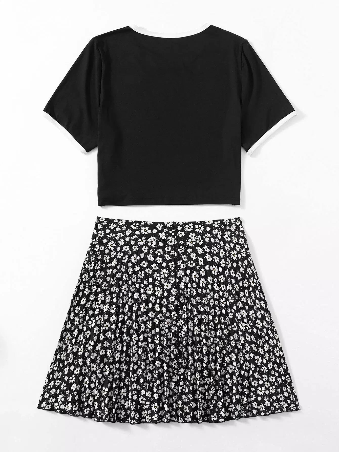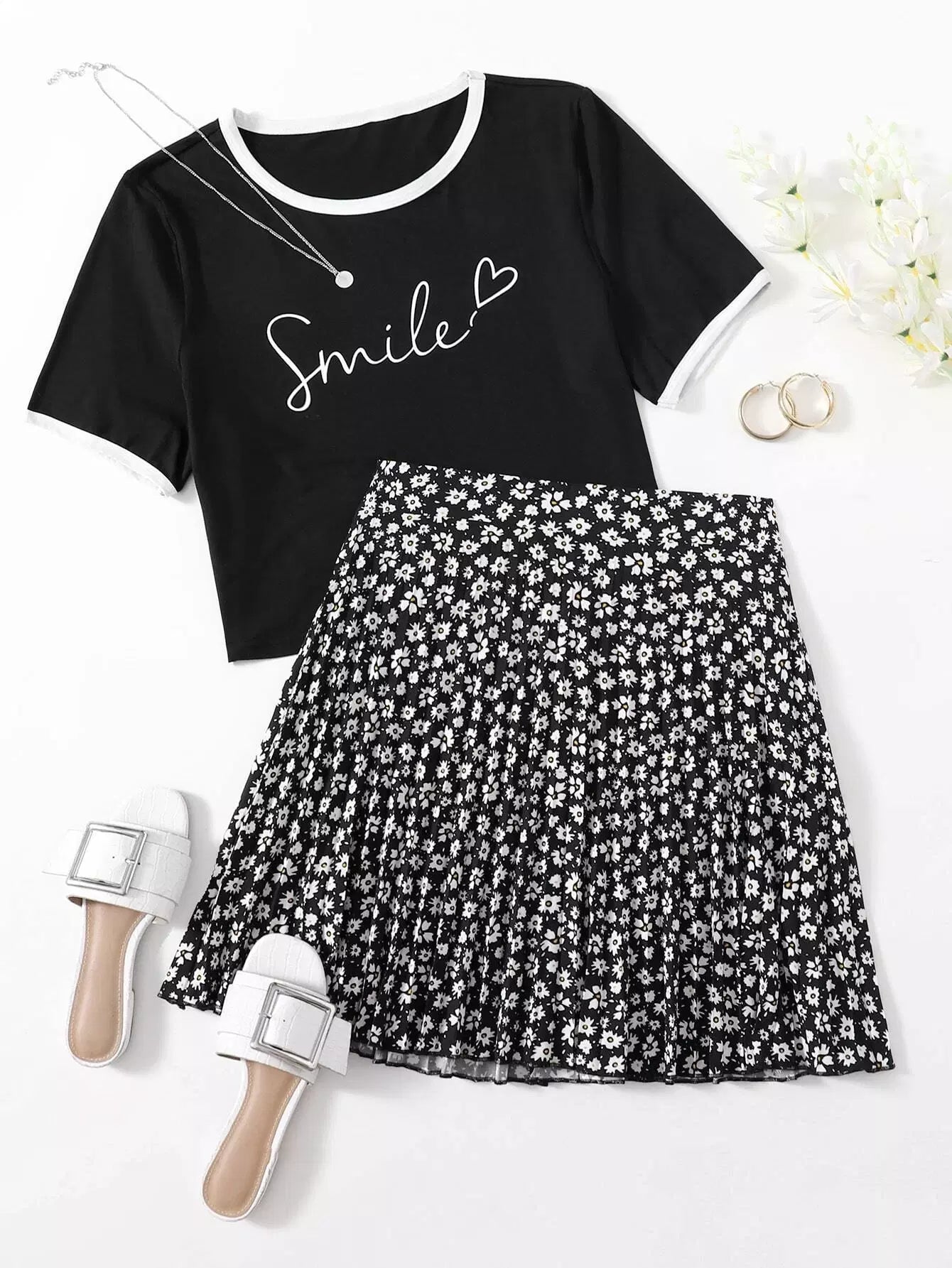 Plus Letter Graphic Tee With Ditsy Floral Skirt