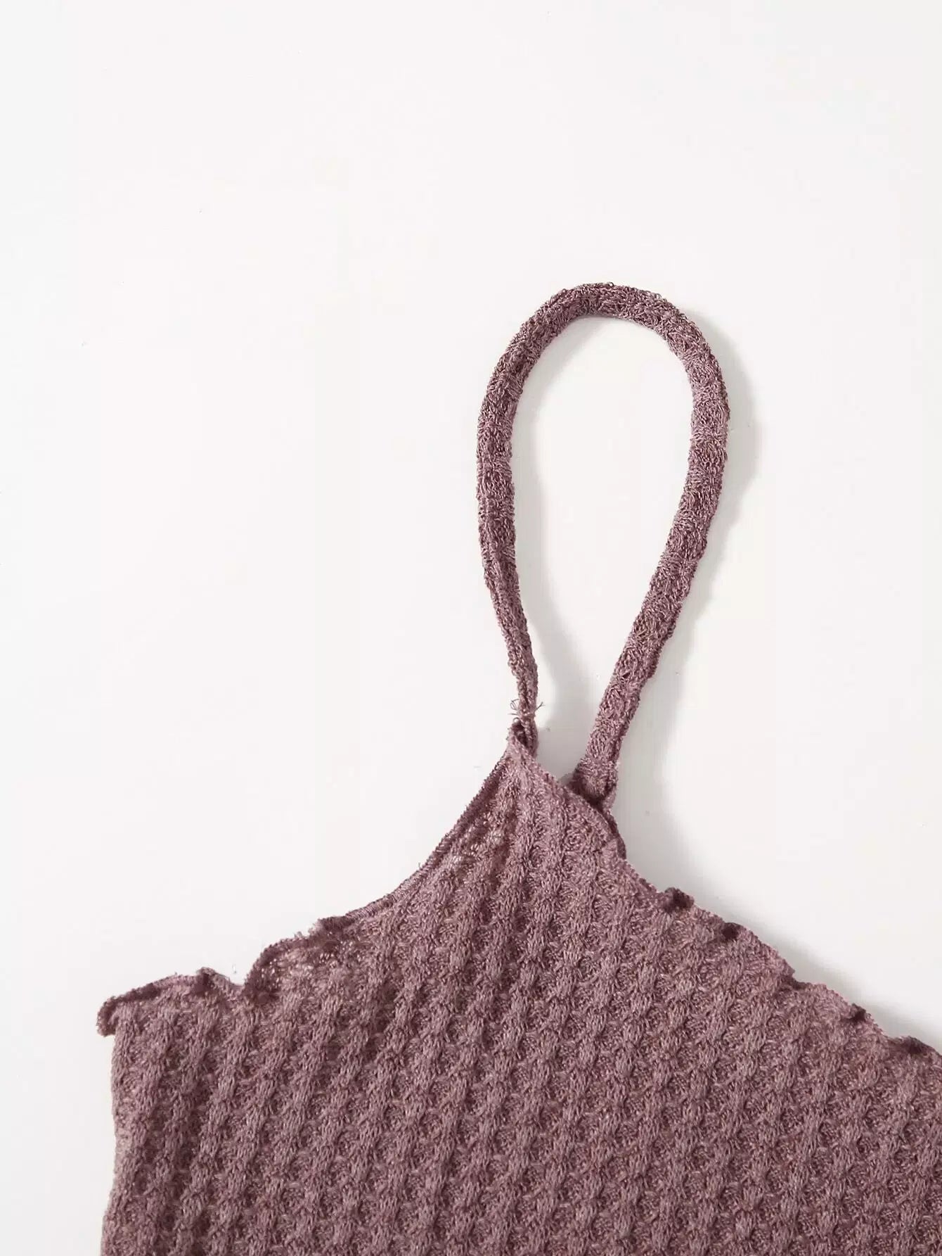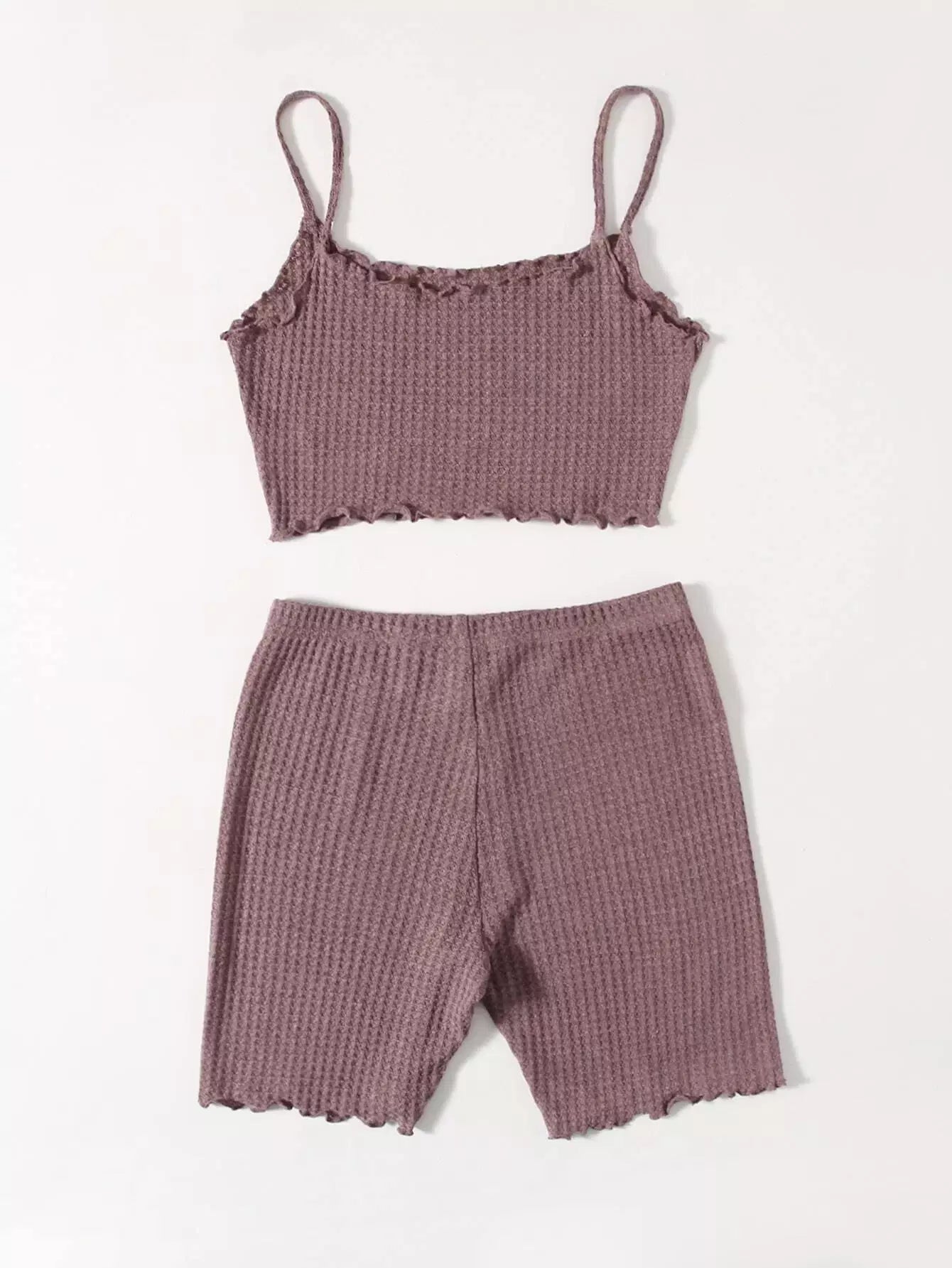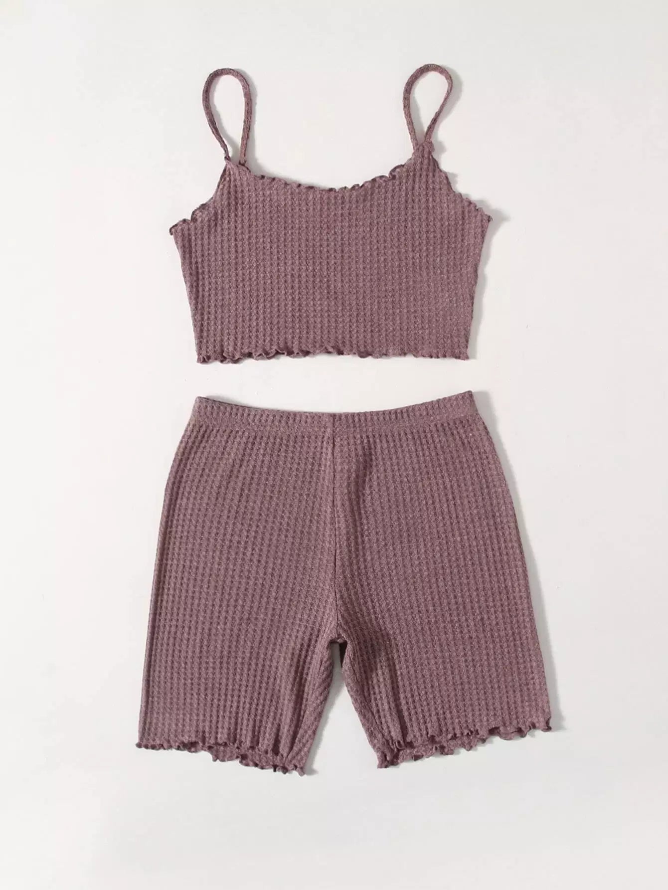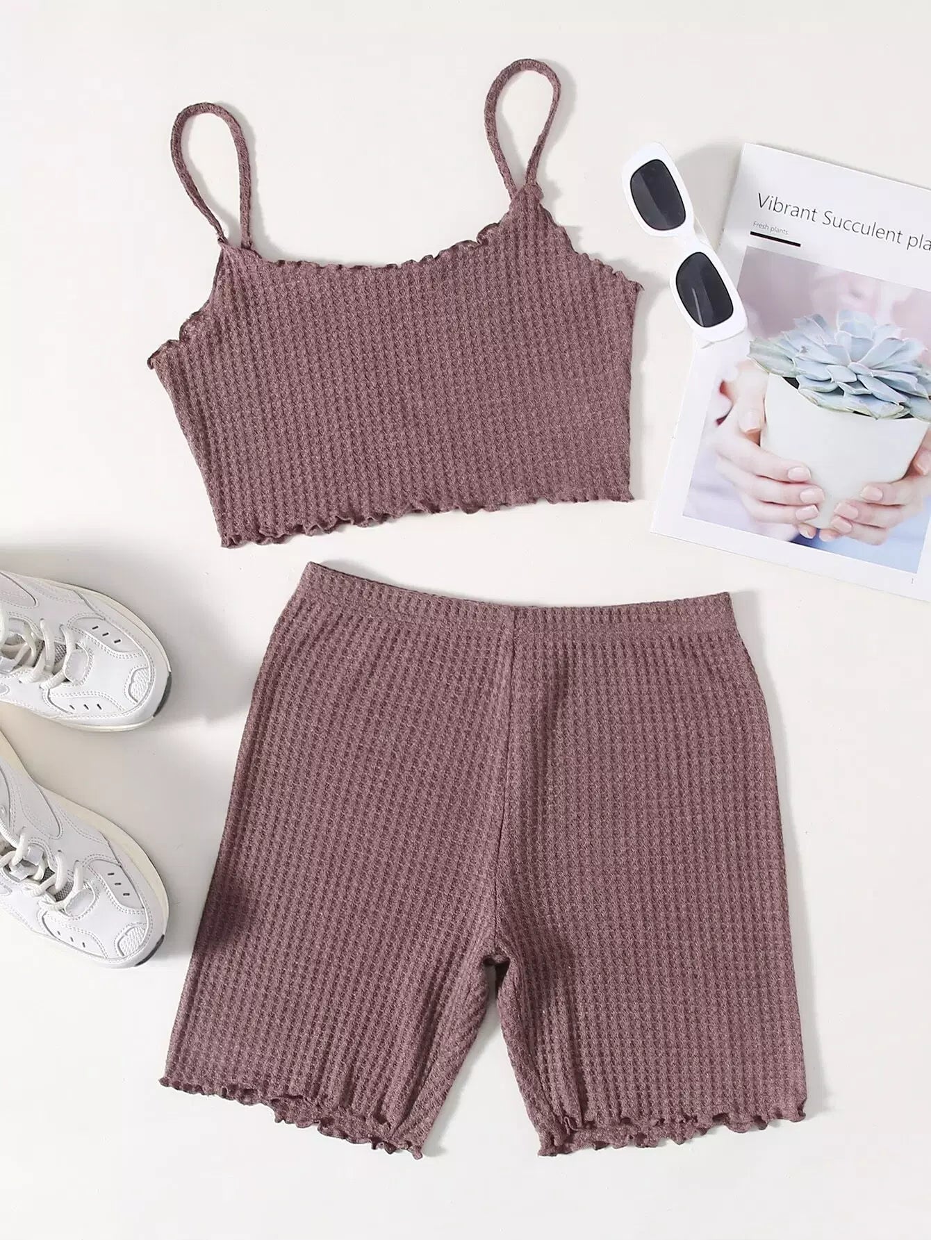 Plus Lettuce Trim Waffle Knit Crop Cami Top & Biker Shorts Set