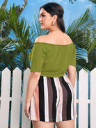 Plus Off The Shoulder Tee With Striped Print Shorts Without Belt