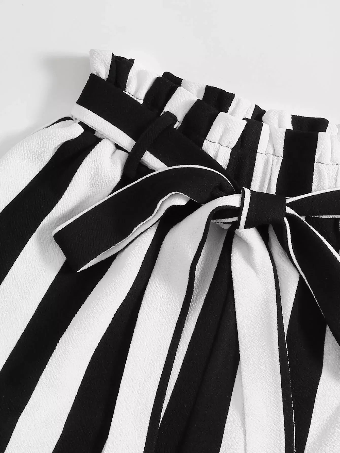 Women - Plus Solid Cami Top & Paperbag Waist Striped Shorts Set