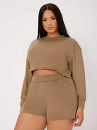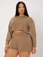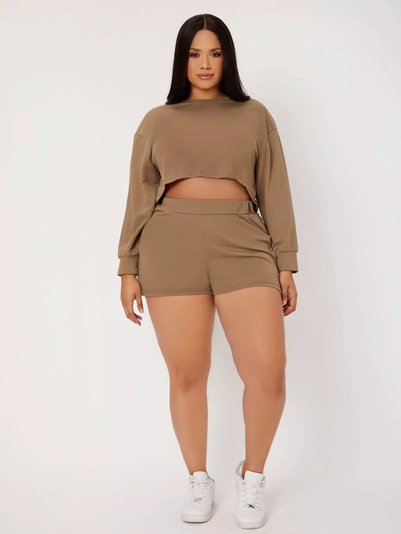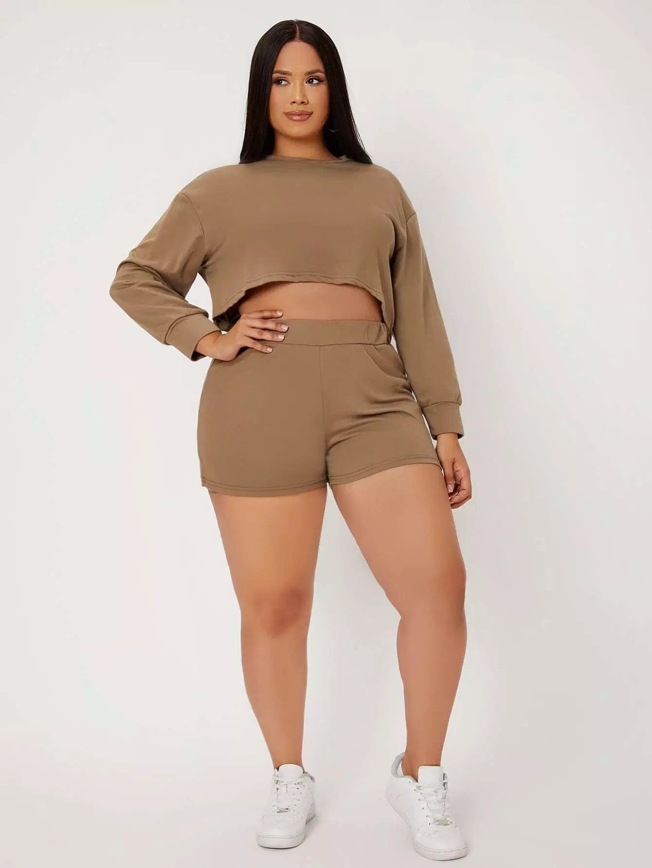 Women - Plus Solid Drop Shoulder Pullover & Shorts