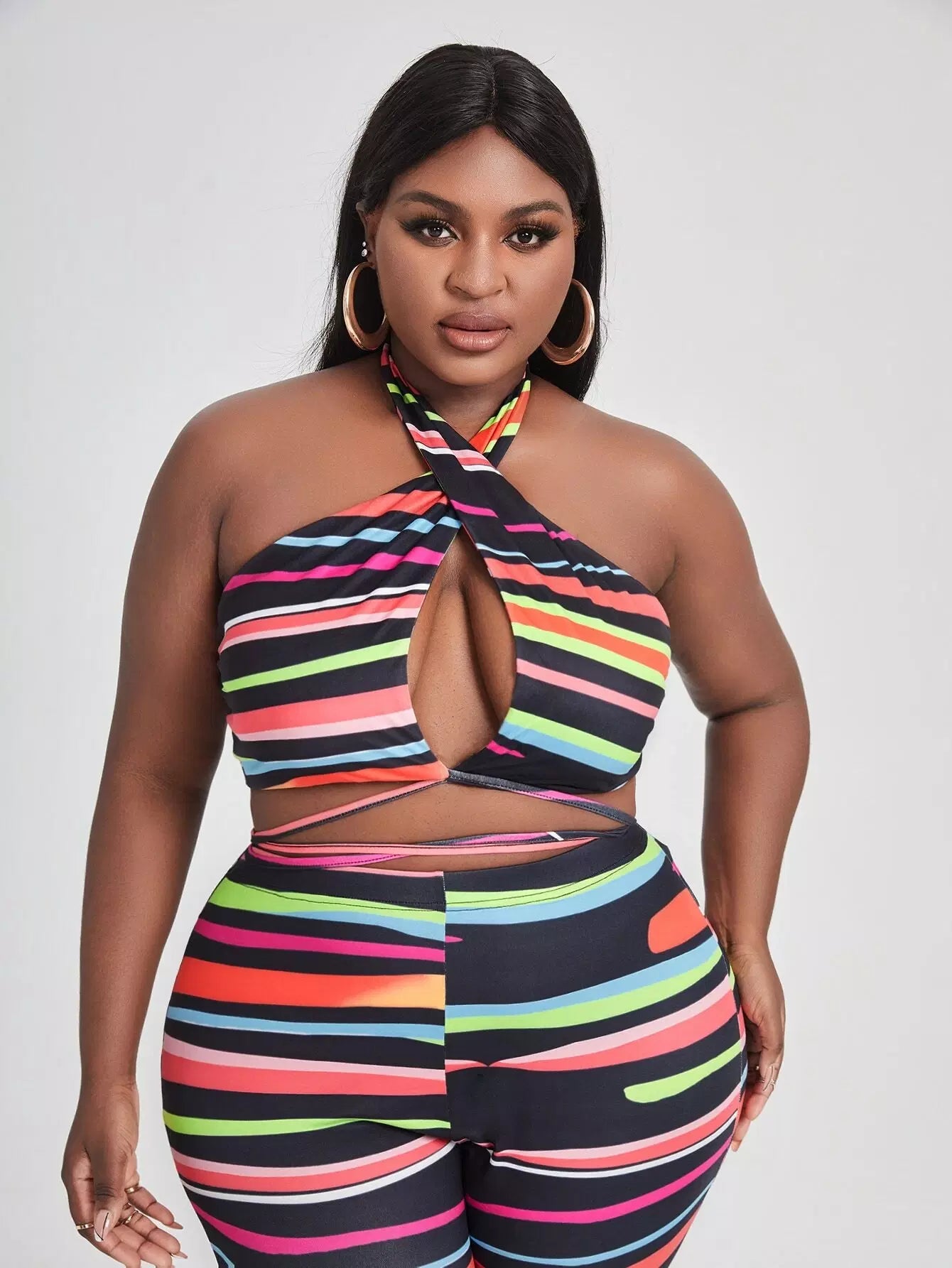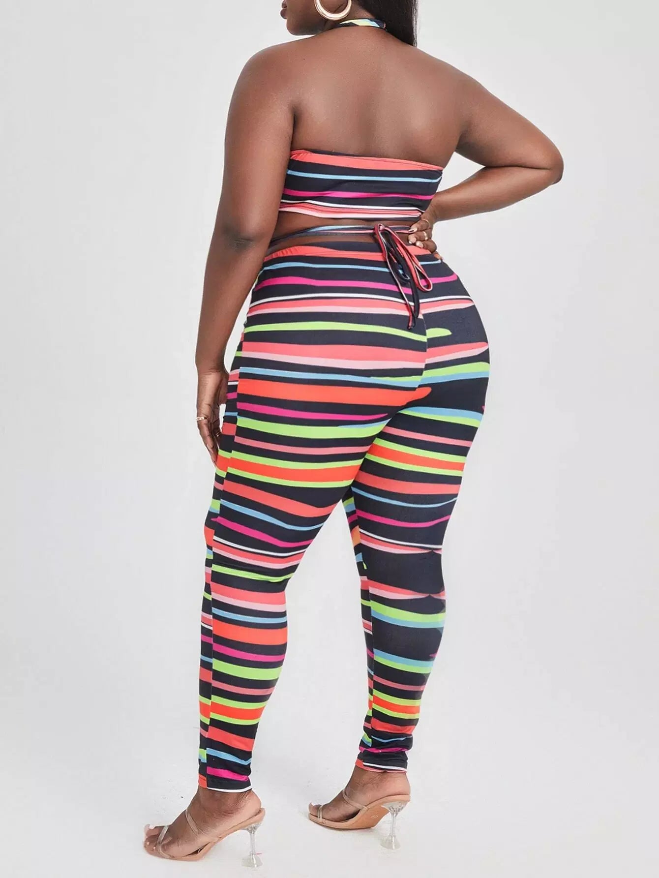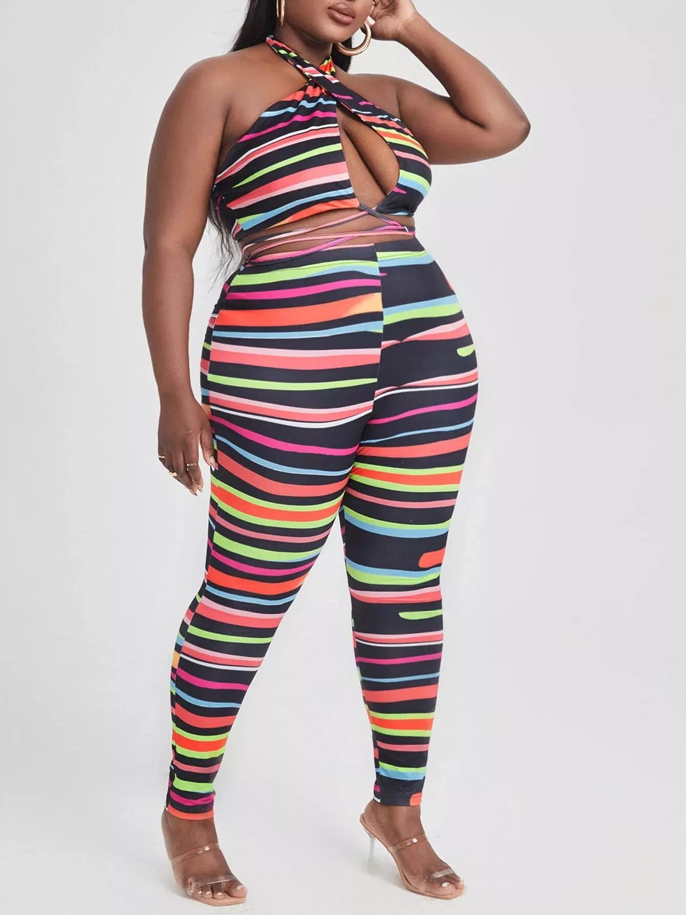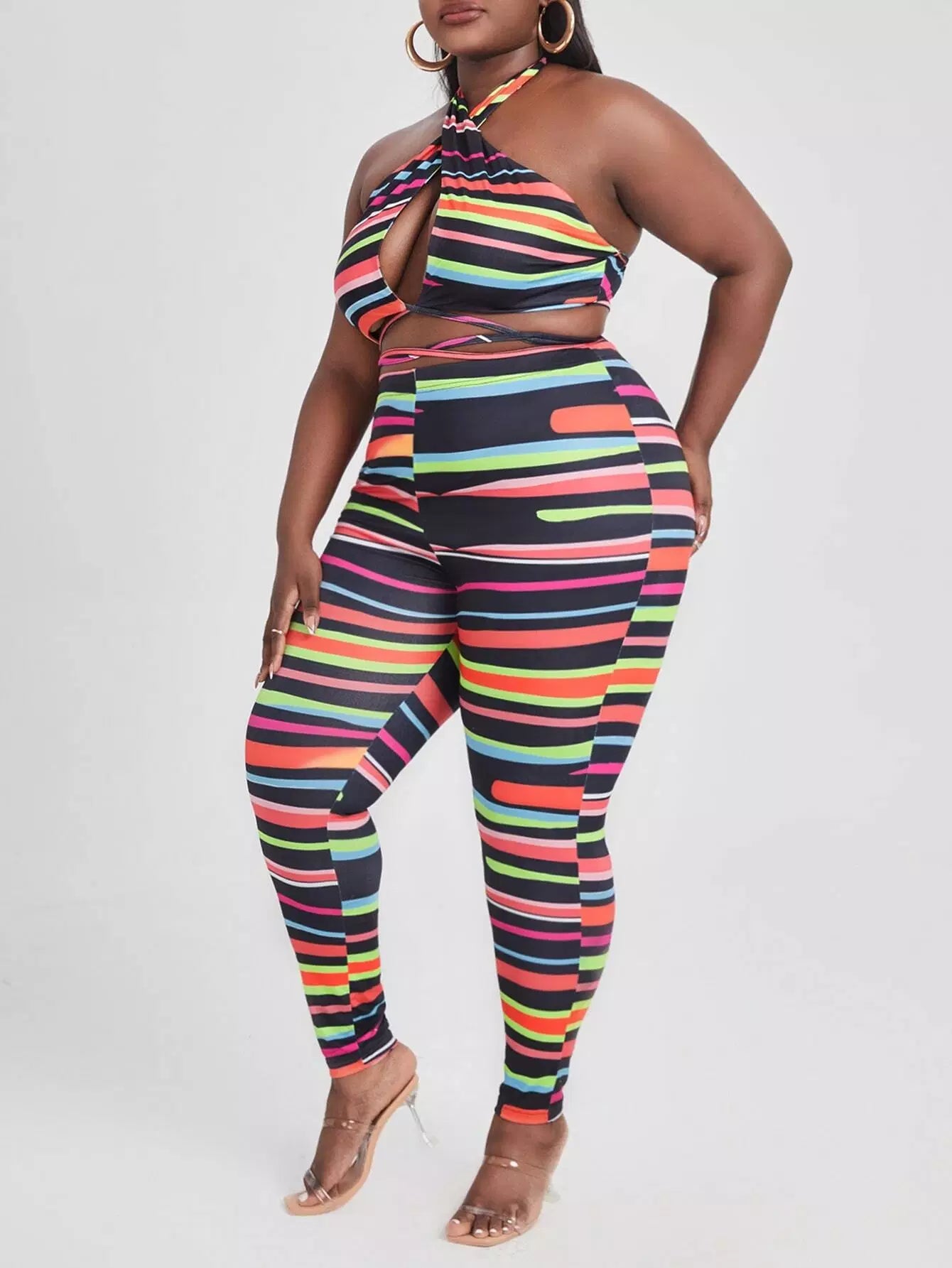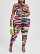 Plus Striped Crop Halter Top With Leggings