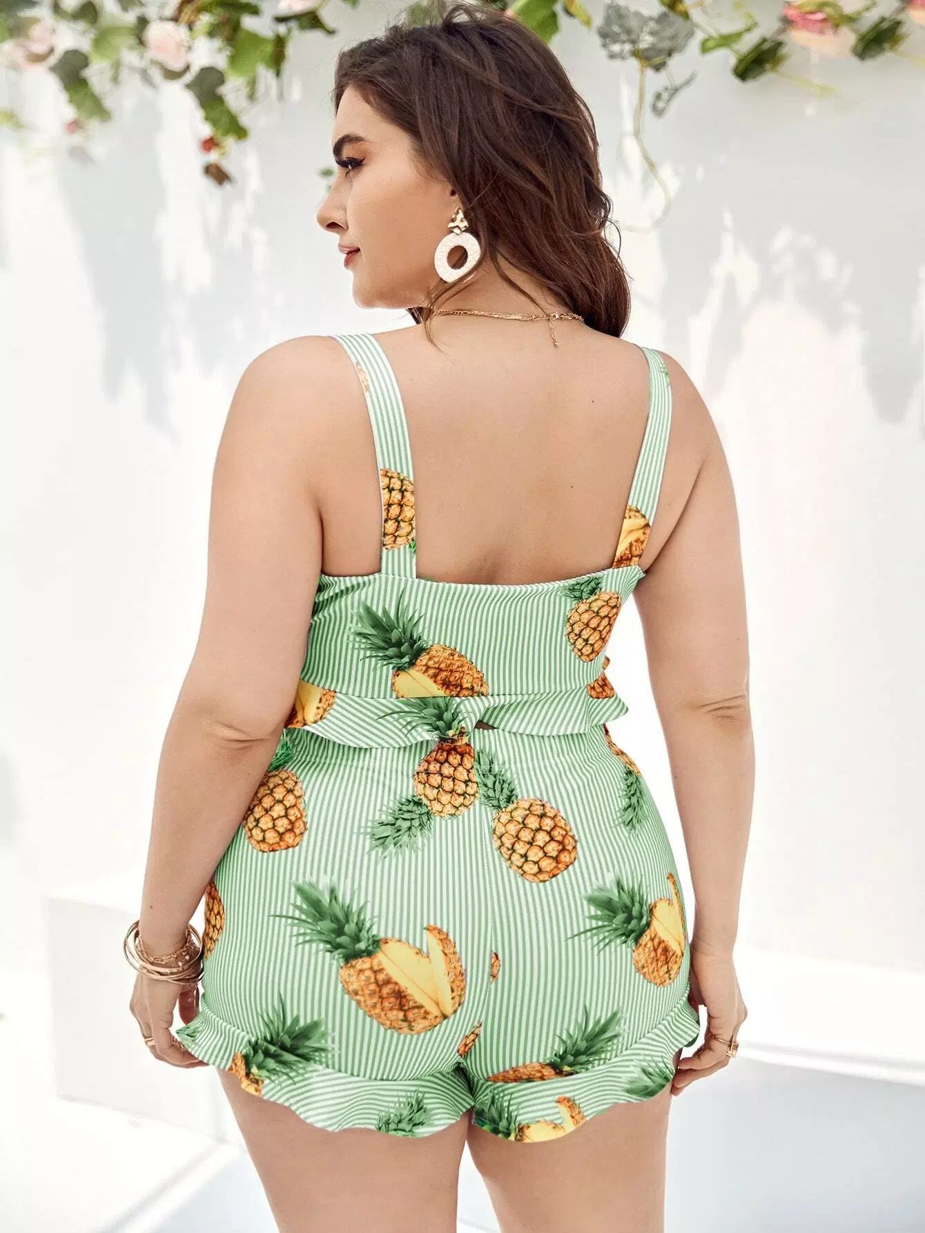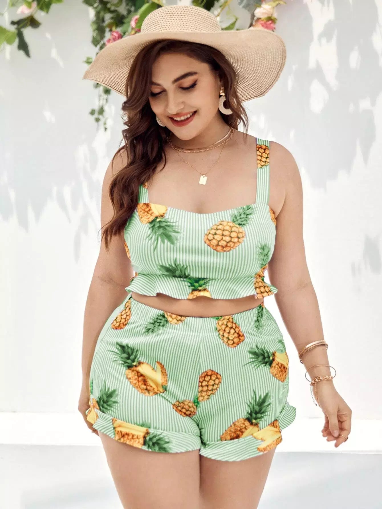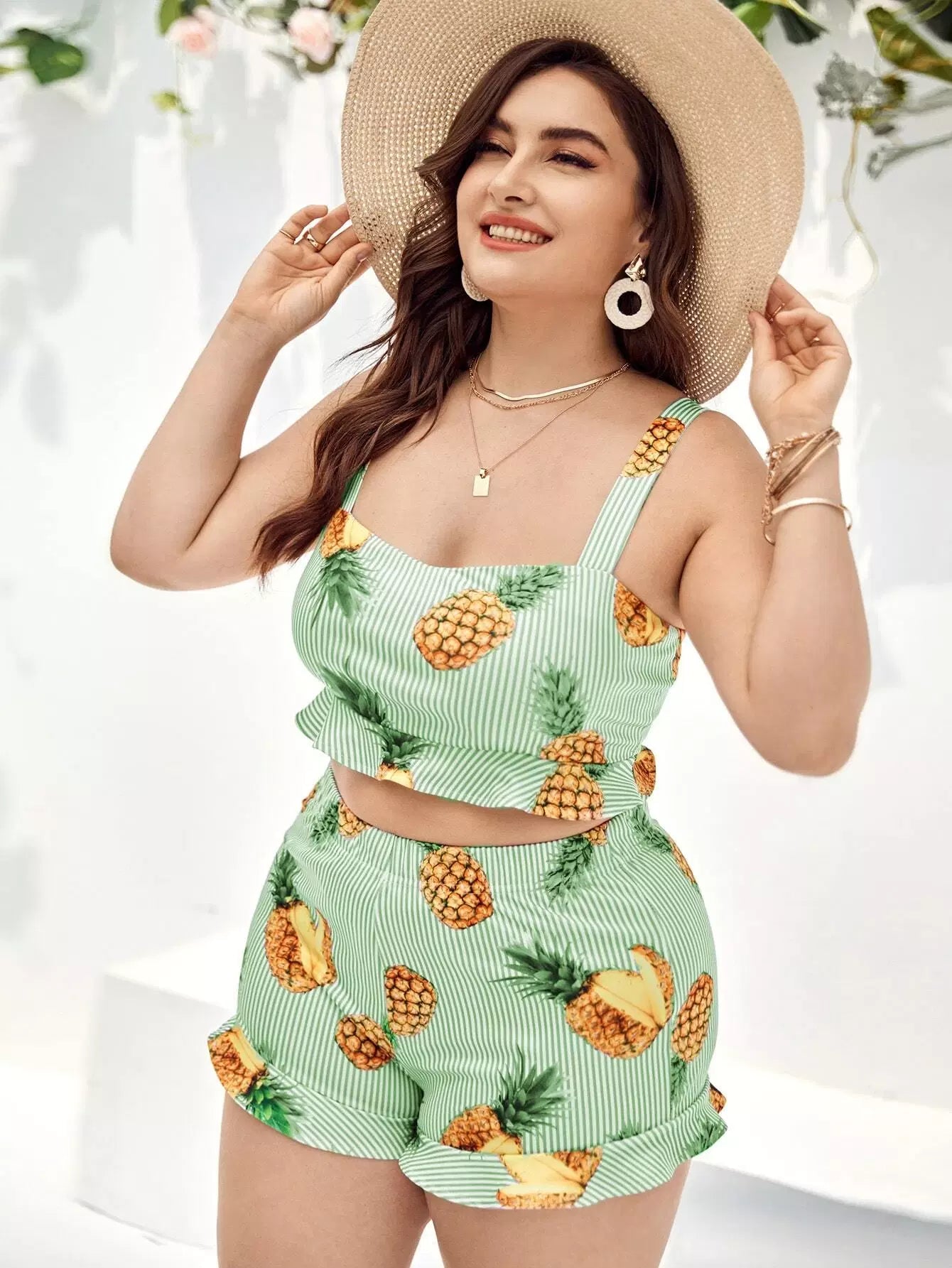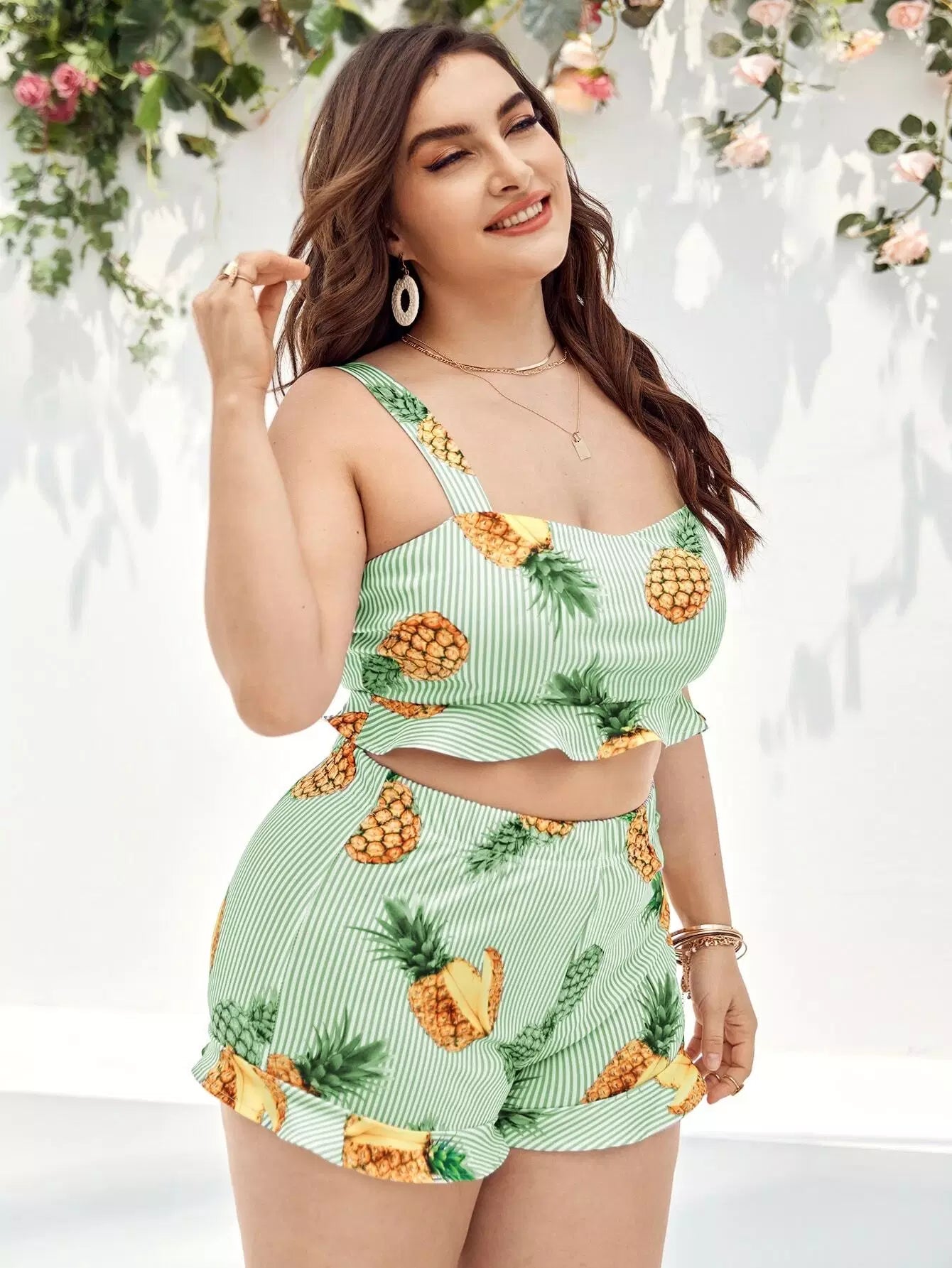 Women - Plus Striped & Pineapple Cami Top With Shorts