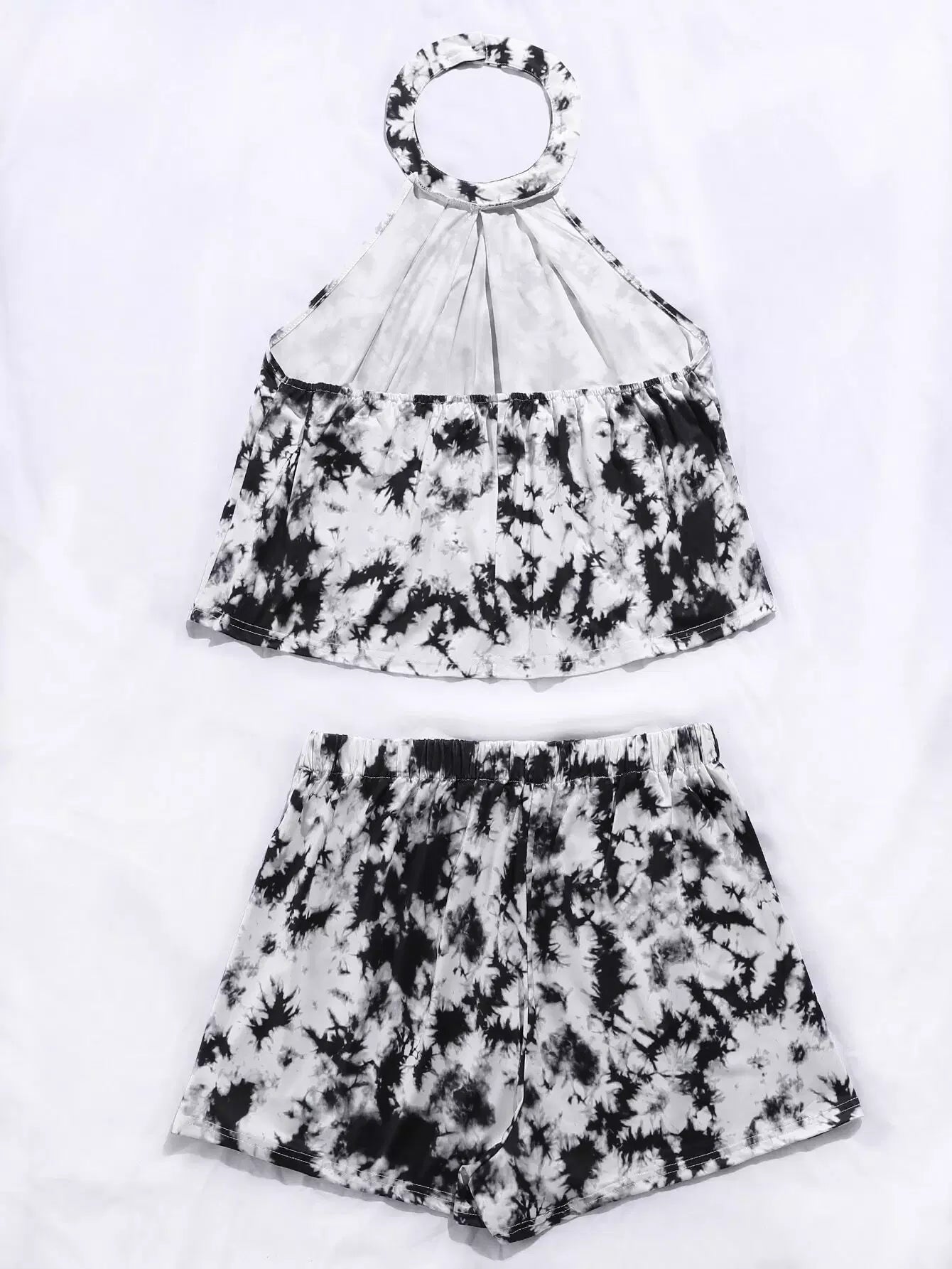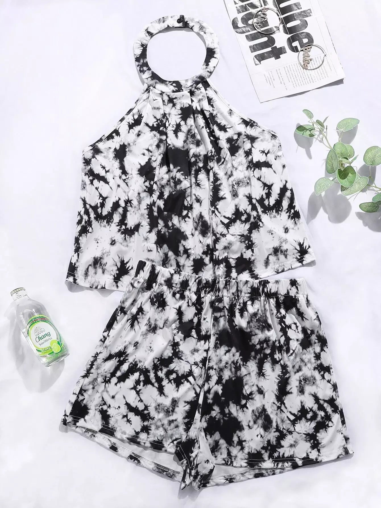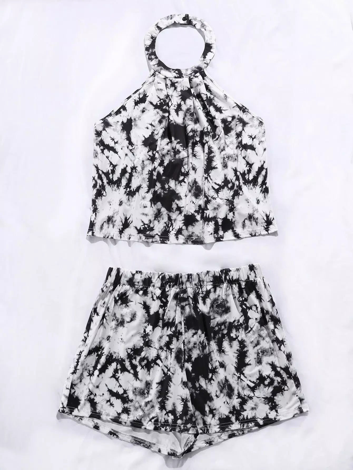 Plus Tie Dye Crop Halter Top With Track Shorts