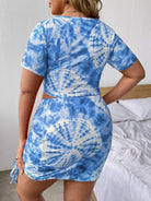 Plus Tie Dye Drawstring Top & Bodycon Skirt