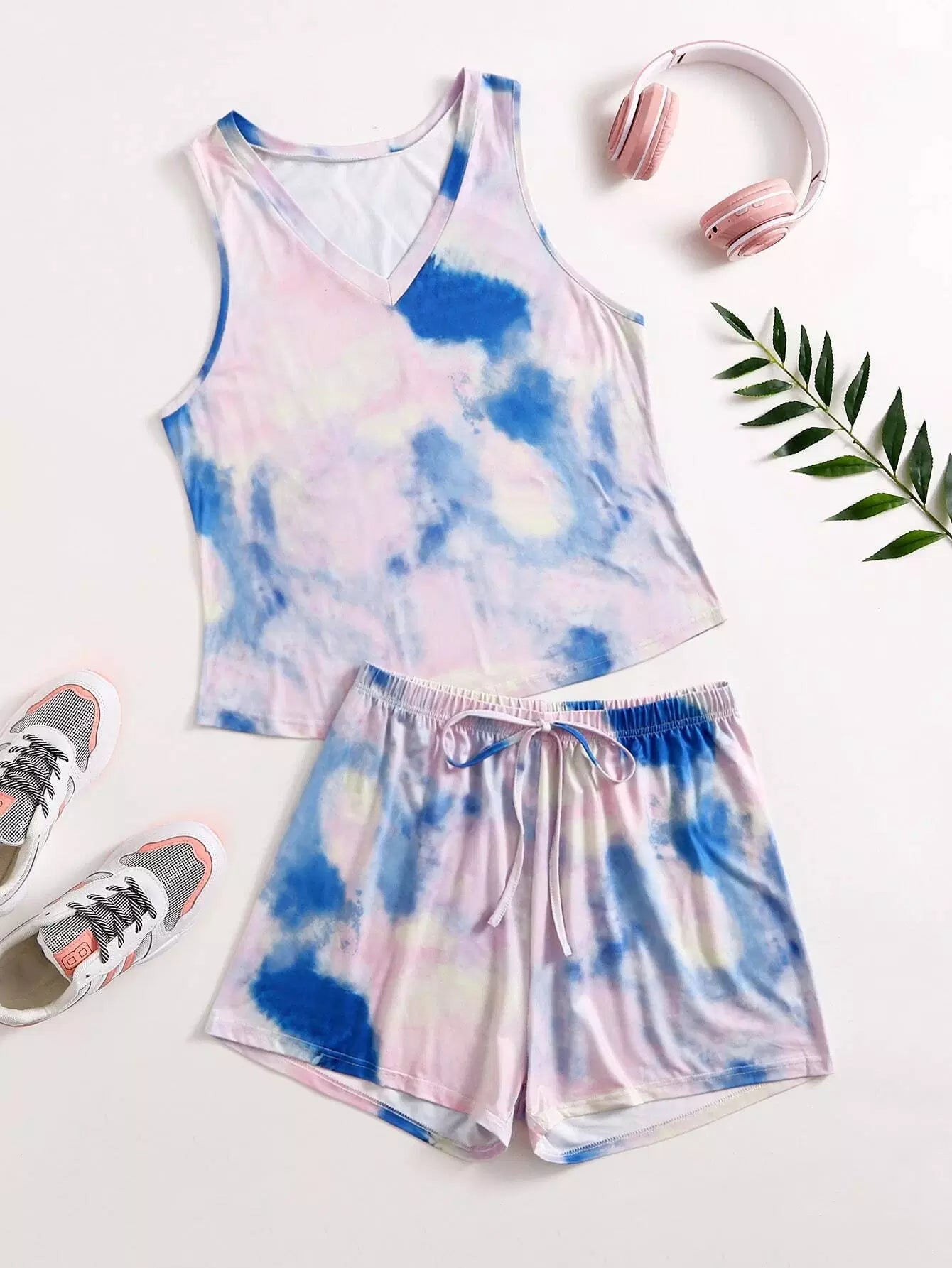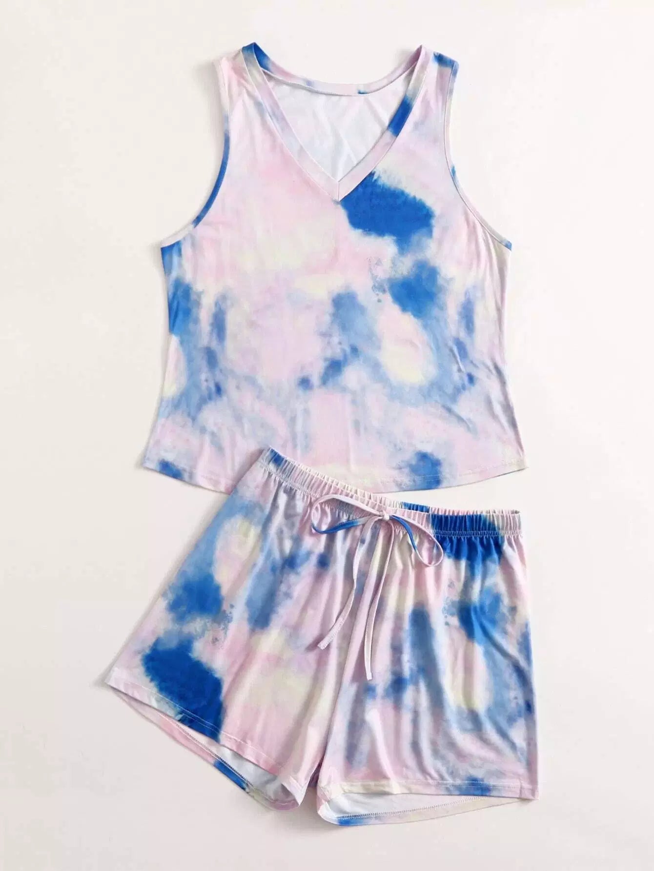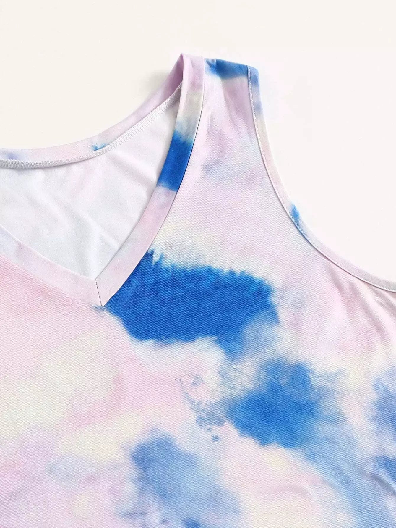 Plus Tie Dye V-neck Tank Top & Shorts