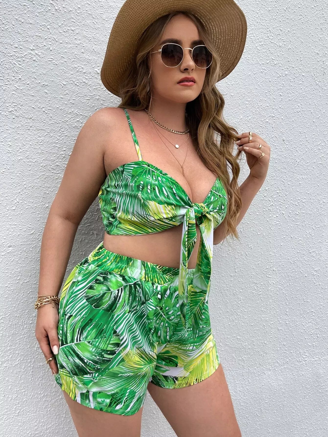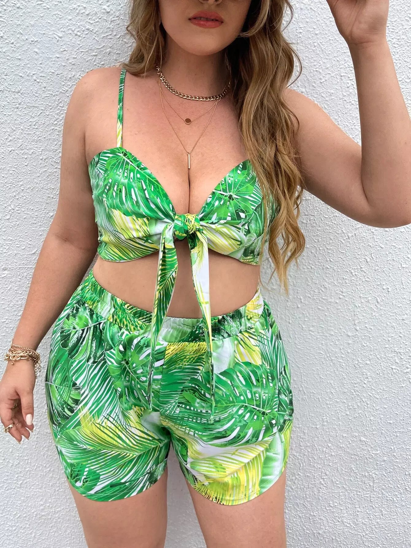 Women - Plus Tropical Print Knot Cami Top With Shorts