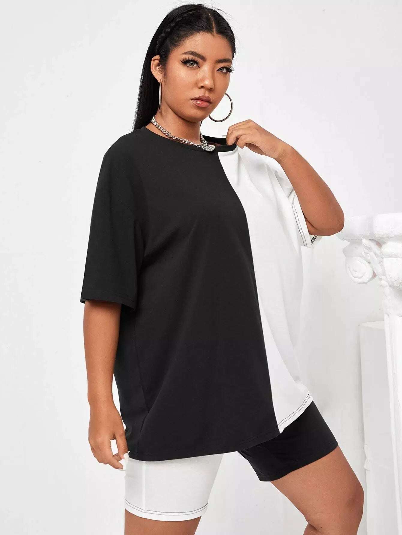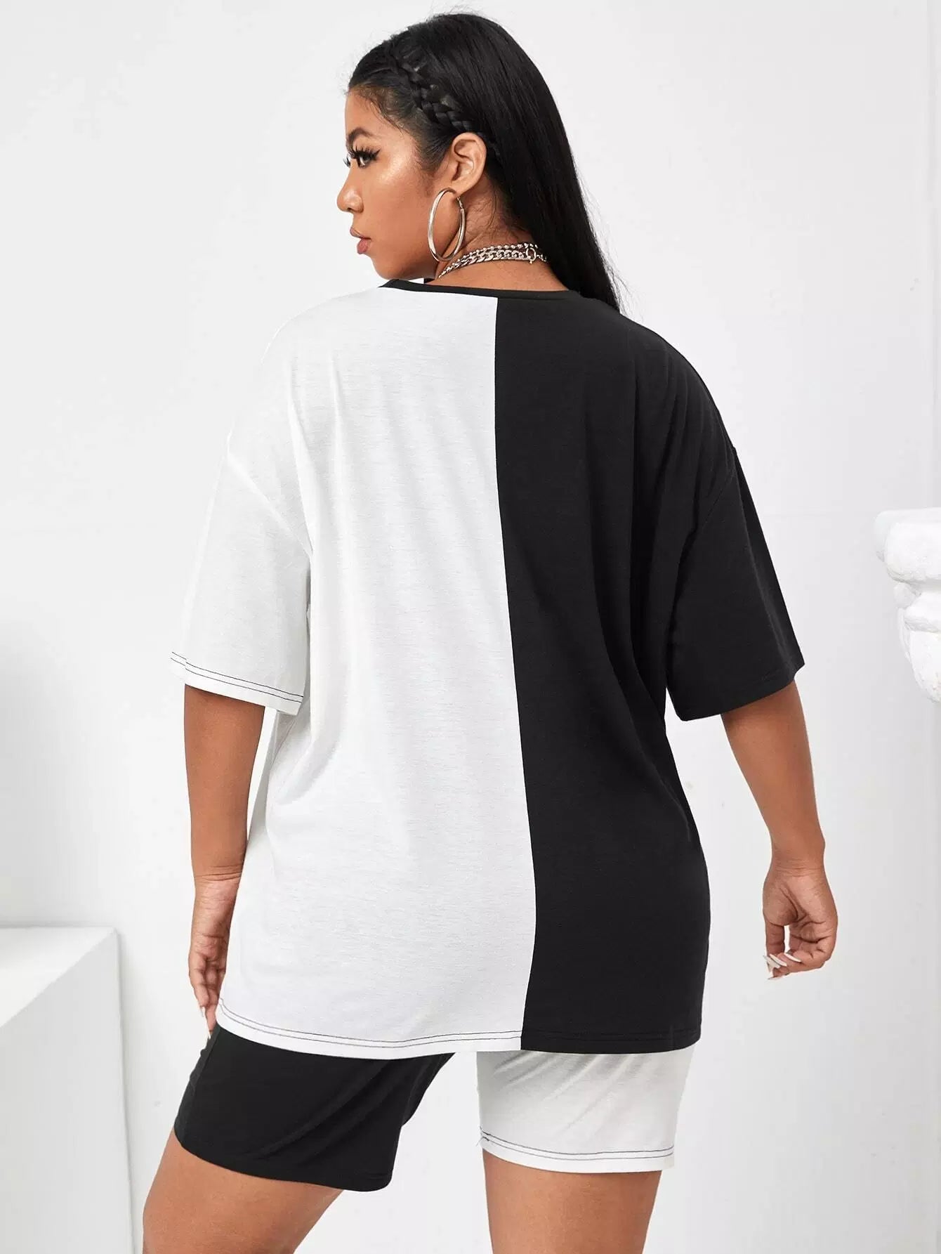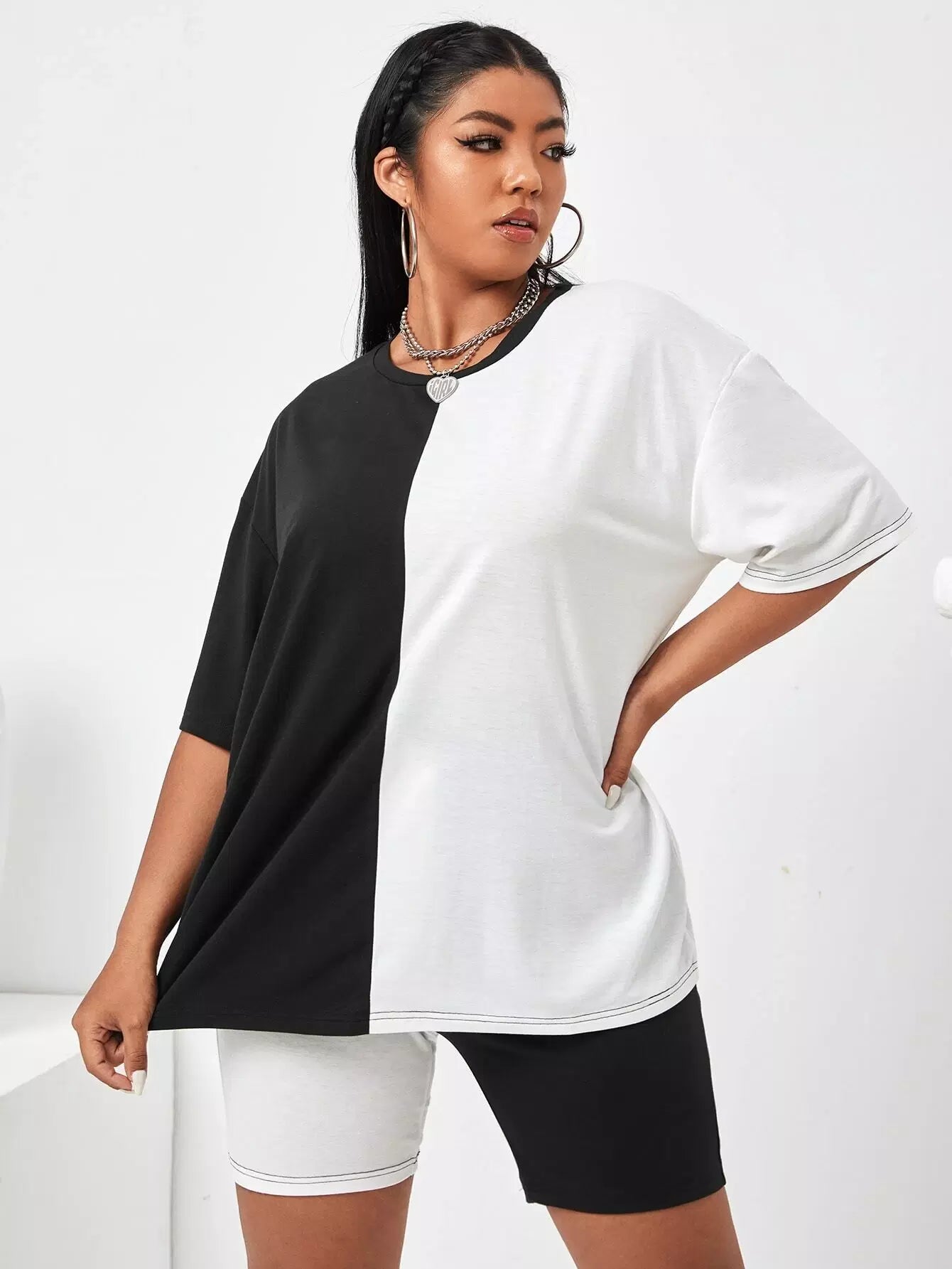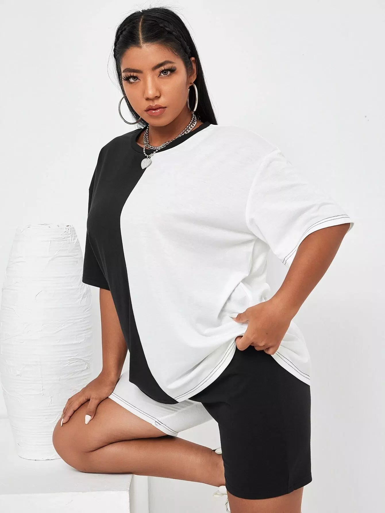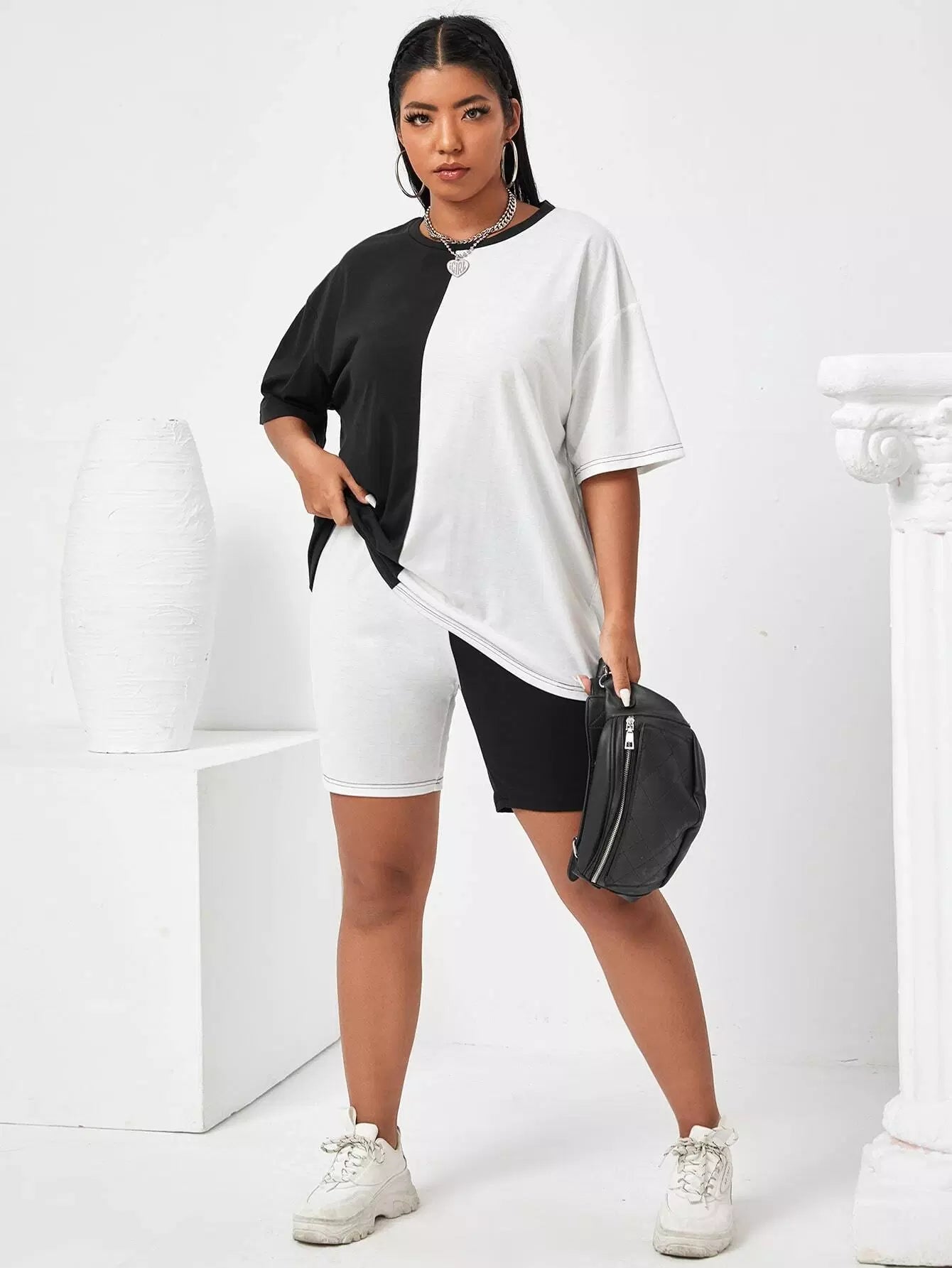 Plus Two Tone Drop Shoulder Tee With Biker Shorts