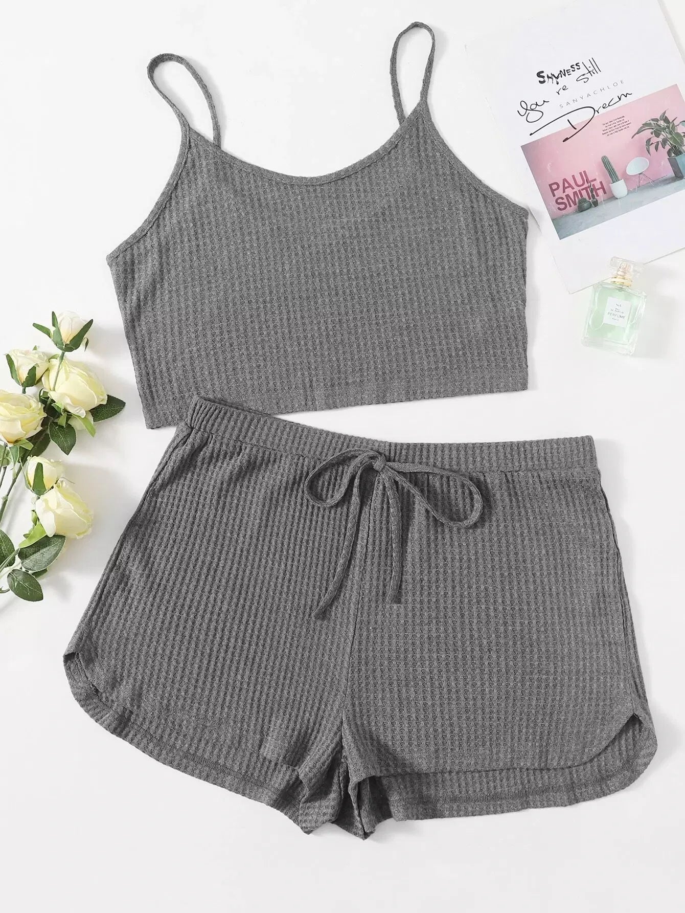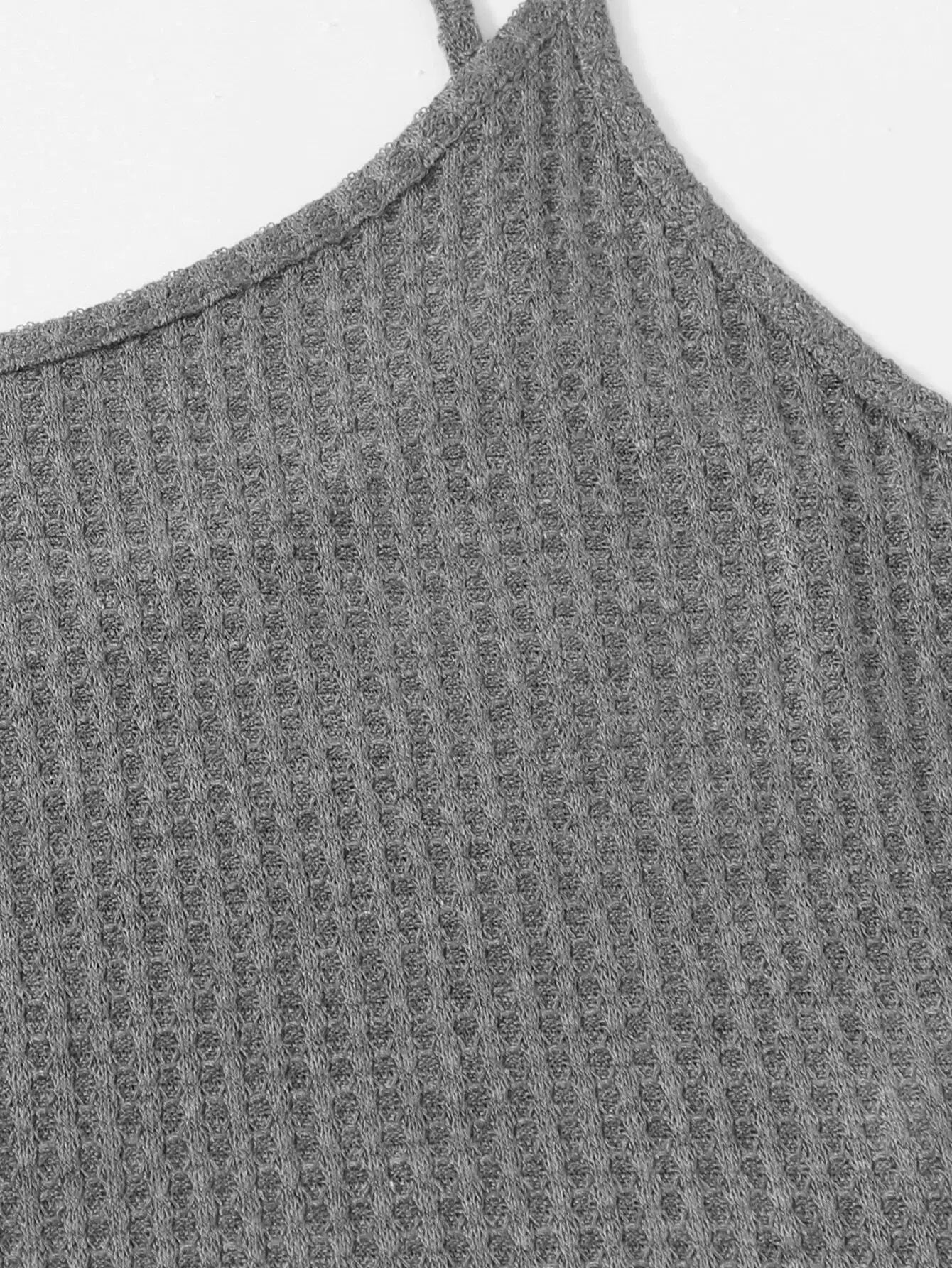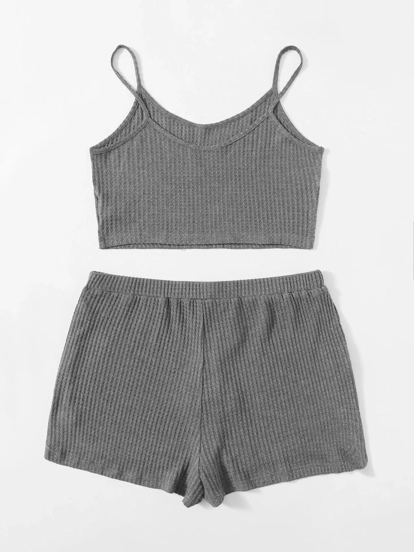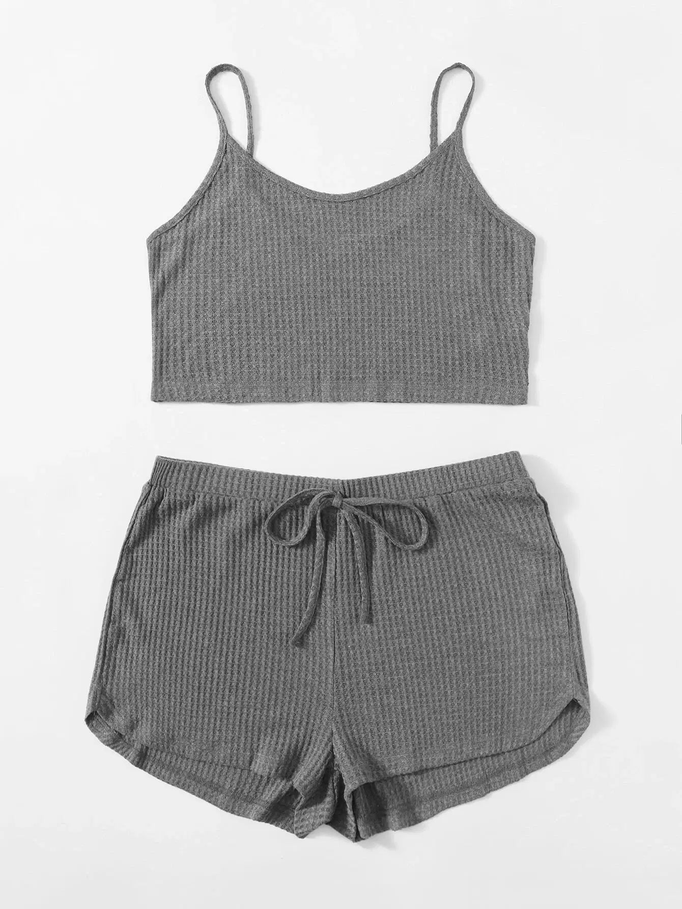 Plus Waffle Knit Cami Top & Knot Front Shorts Set