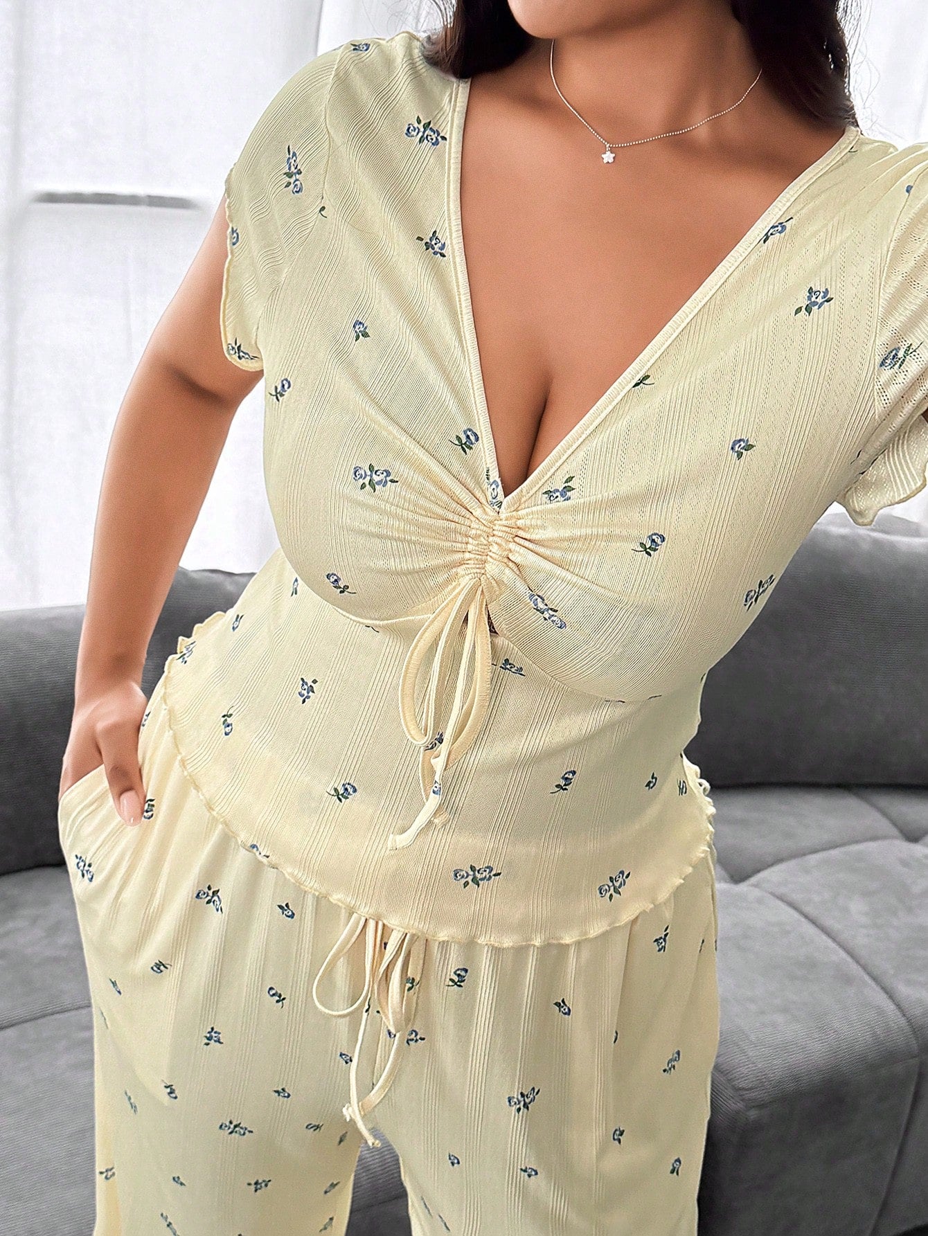 women SHEIN MOOSTA Plus Size Women Floral Print Comfy Casual 2 Pieces Set
