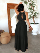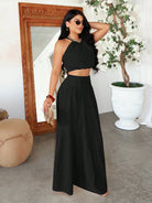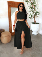 SXY Plus Size Women Beach Vacation Tie Neck Ruffle Trim Tank Top And Wrap Long Skirt Set