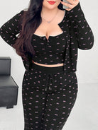Vibekara Plus Size Women's 3-Piece Set Bow & Floral Print Casual Fitted Top, Autumn/Spring