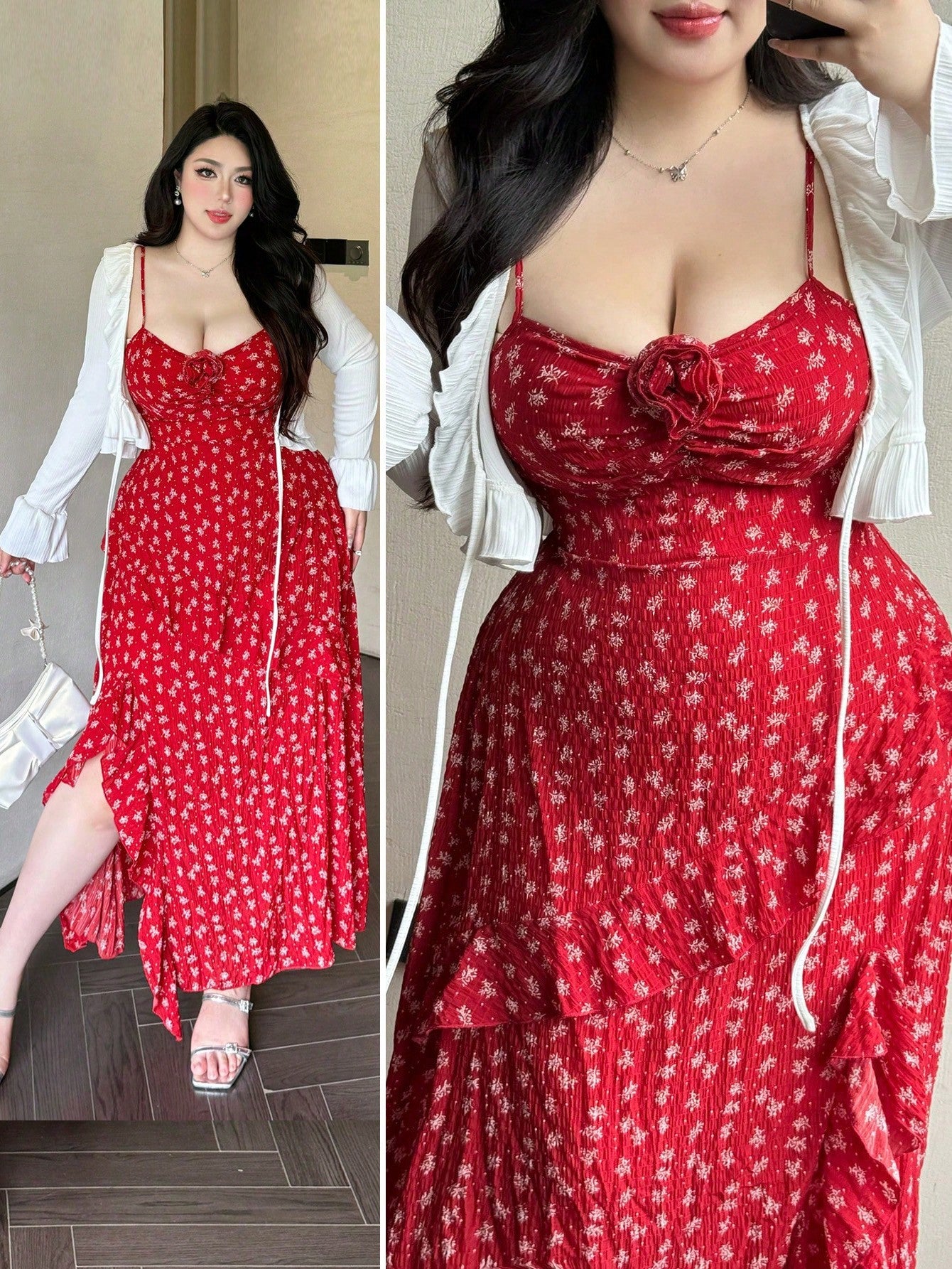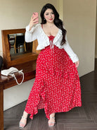Vibekara Red Spaghetti Strap Maxi Dress For Women, New Arrivals Summer, French Elegant Cinched Waist,