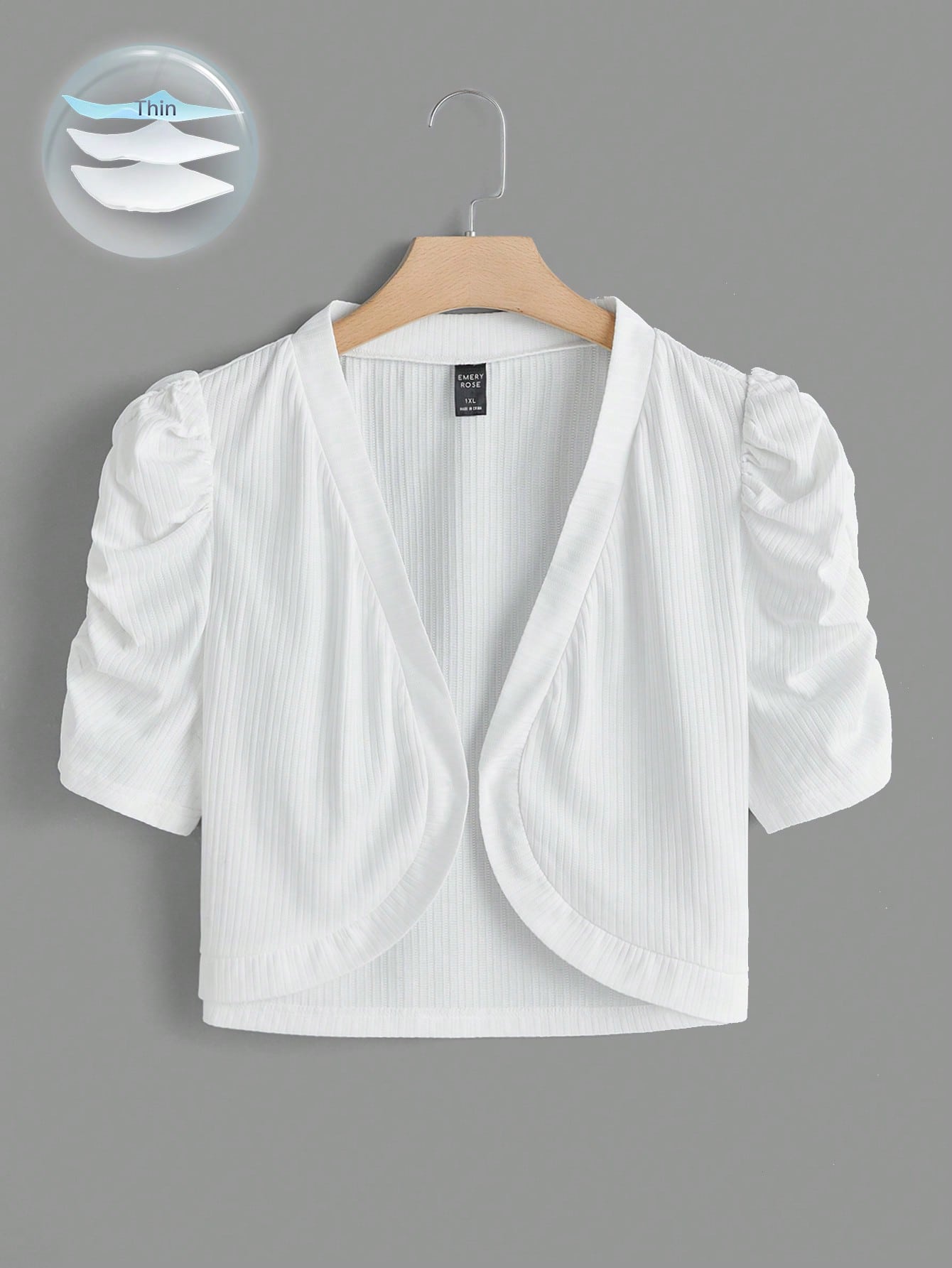 Clasi Plus Puff Sleeve Open Front Crop Jacket Winter Fall Autumn