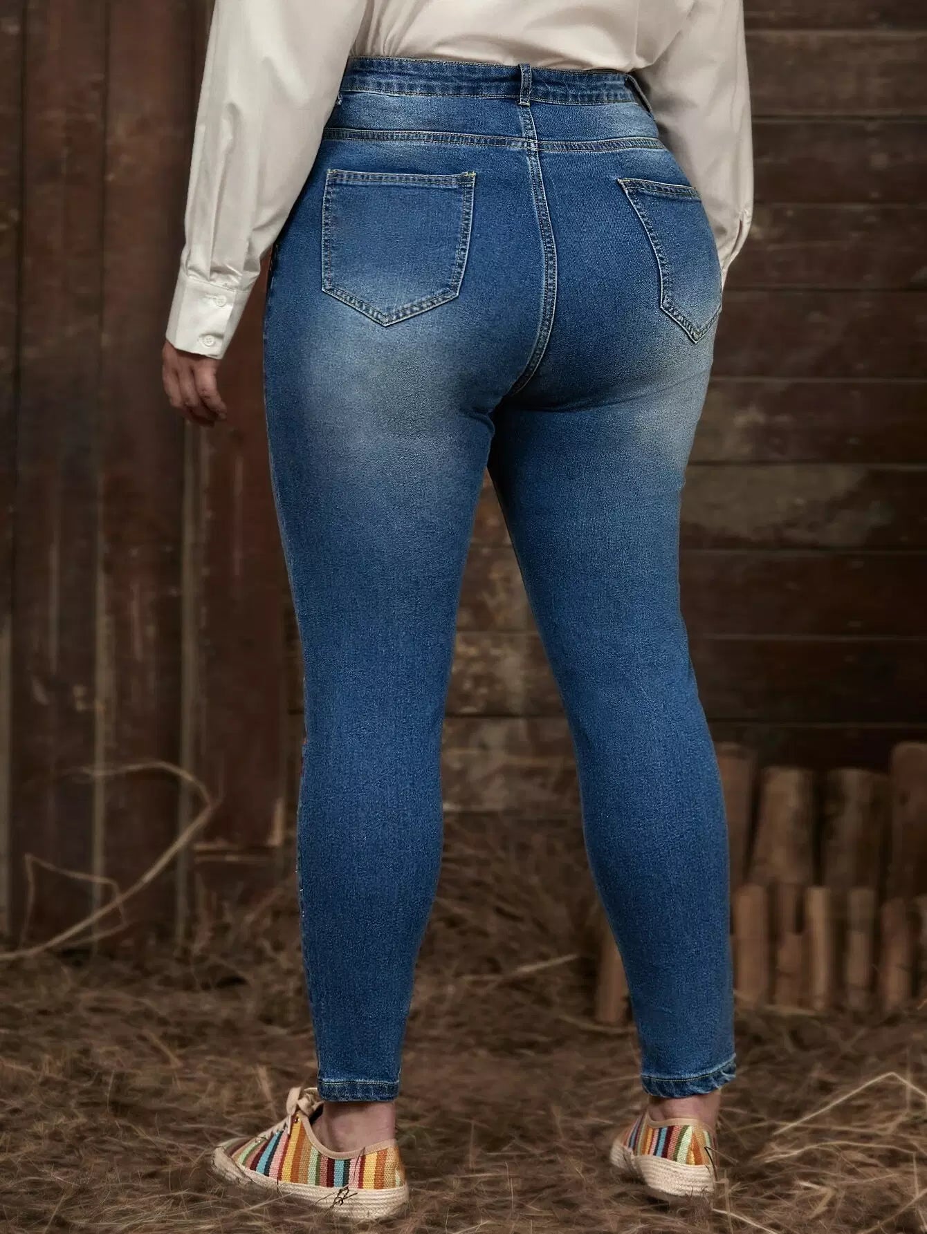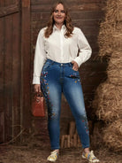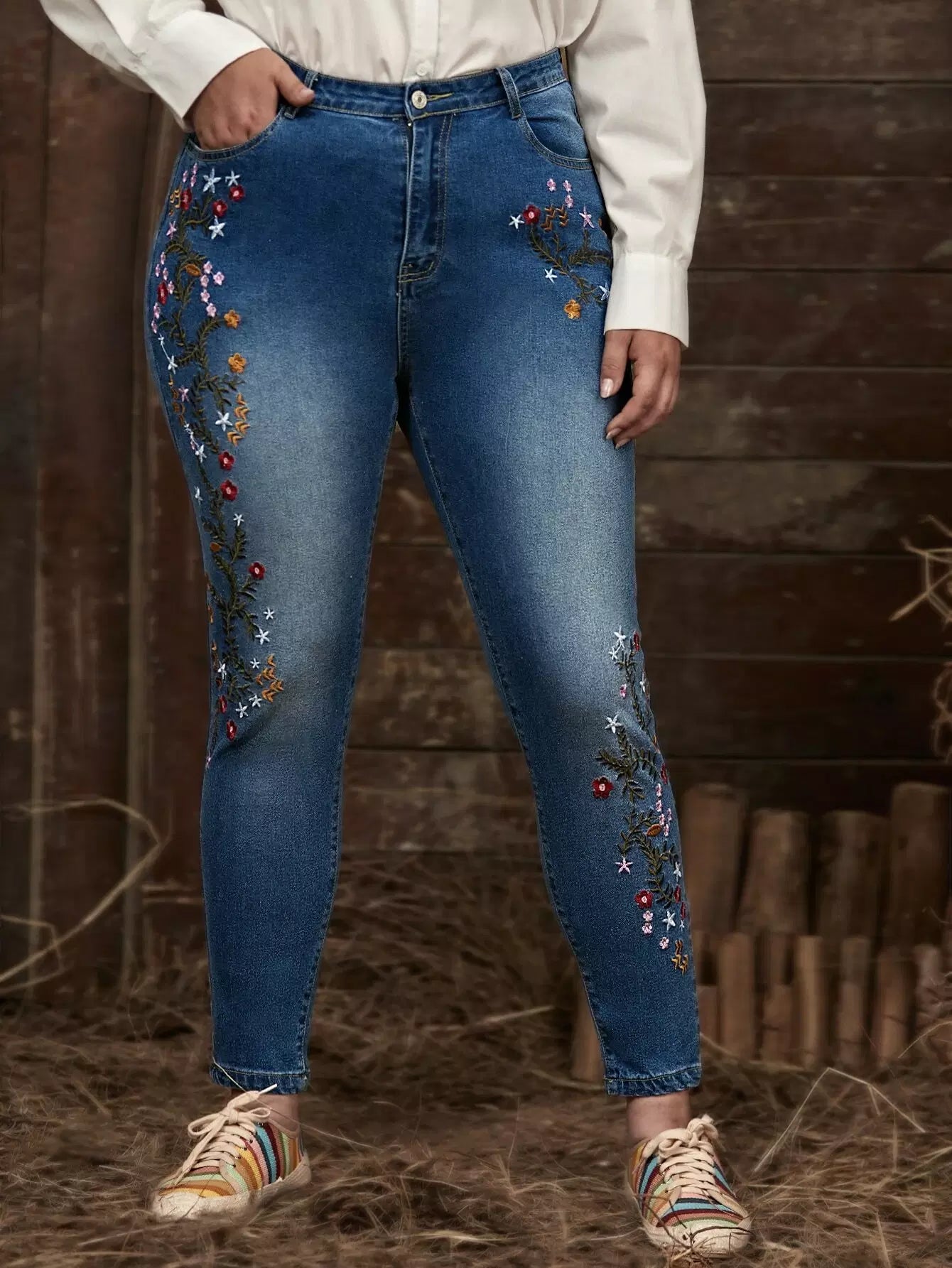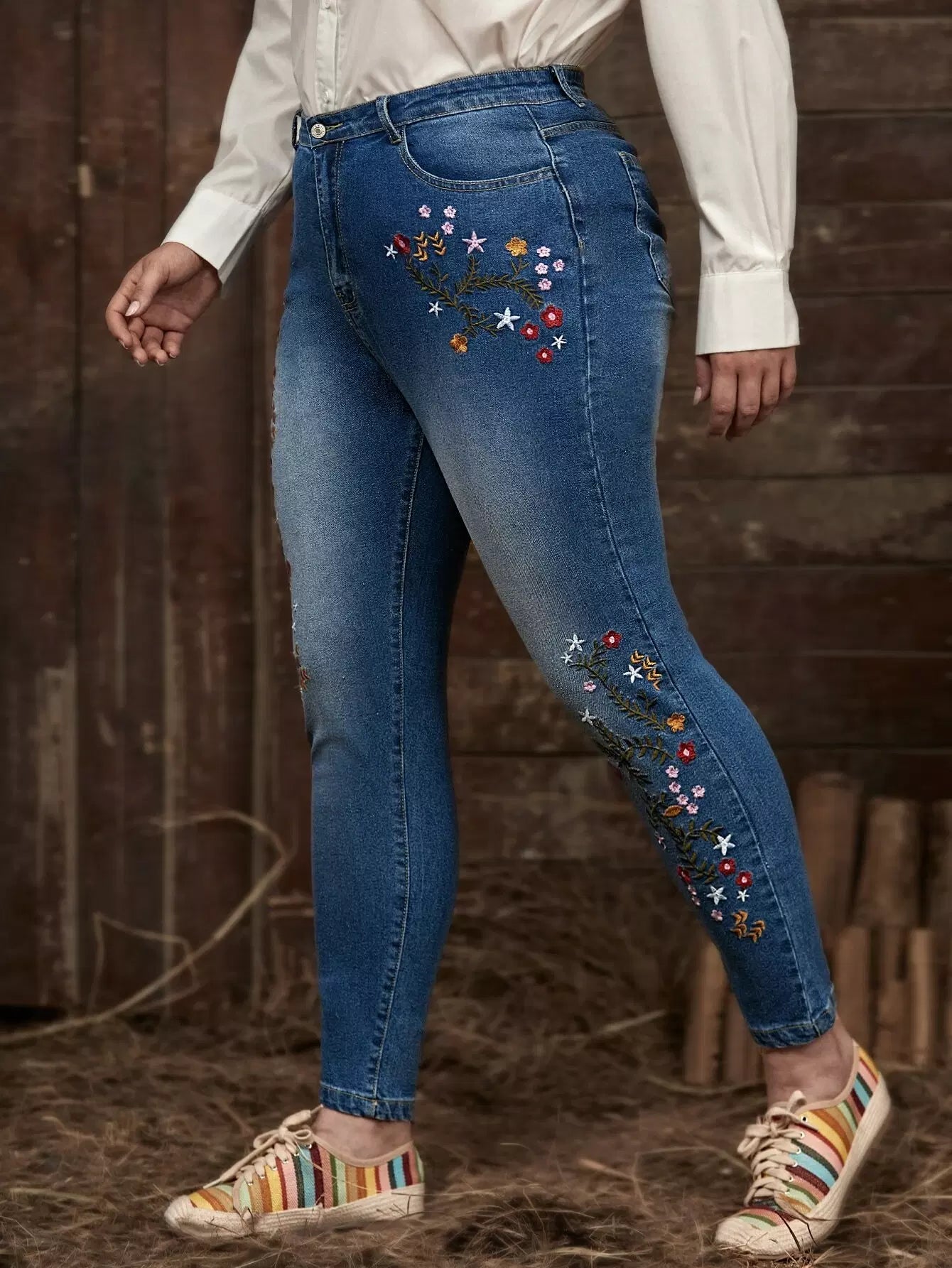 Plus Ditsy Floral Embroidery Skinny Jeans