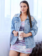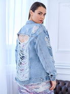 Plus Drop Shoulder Ripped Flap Pocket Denim Jacket