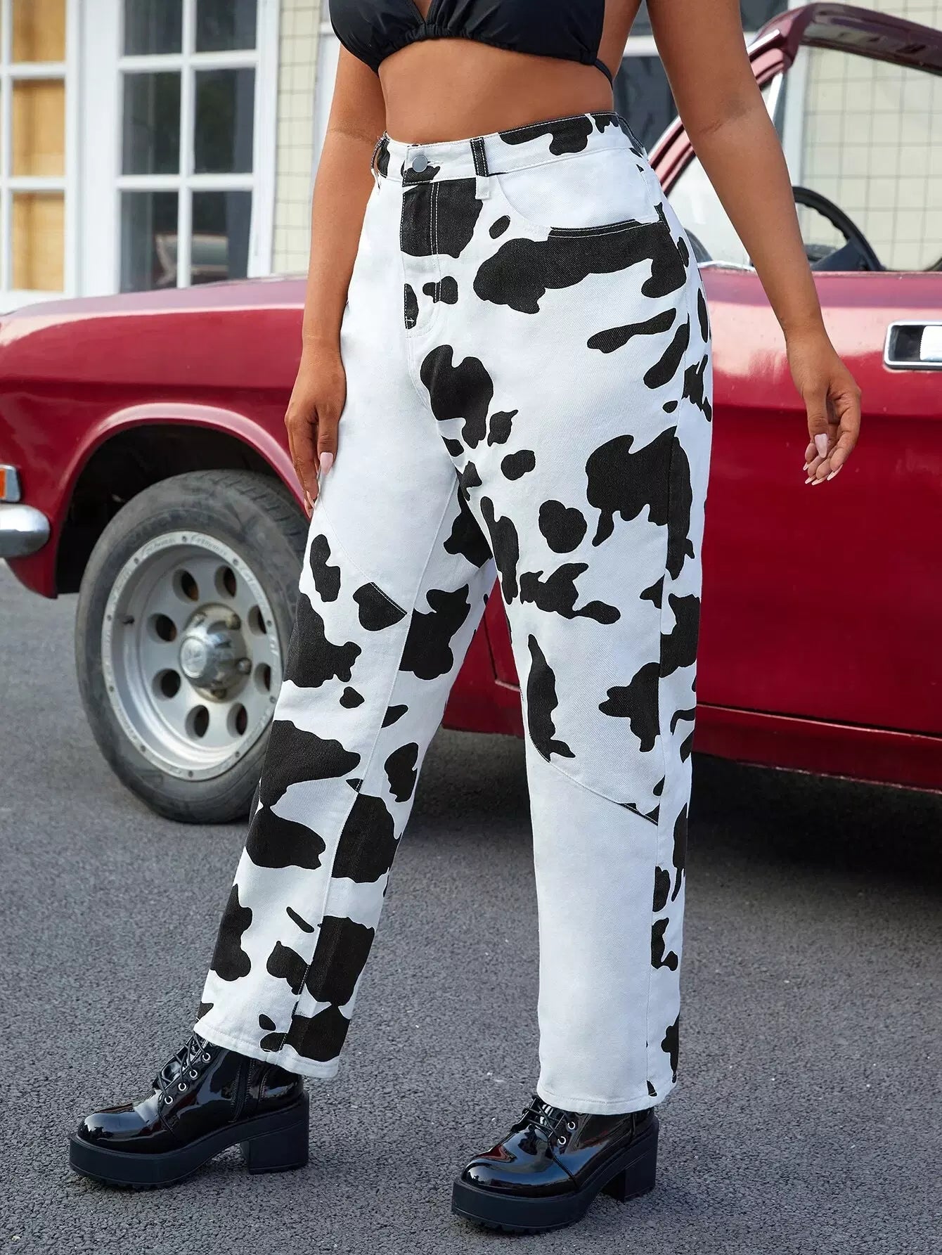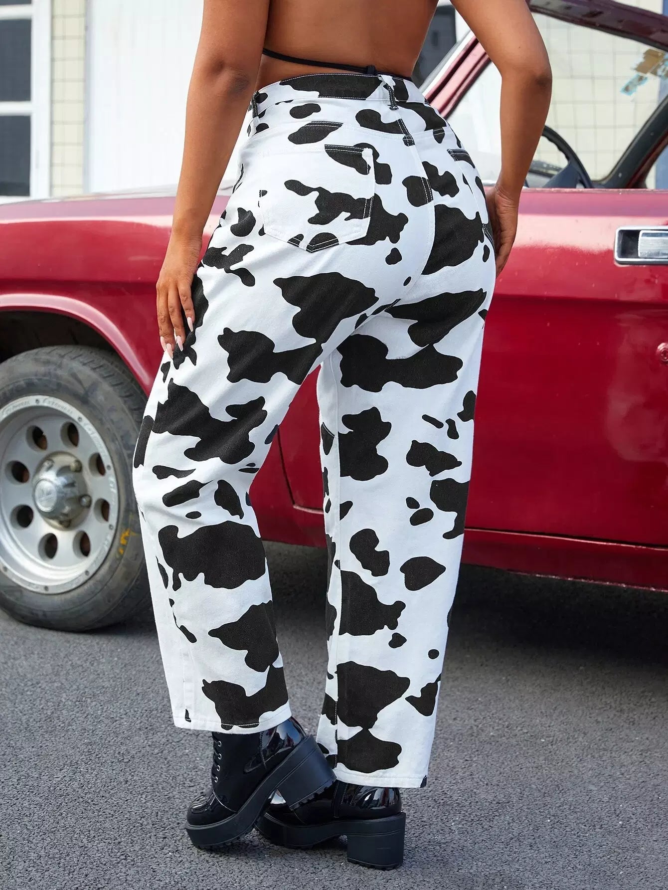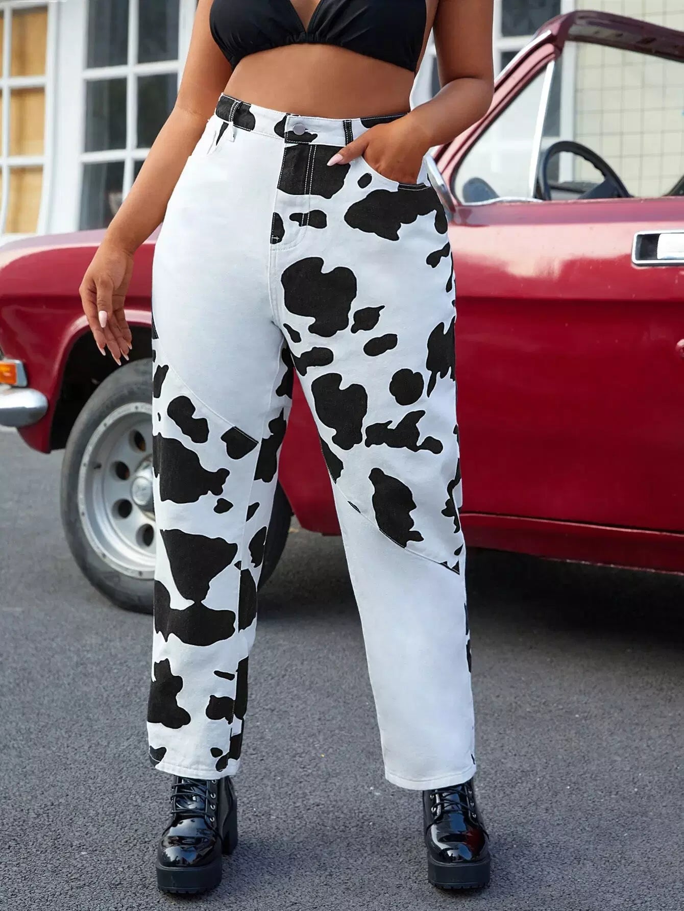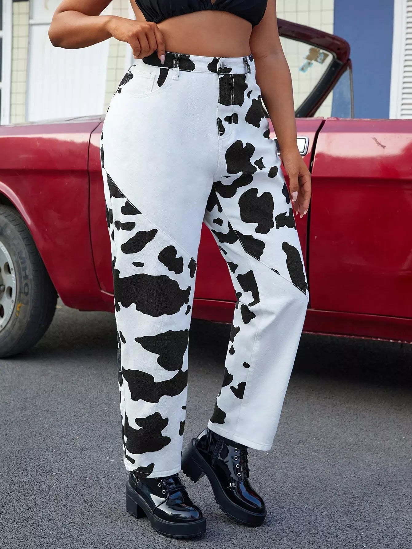 Plus High Waist Cow Print Mom Jeans