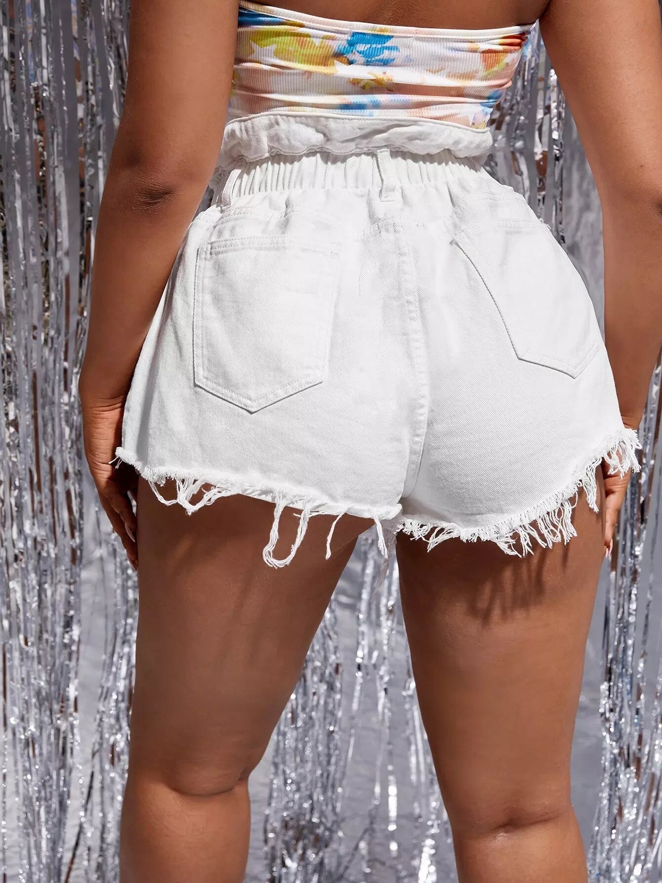 Plus Paperbag Waist Raw Hem Denim Shorts