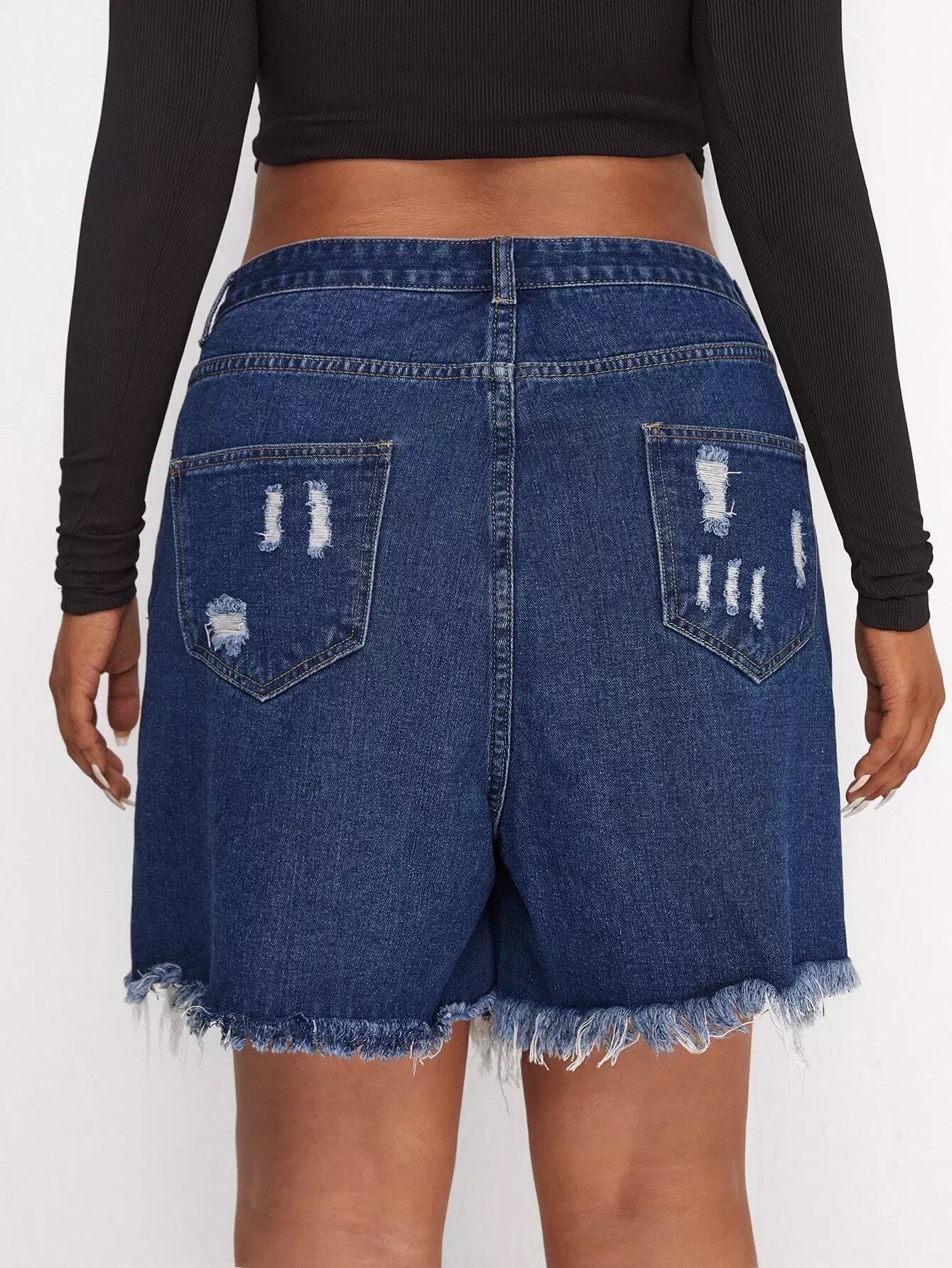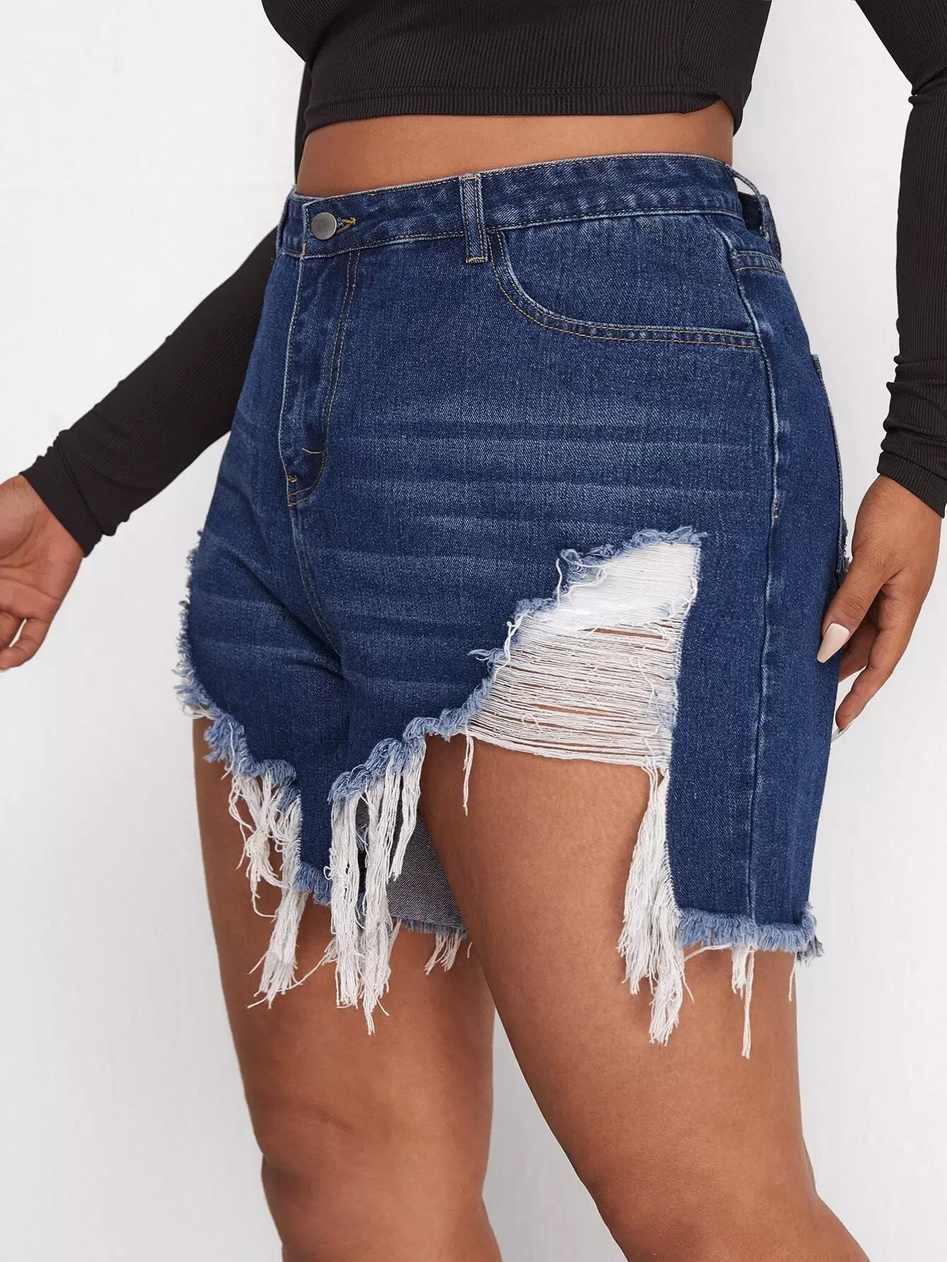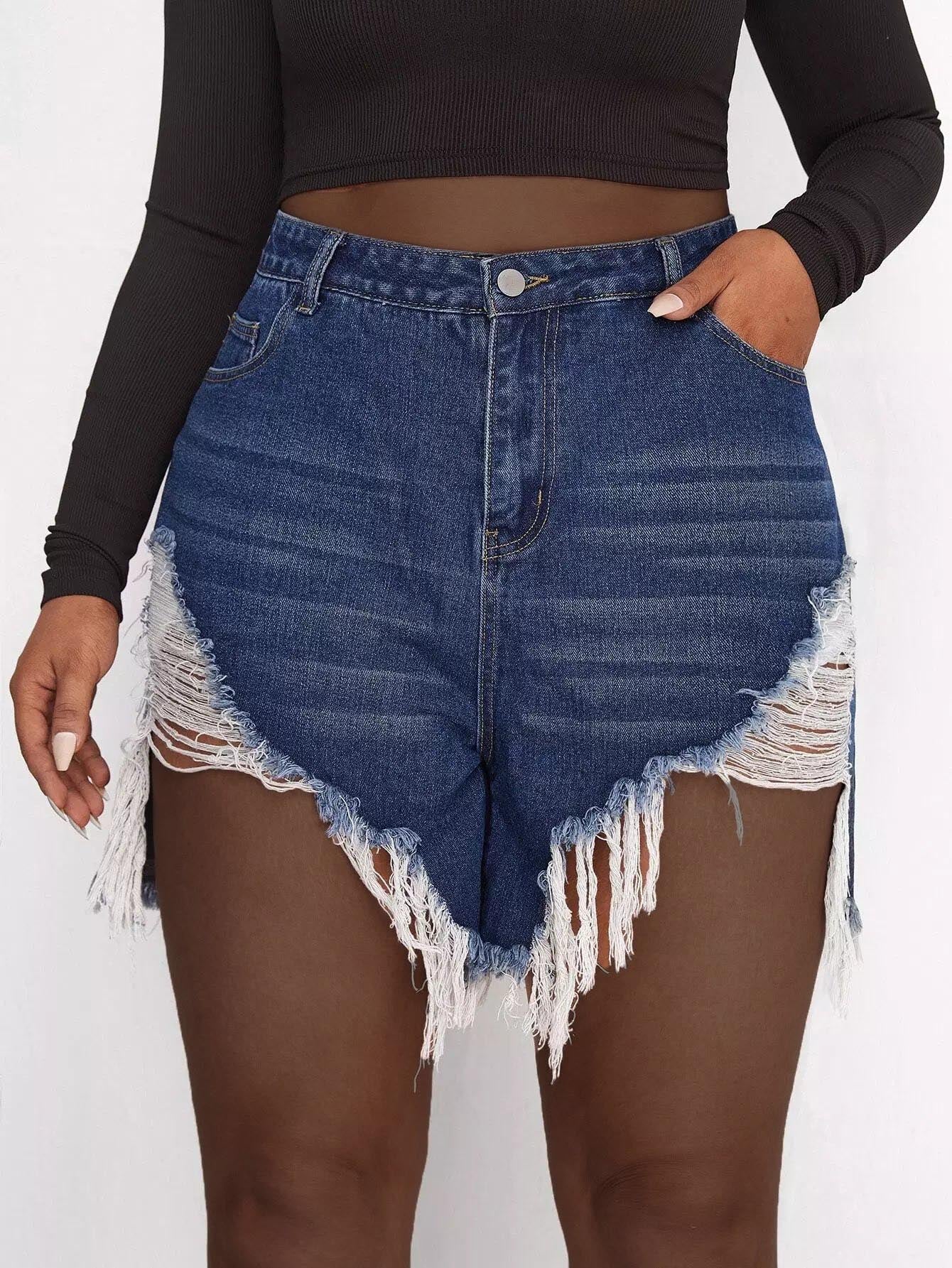 Plus Raw Hem Ripped Denim Shorts