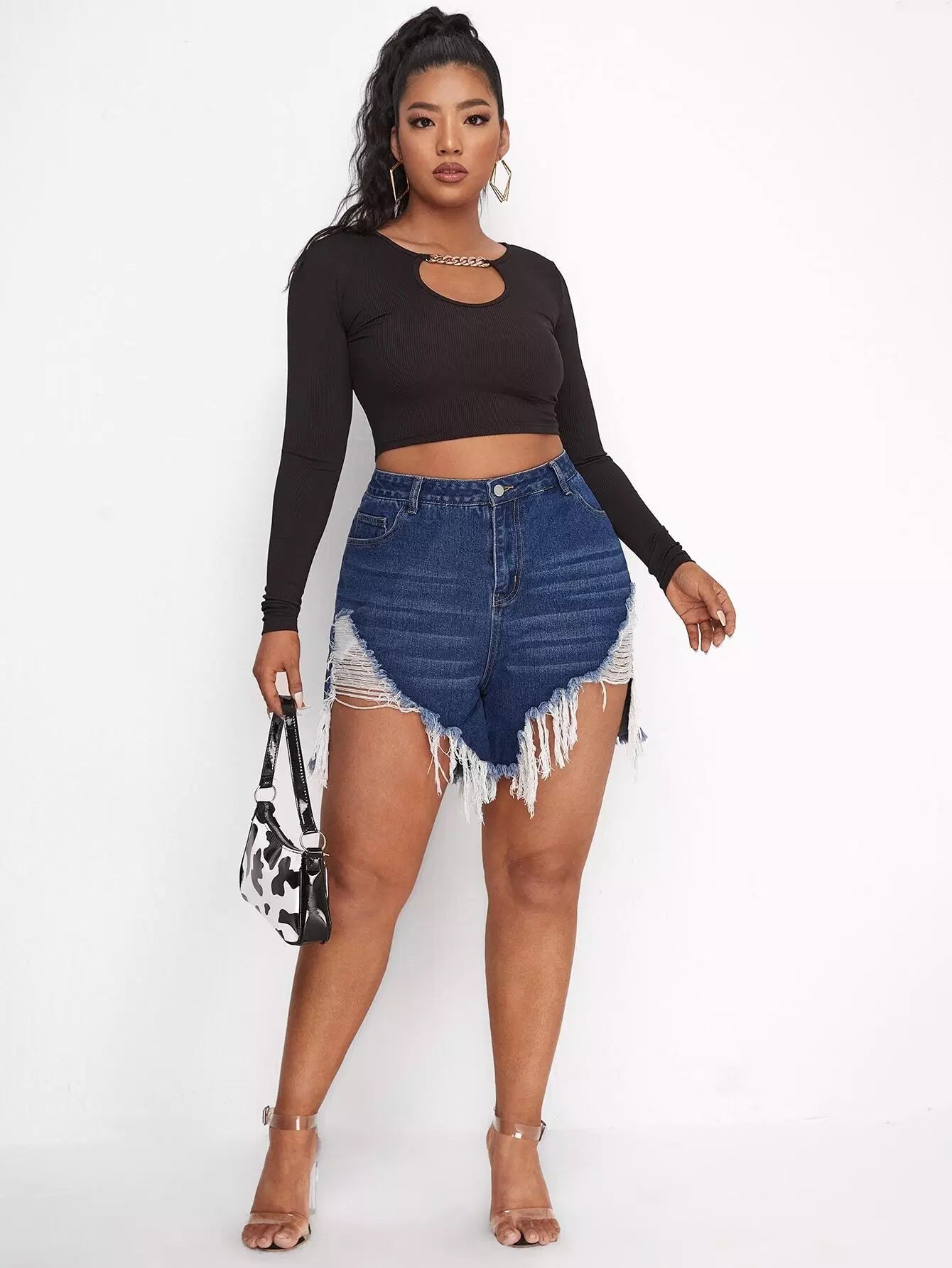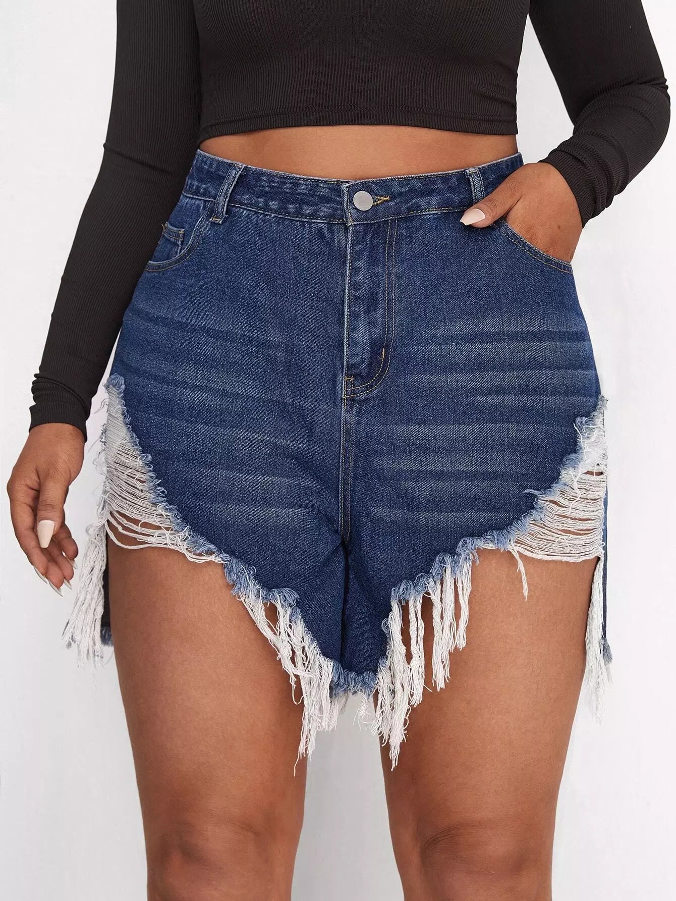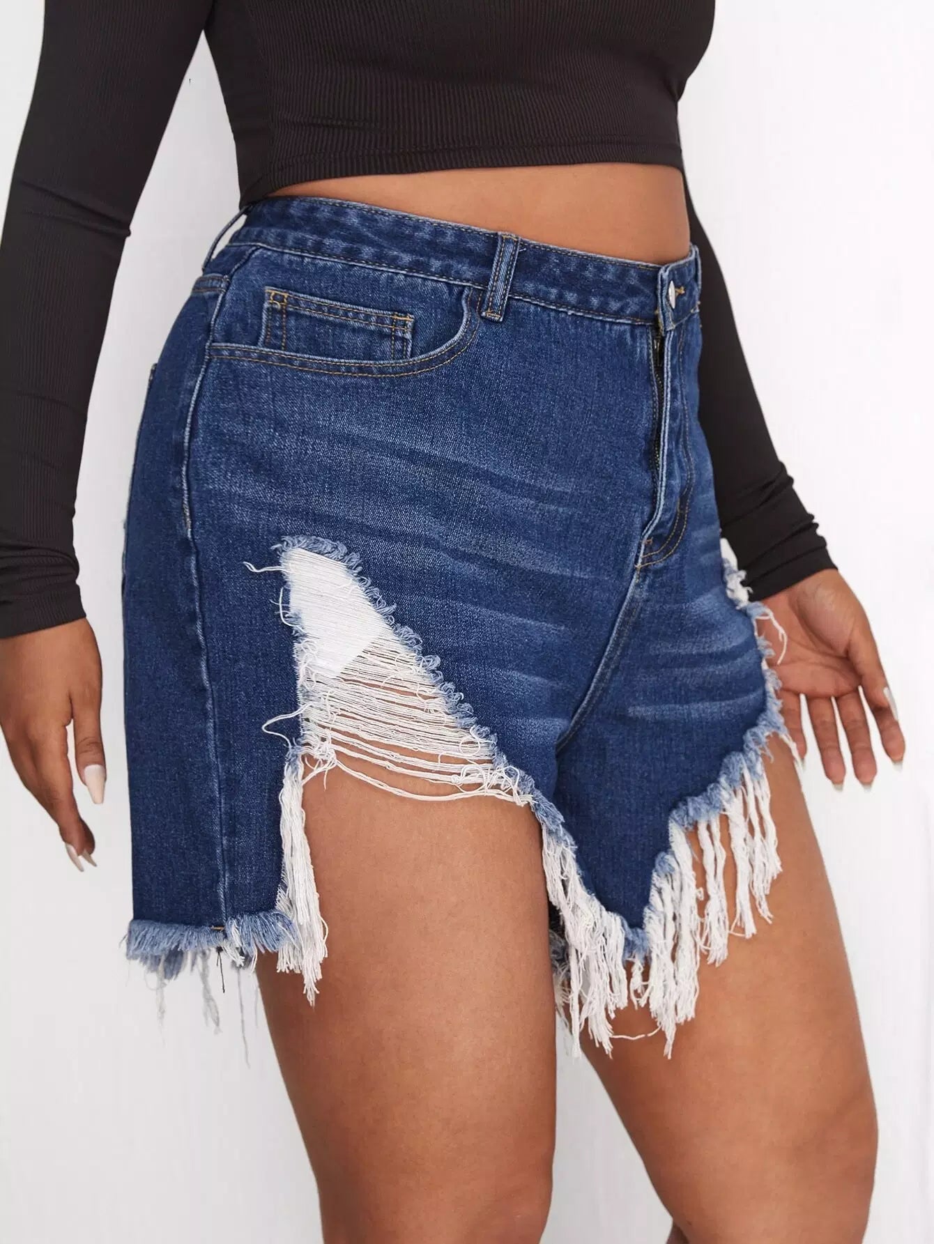Plus Raw Hem Ripped Denim Shorts