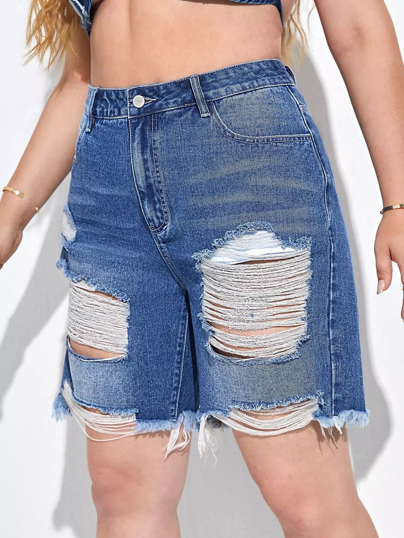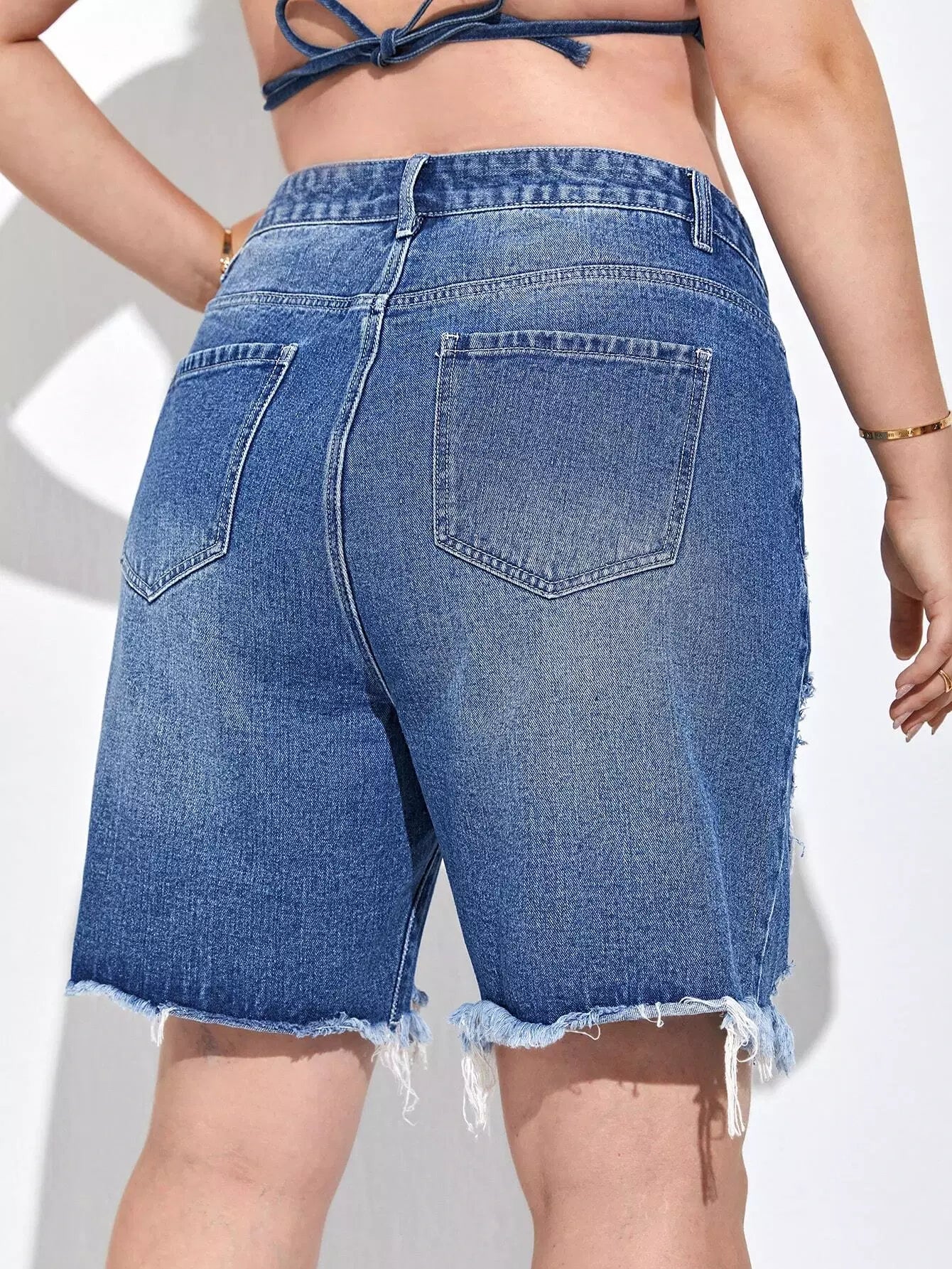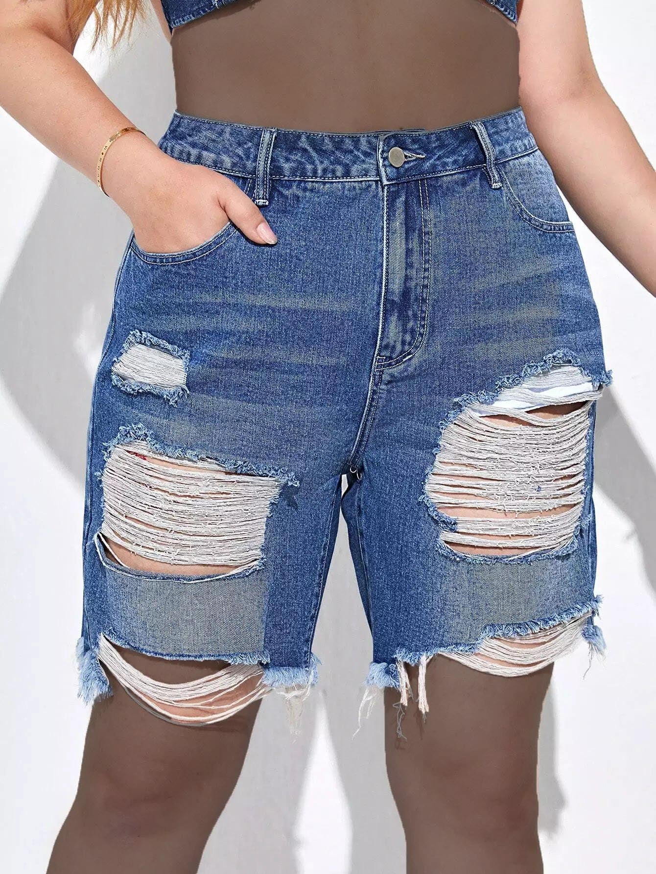 Plus Raw Hem Ripped Denim Shorts
