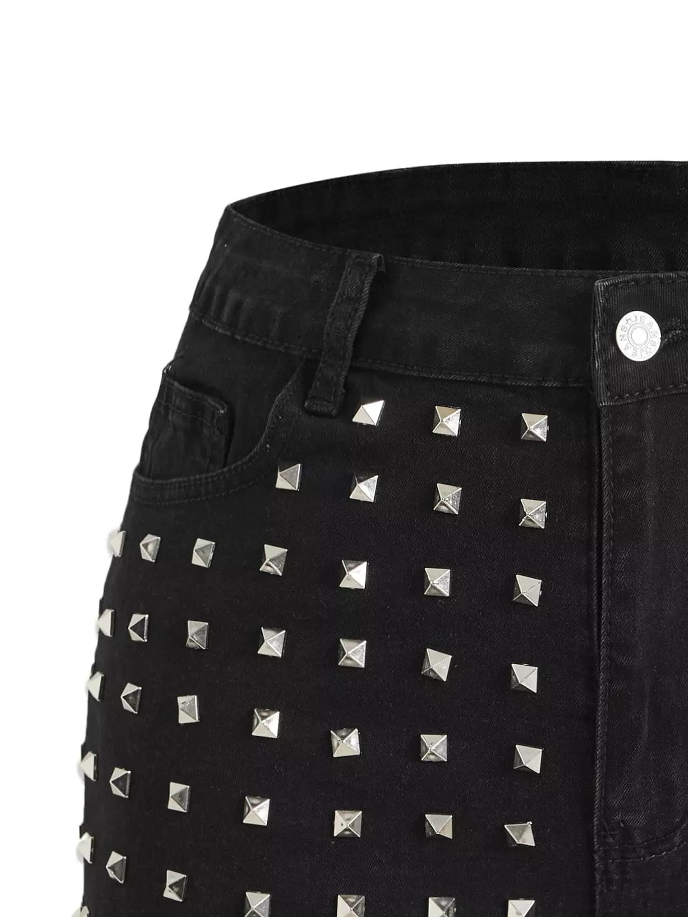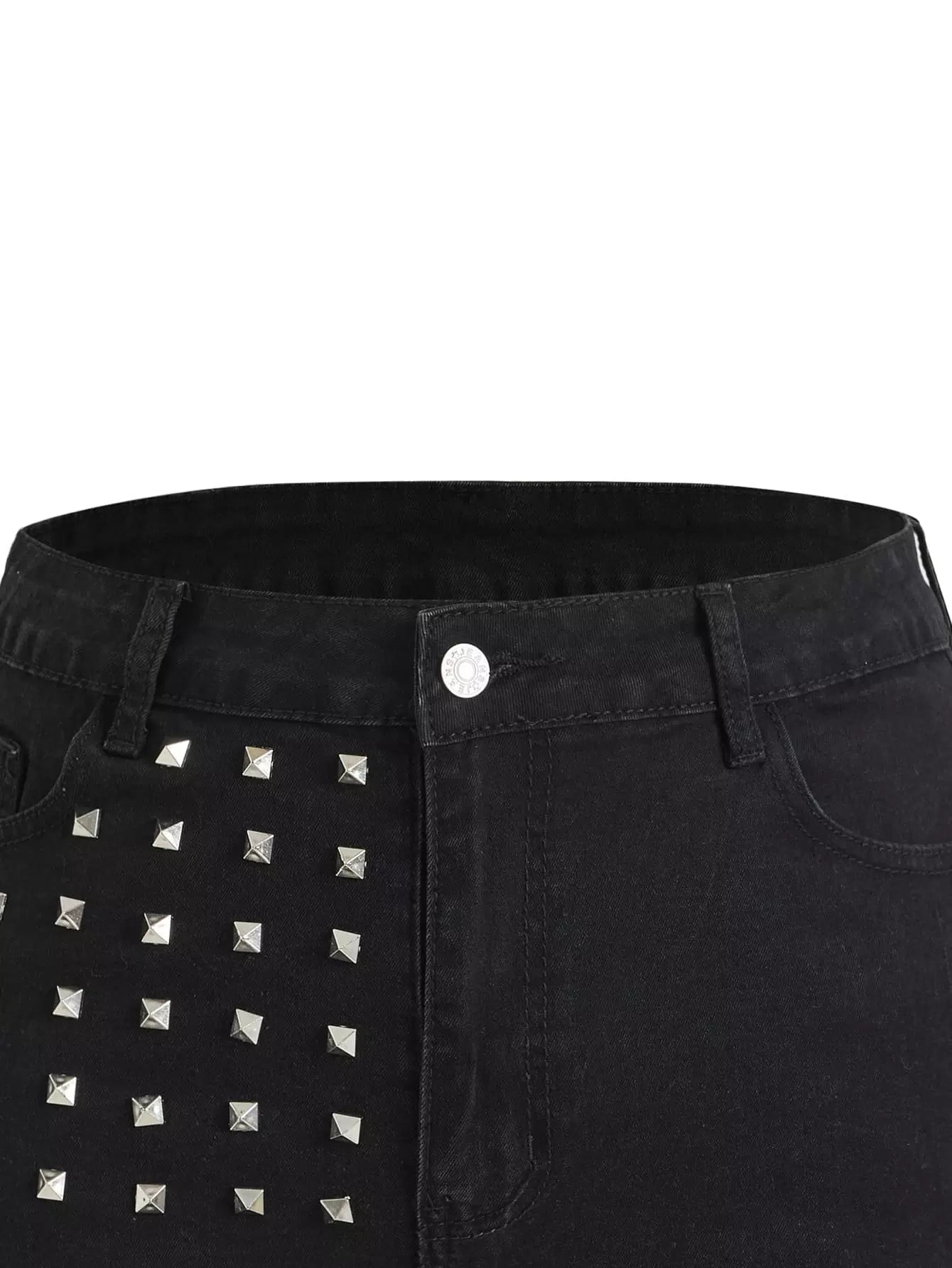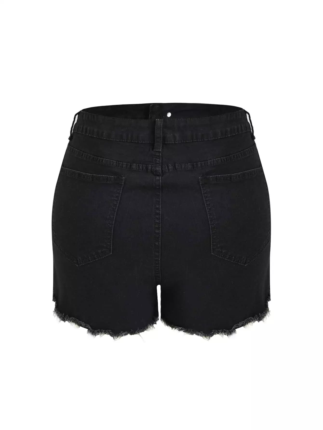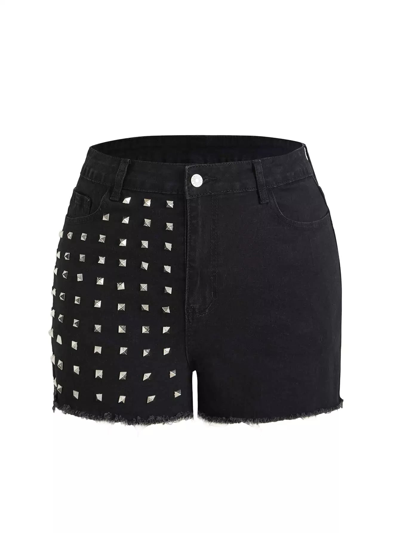 Plus Raw Hem Rivet Beaded Denim Shorts