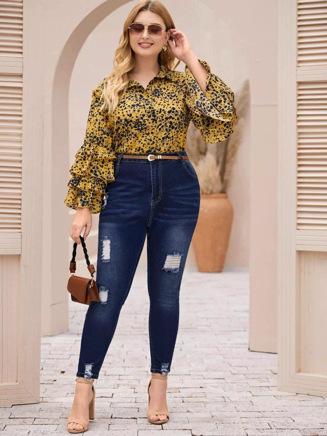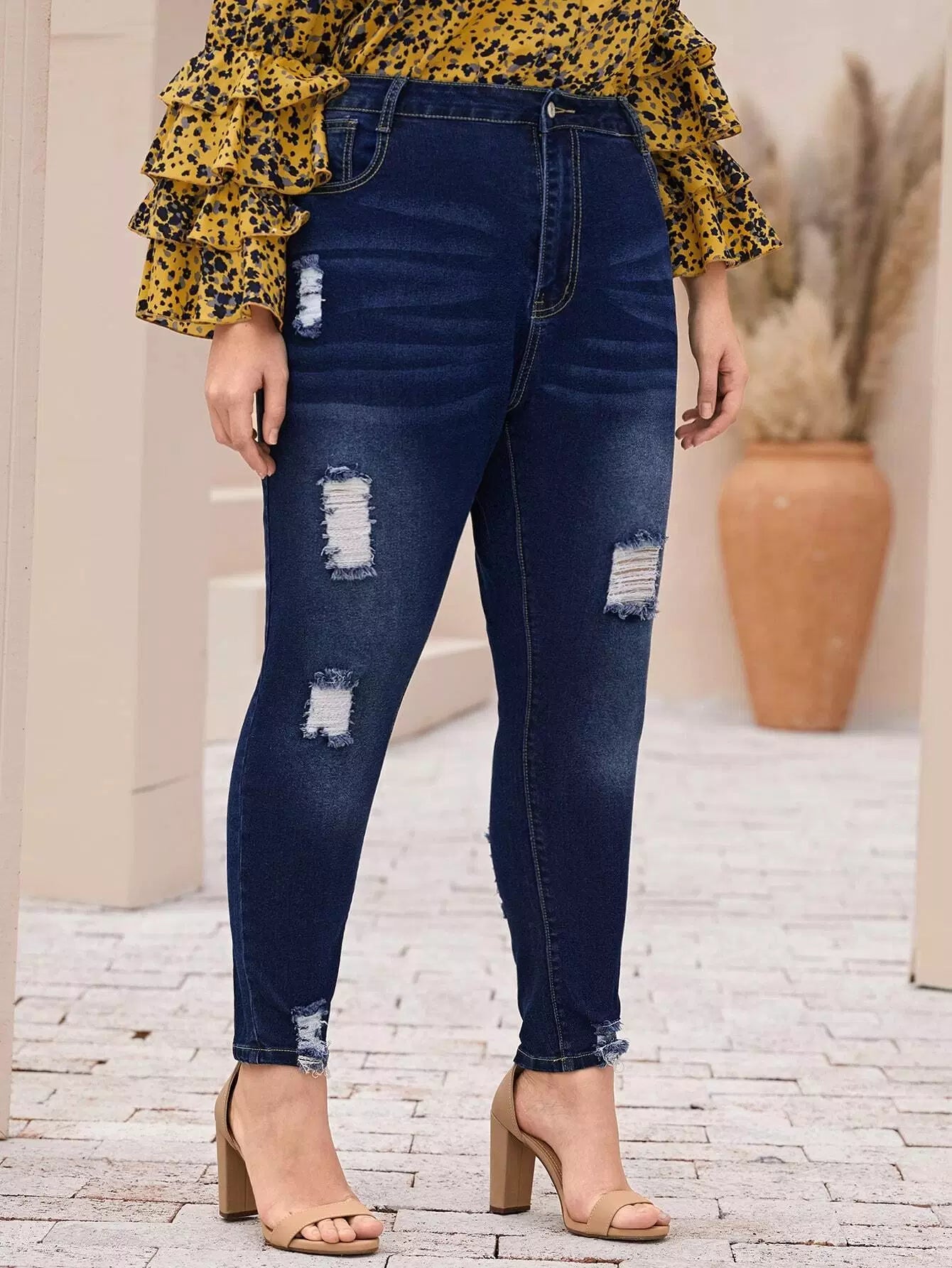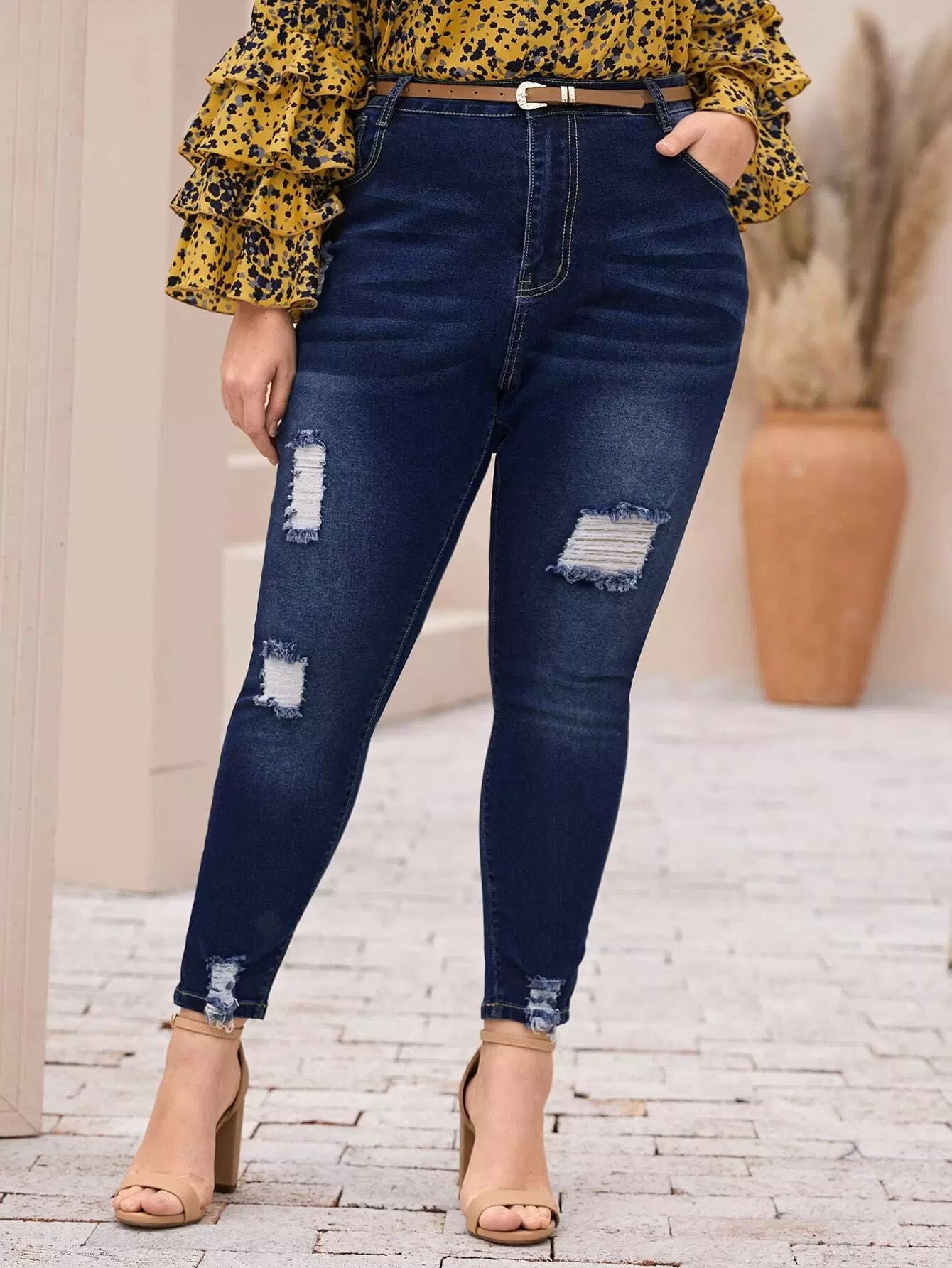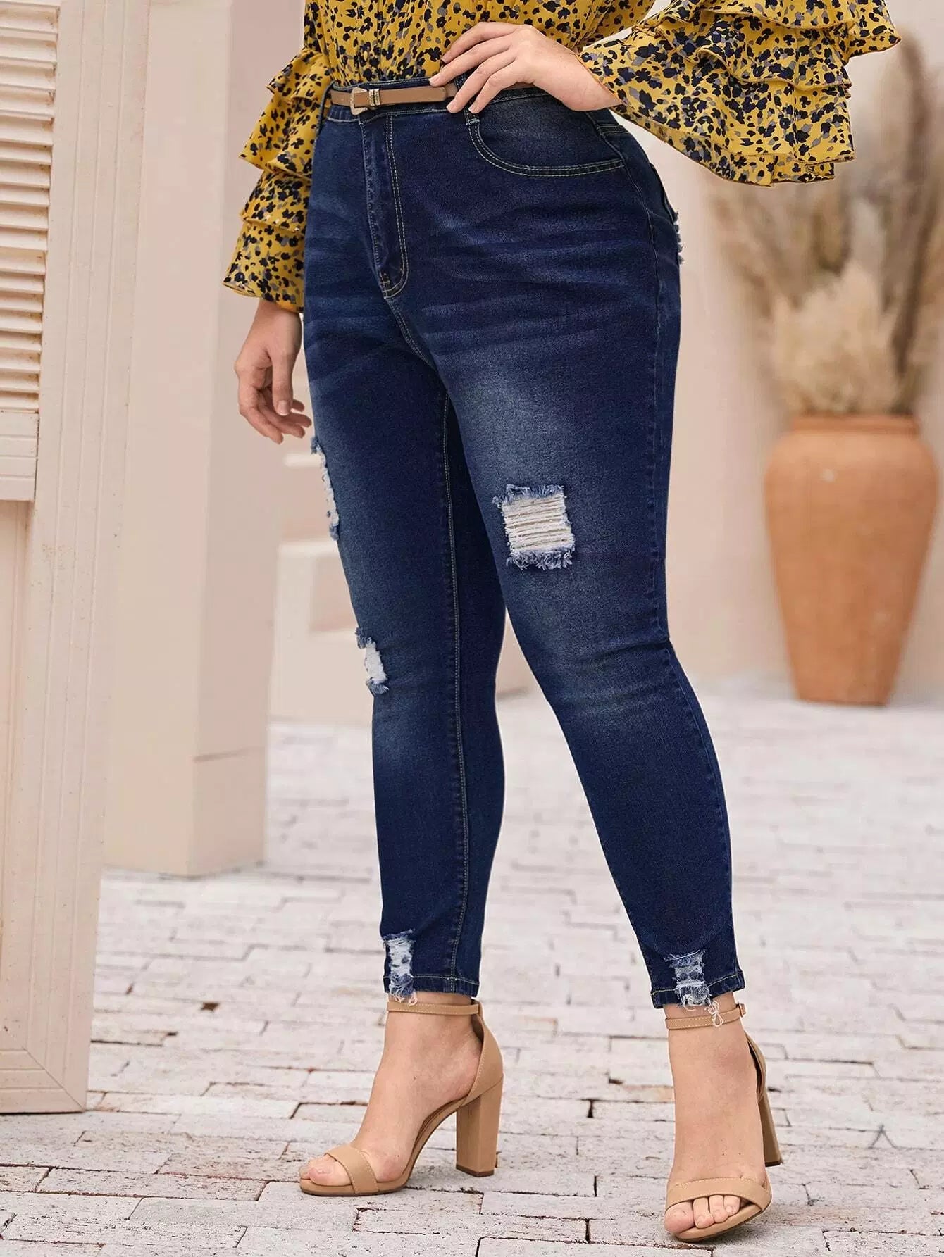 Plus Ripped Button Fly Skinny Jeans Without Belt