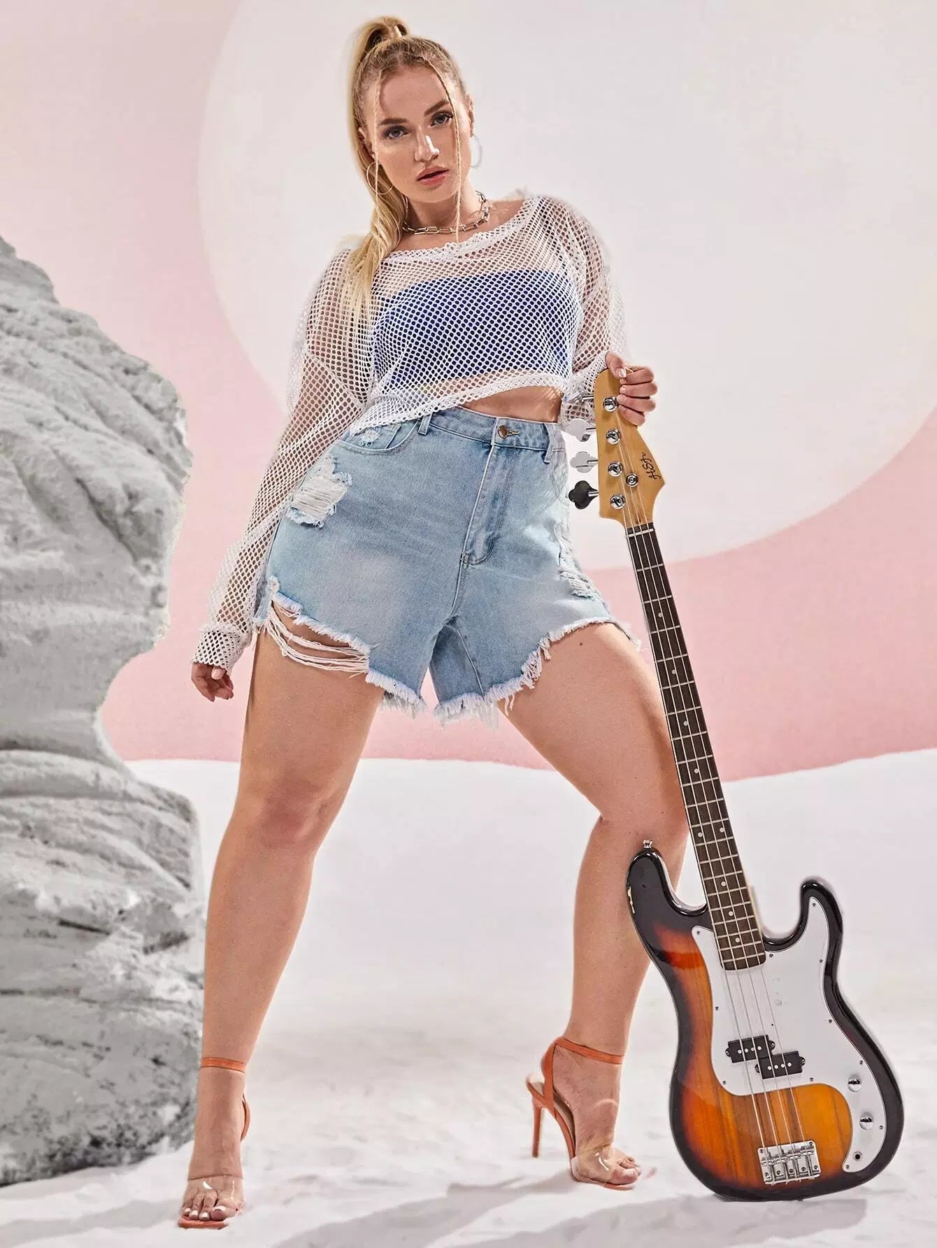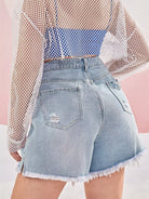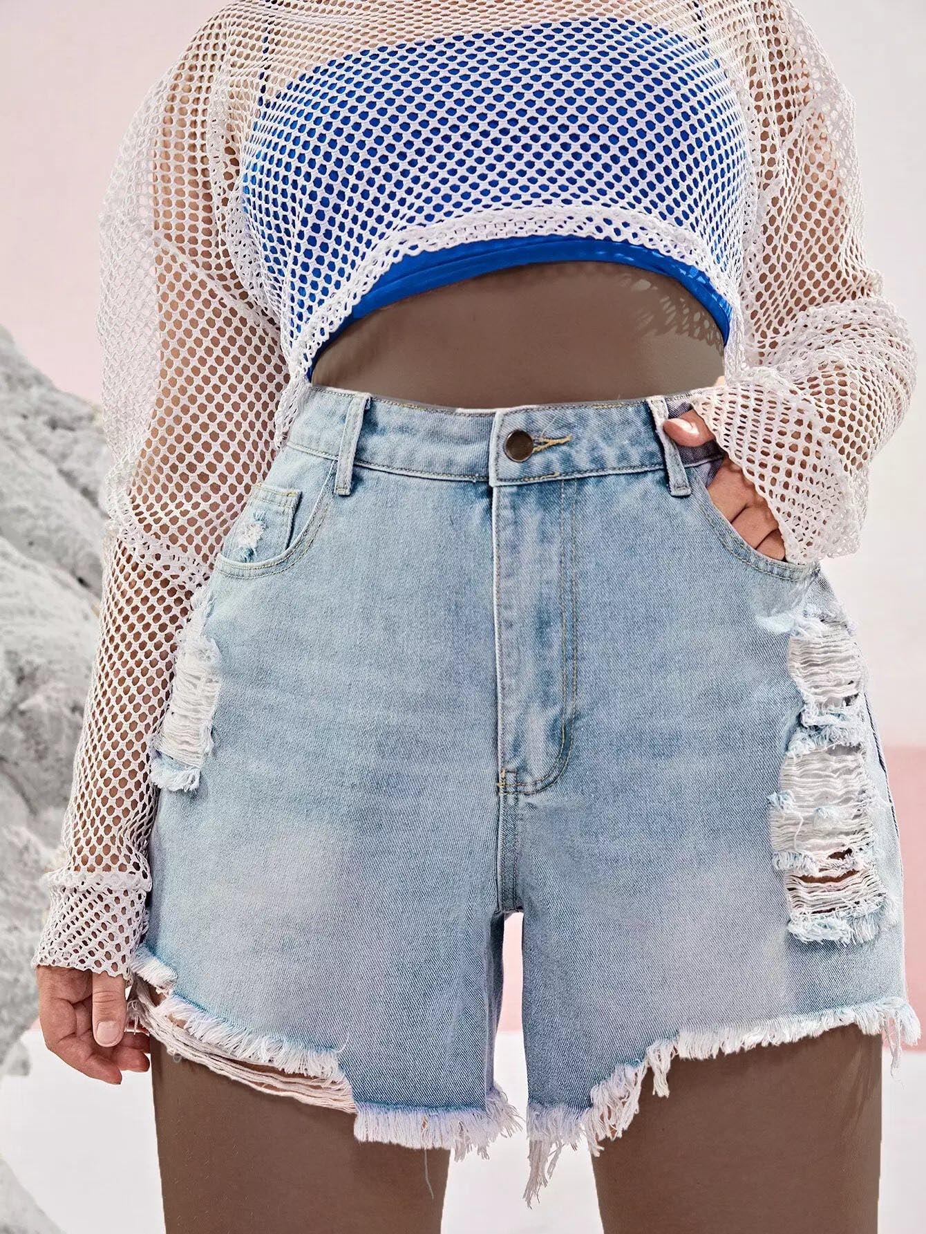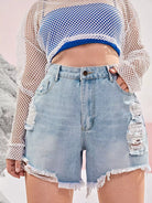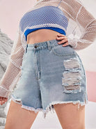 Plus Ripped Fringe Raw Hem Denim Shorts
