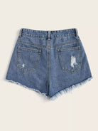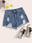 Plus Ripped Raw Hem Denim Shorts