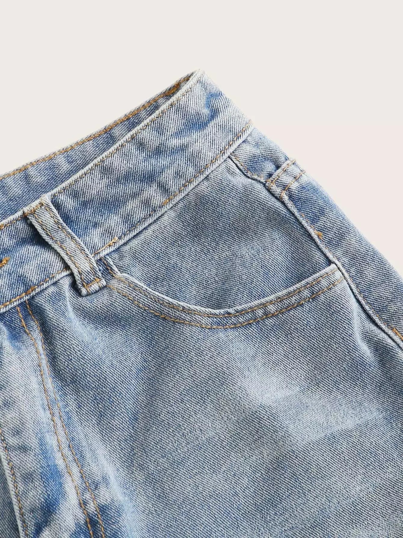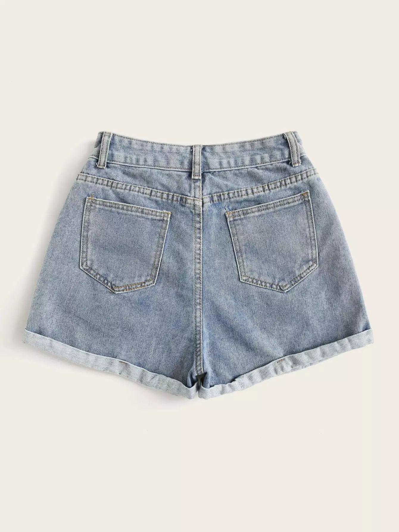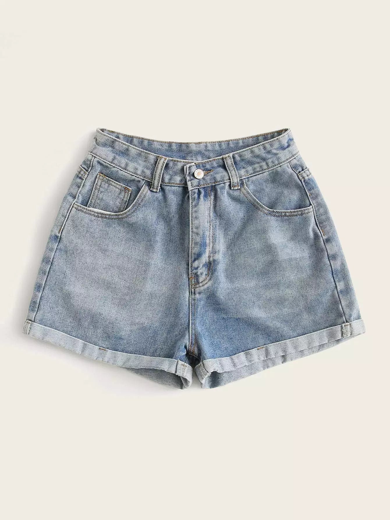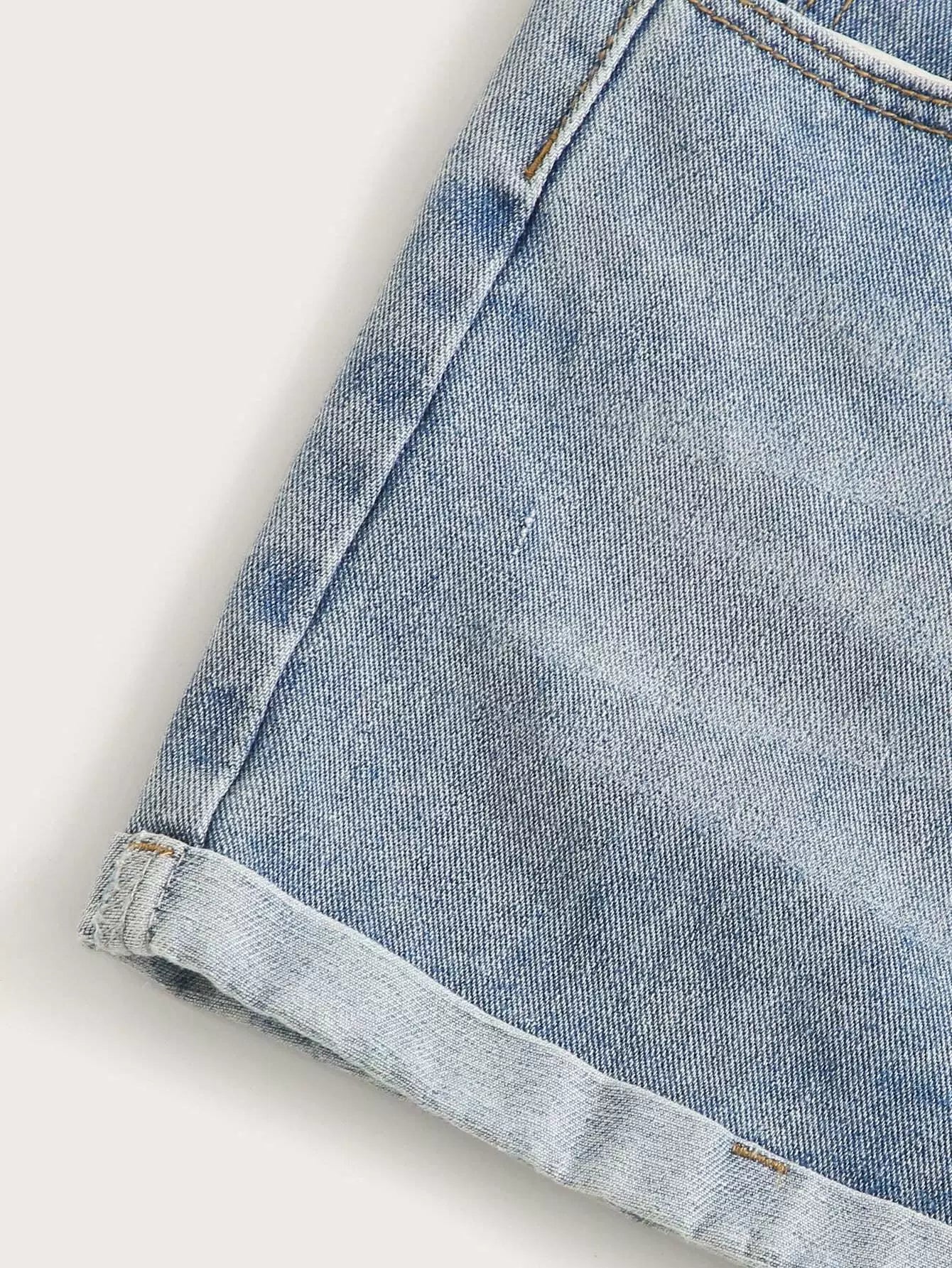 Plus Rolled Hem Bleach Wash Denim Shorts