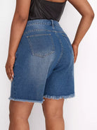 Women - Plus Slant Pocket Raw Hem Denim Shorts