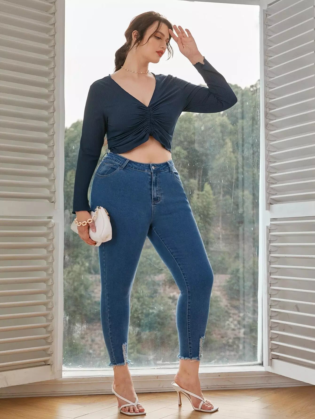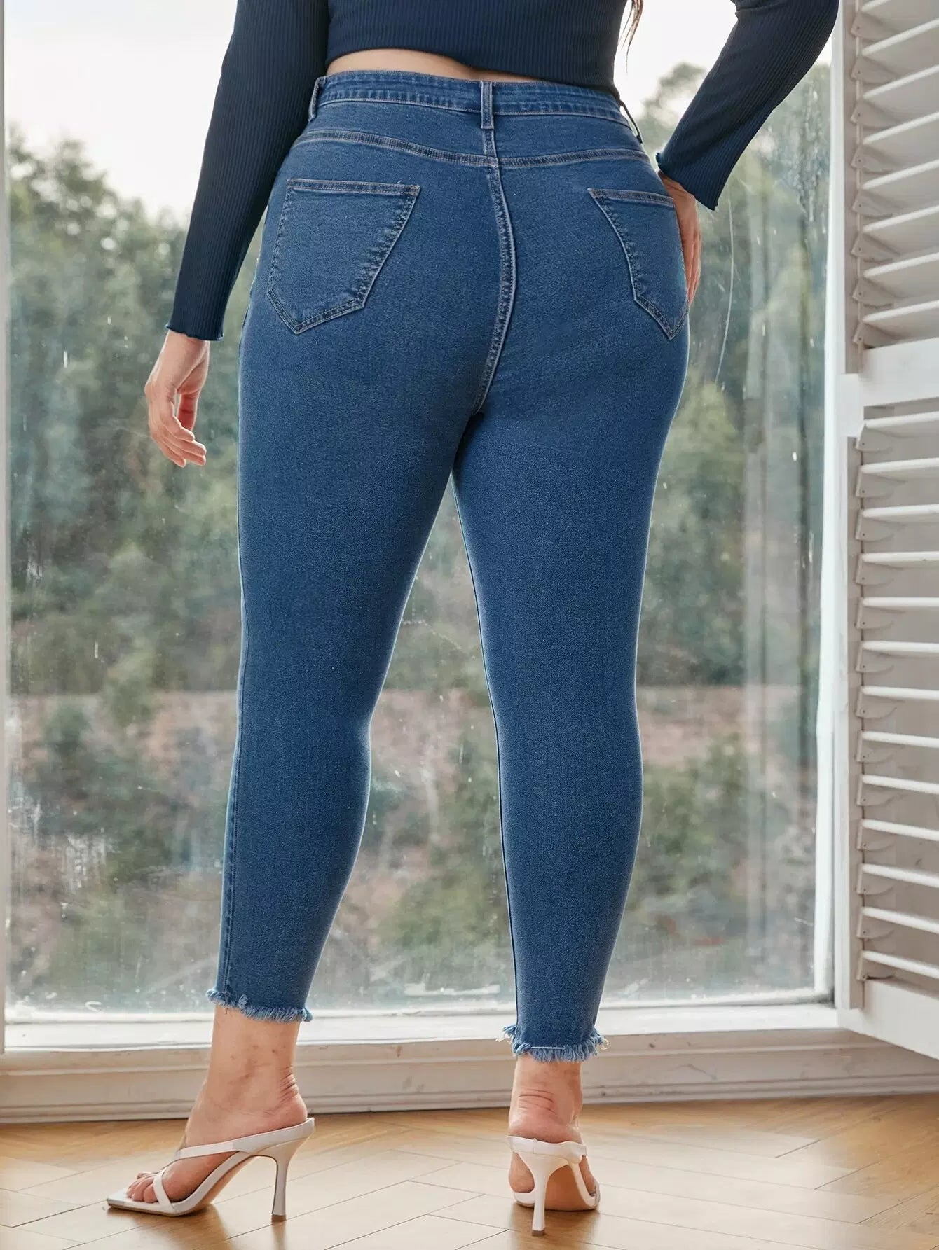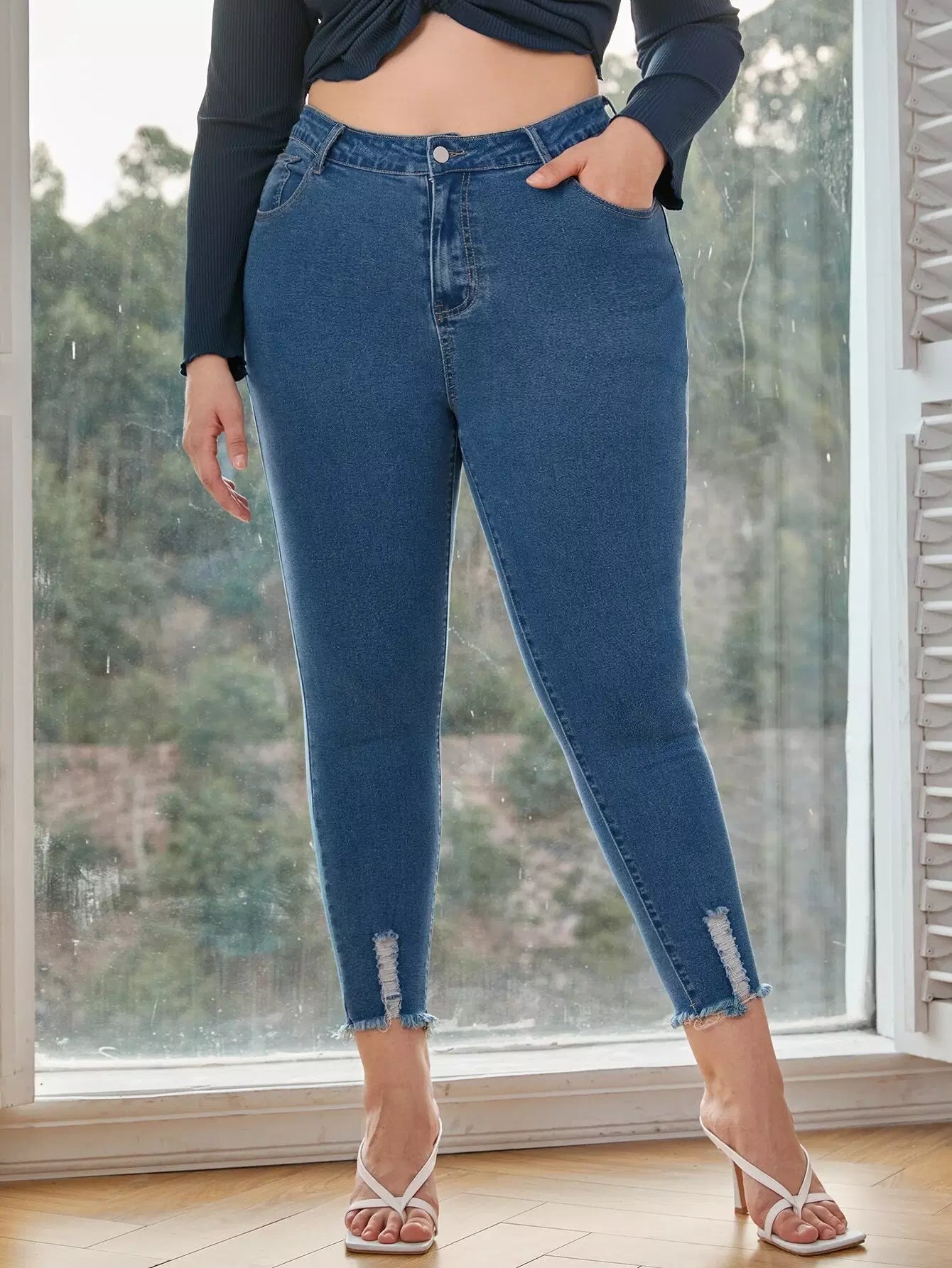 Plus Slant Pocket Ripped Raw Cut Skinny Jeans