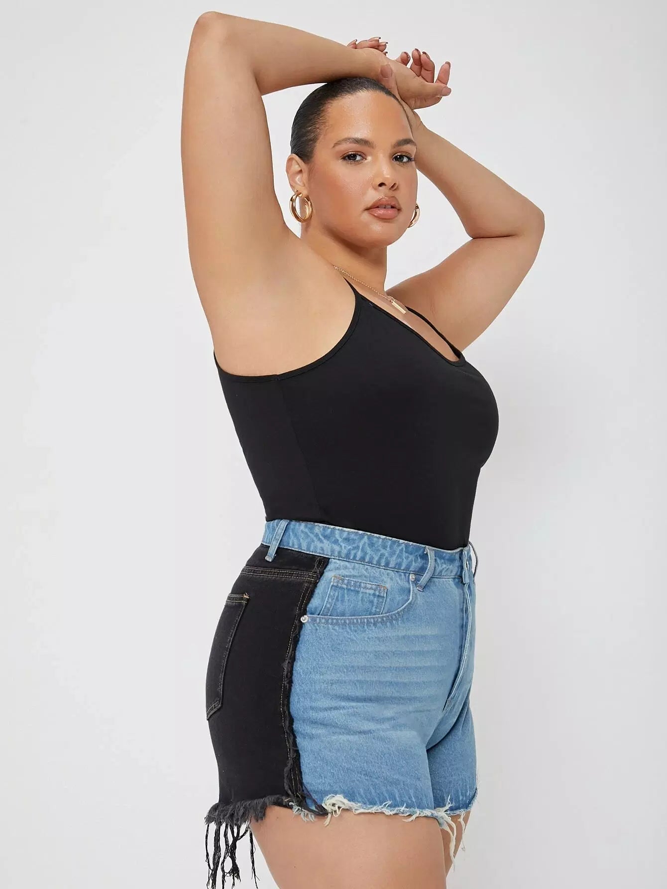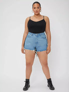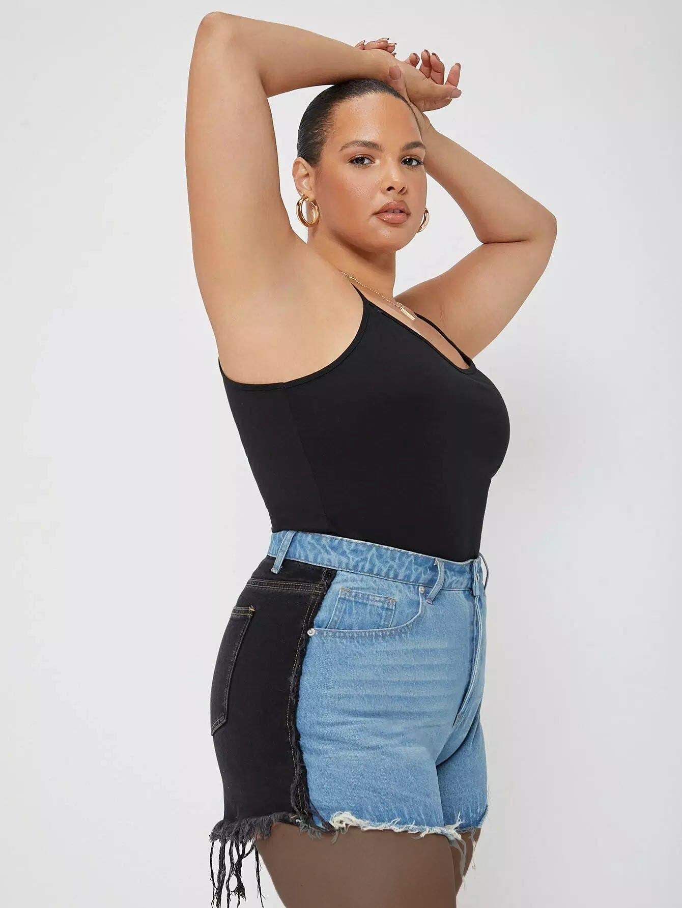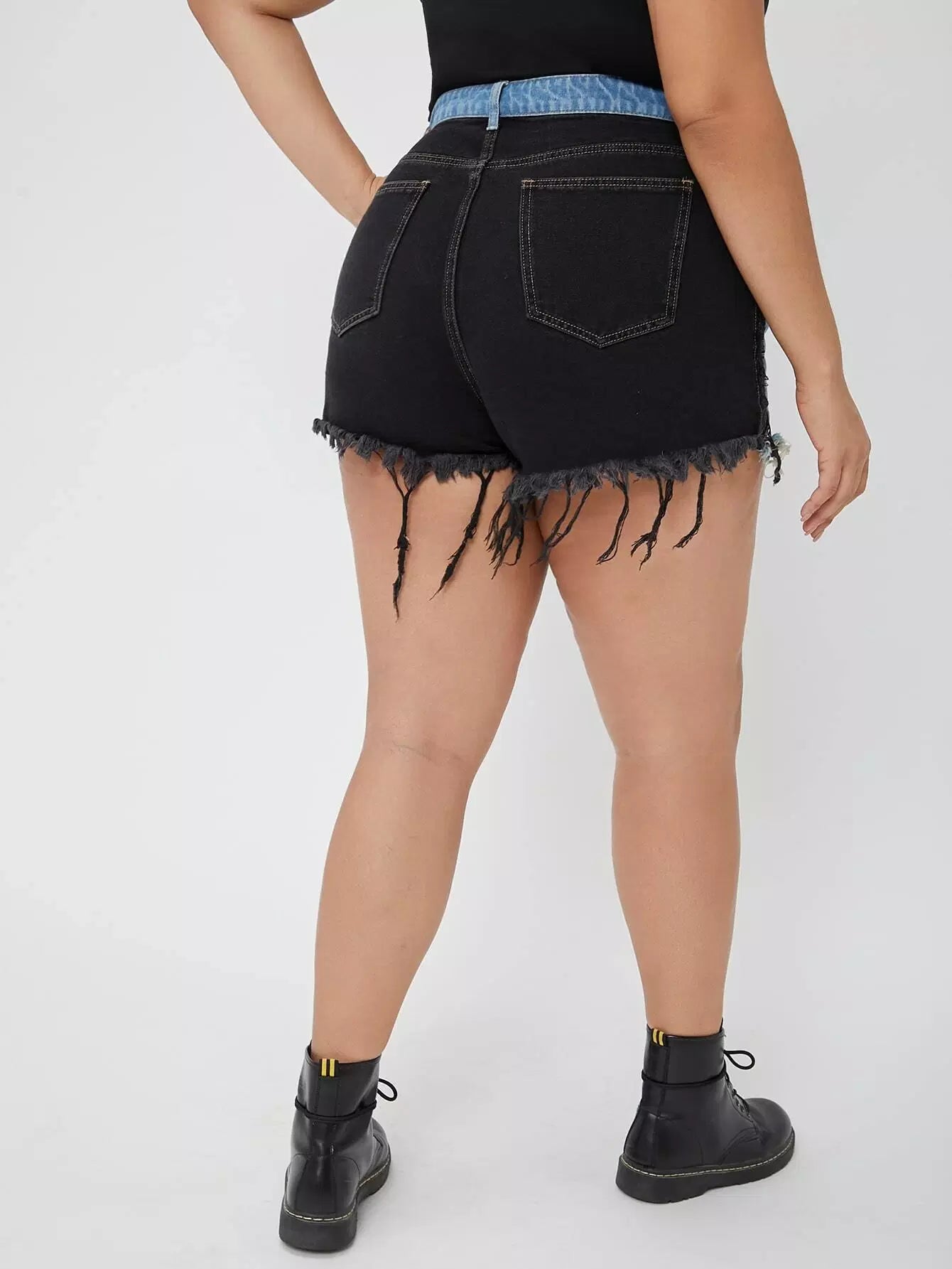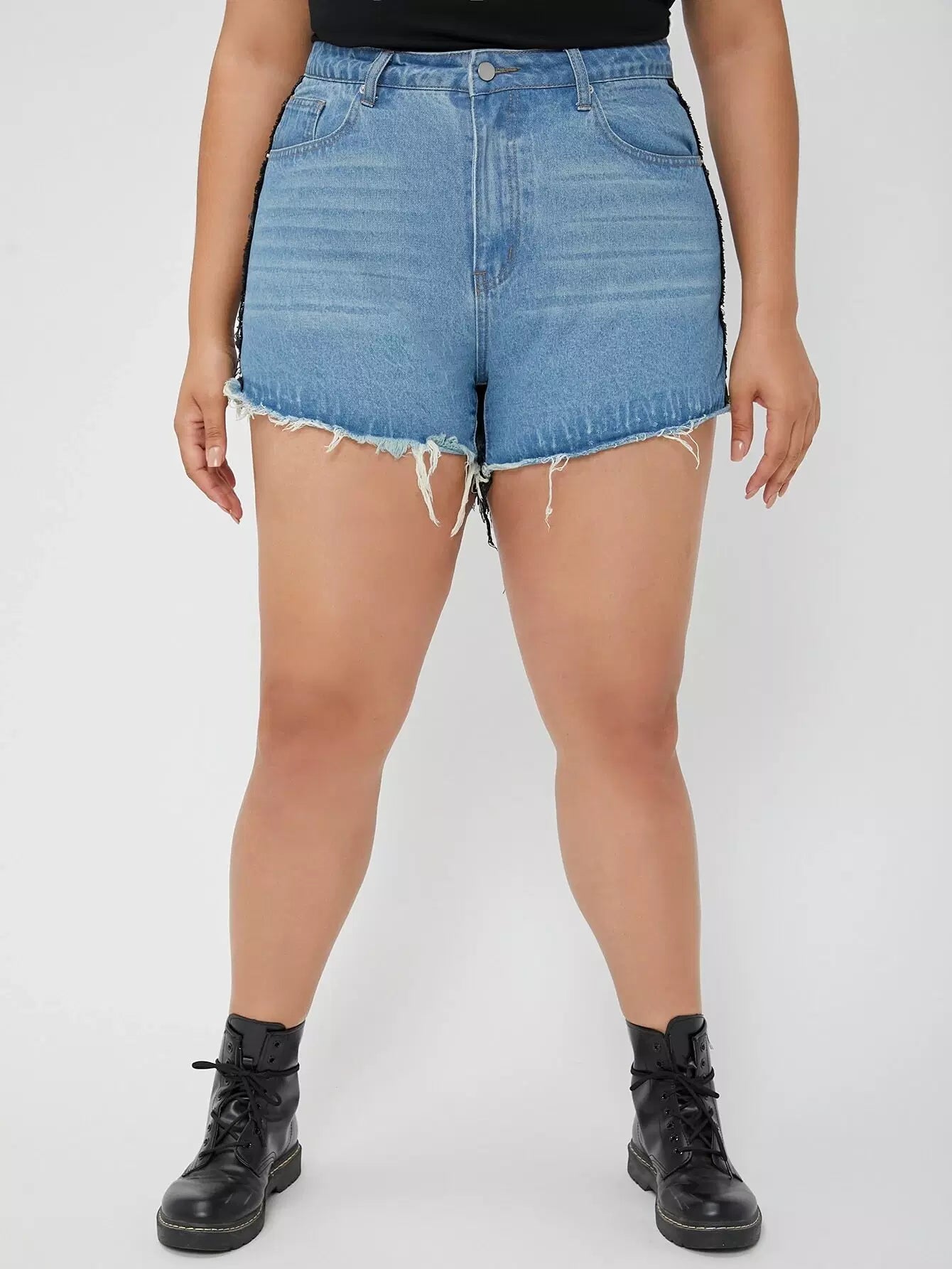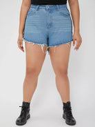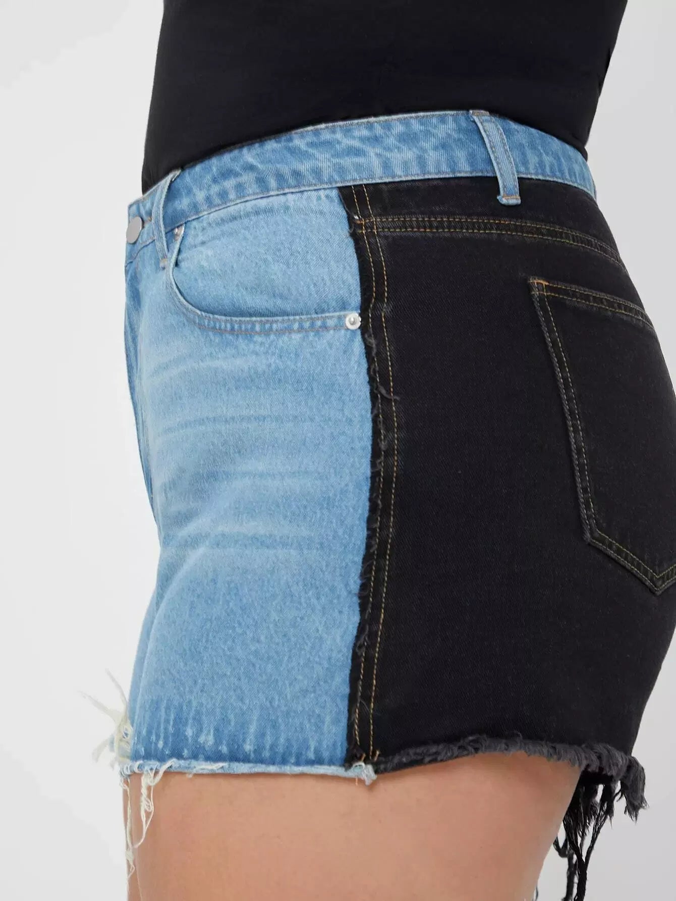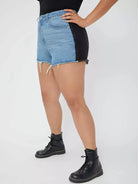 Plus Two Tone Raw Hem Denim Shorts